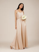 Branwyn | Pale Blush - A Line V Neck Chiffon Long Bridesmaid Dress with Ruffles
