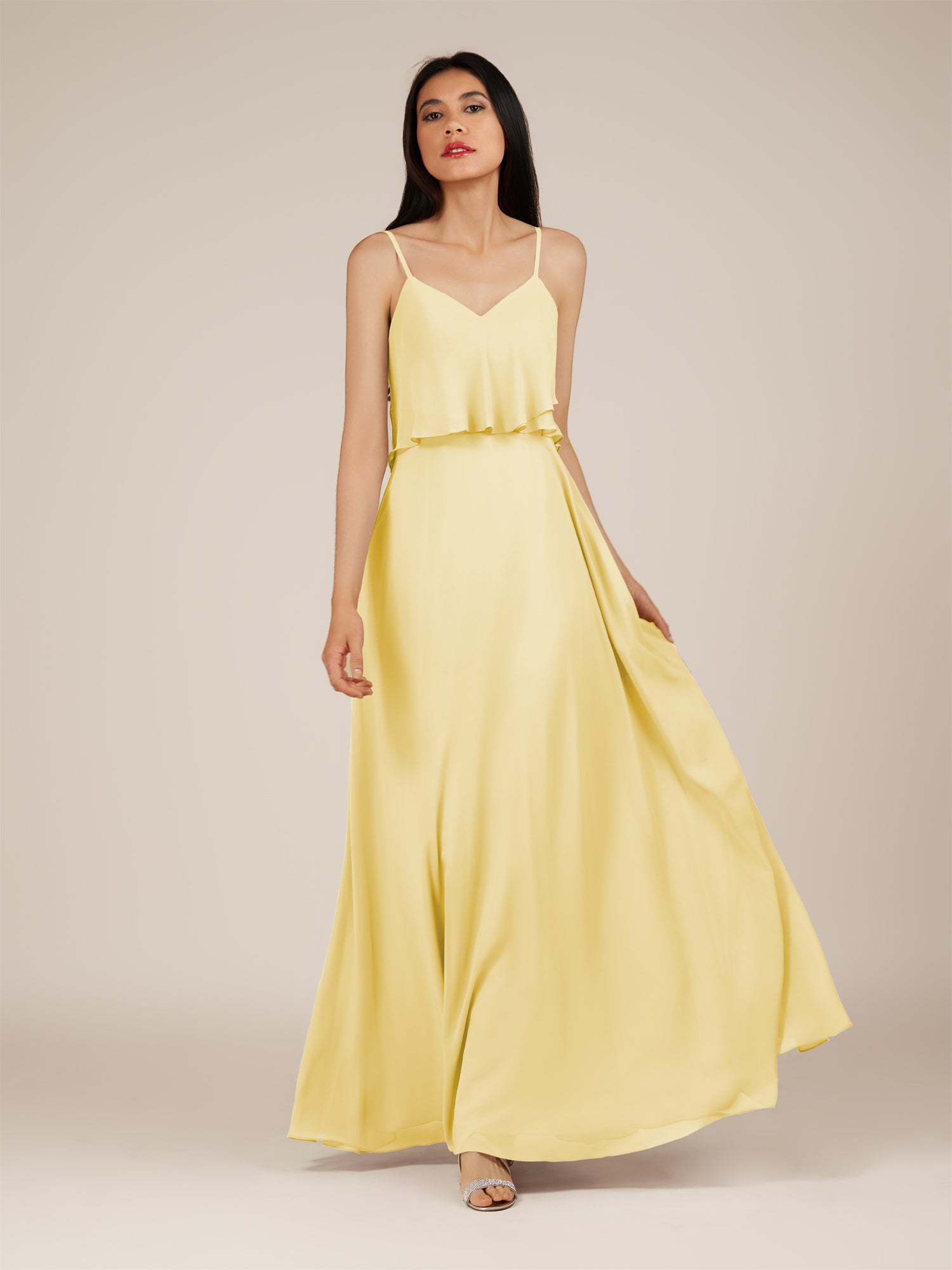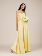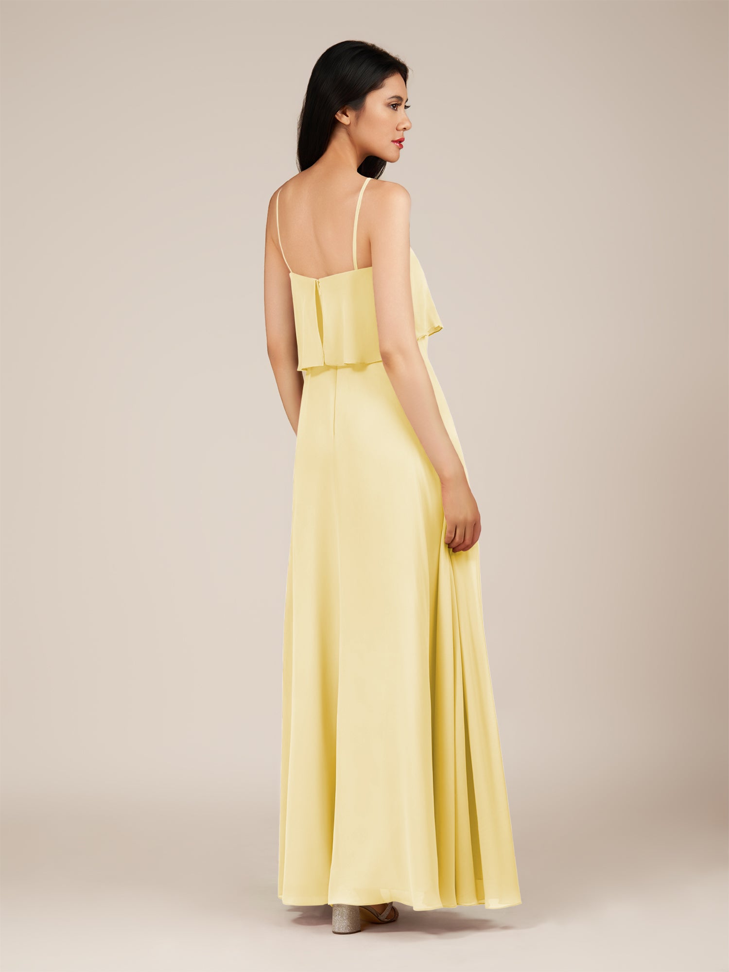 Branwyn | Pastel Yellow - A Line V Neck Chiffon Long Bridesmaid Dress with Ruffles