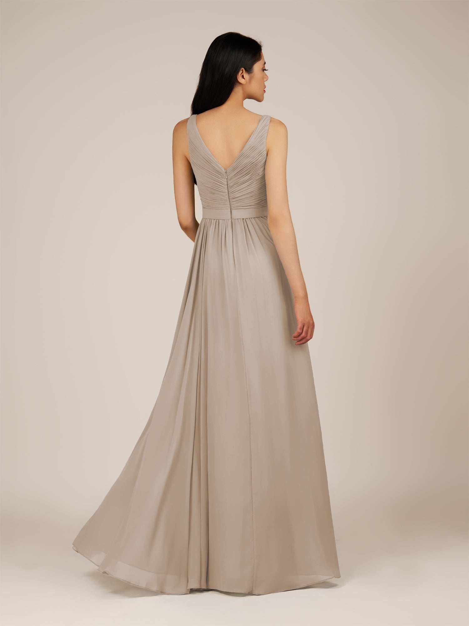Lysander brings a timeless touch of elegance to your bridal party. Crafted from soft chiffon, this A-line bridesmaid dress features a flattering V-neckline and a pleated bodice that enhances the natural waistline. The floor-length skirt flows effortlessly, creating graceful movement with every step. Finished with a classic zipper back, Lysander offers a refined and romantic look that¡¯s perfect for any season or wedding theme.