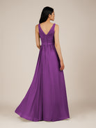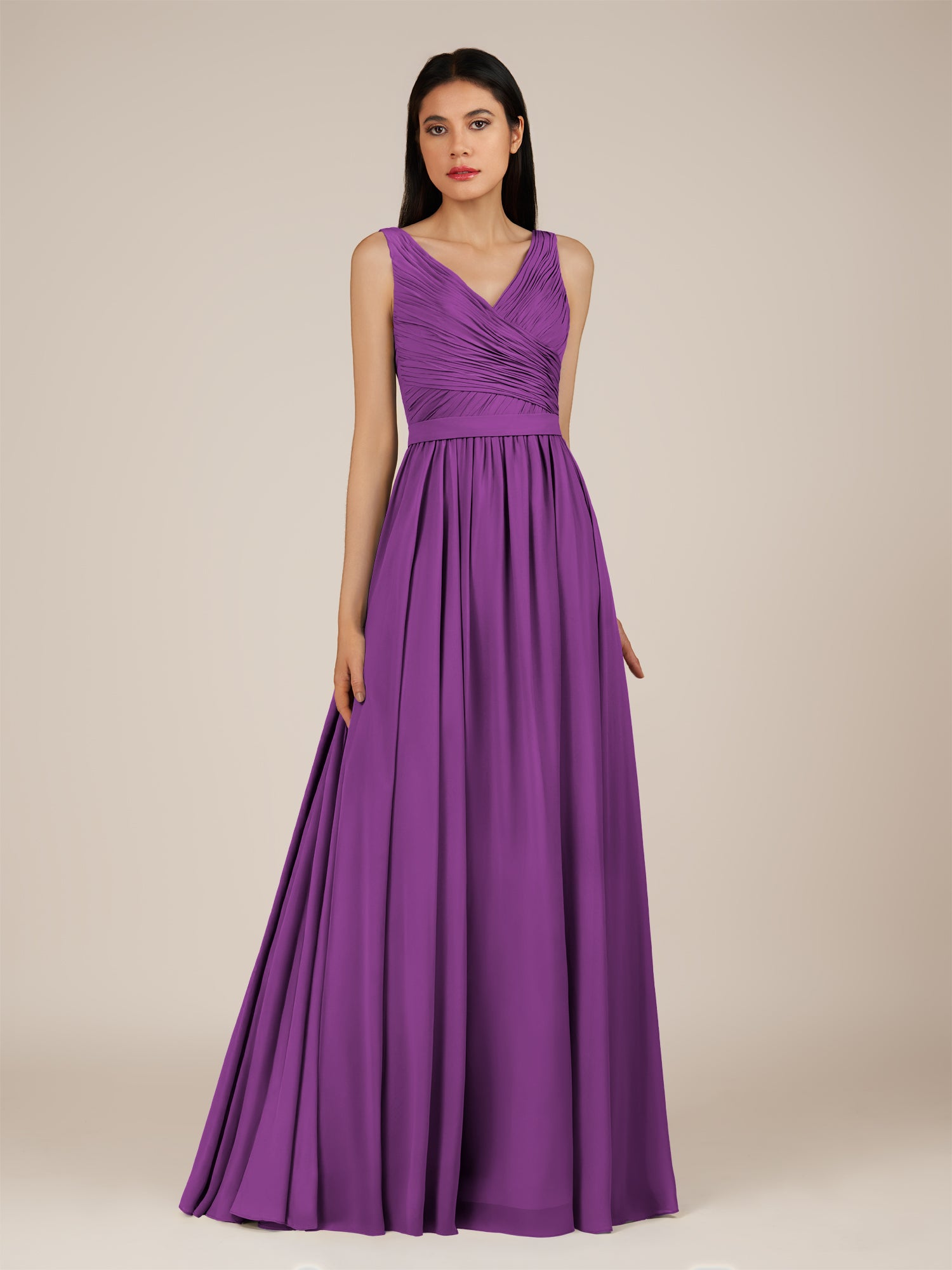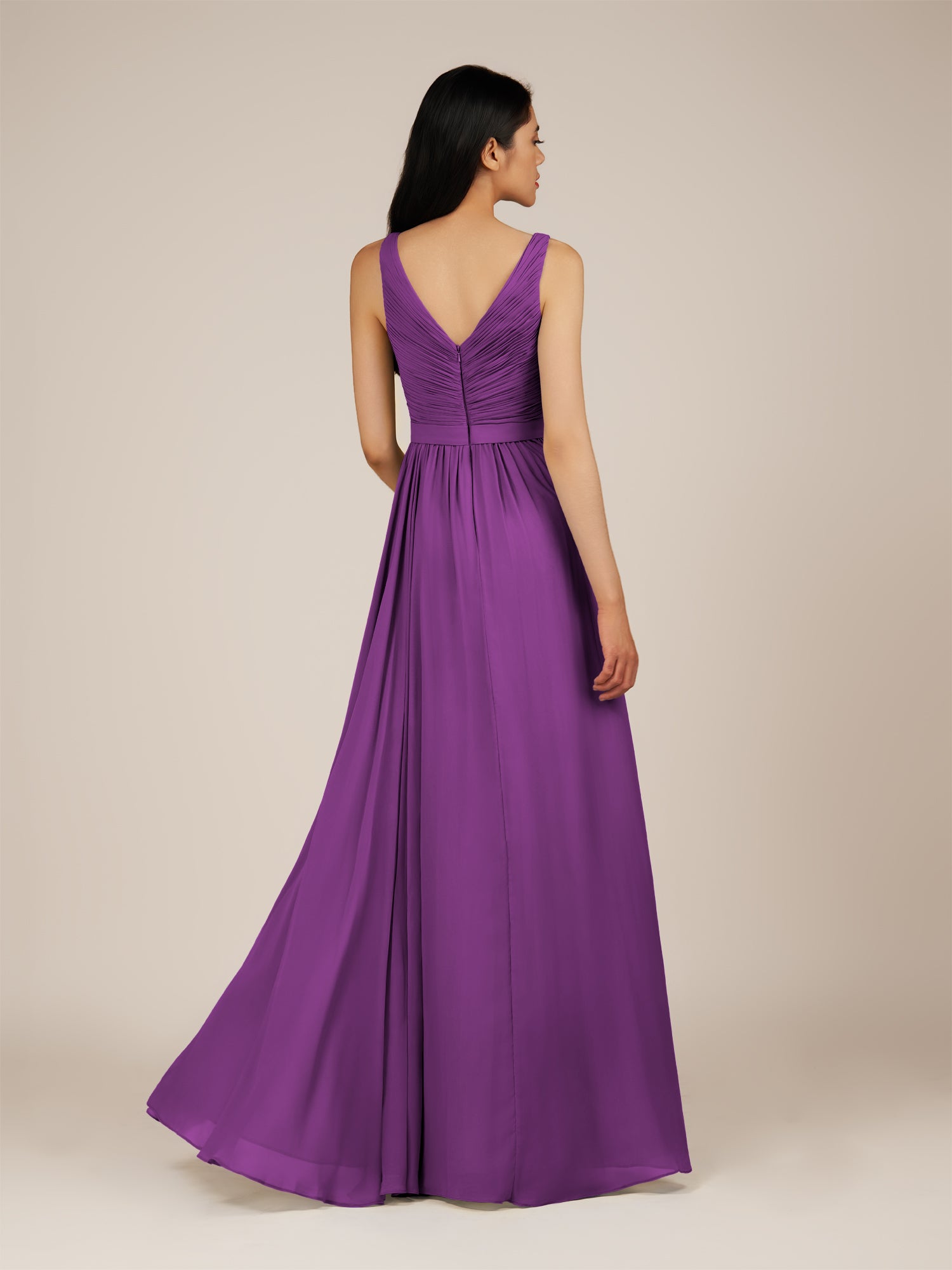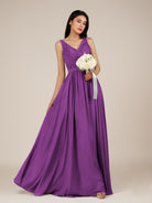 Lysander | Amethyst - A Line Chiffon V Neck Pleated Long Bridesmaid Dress