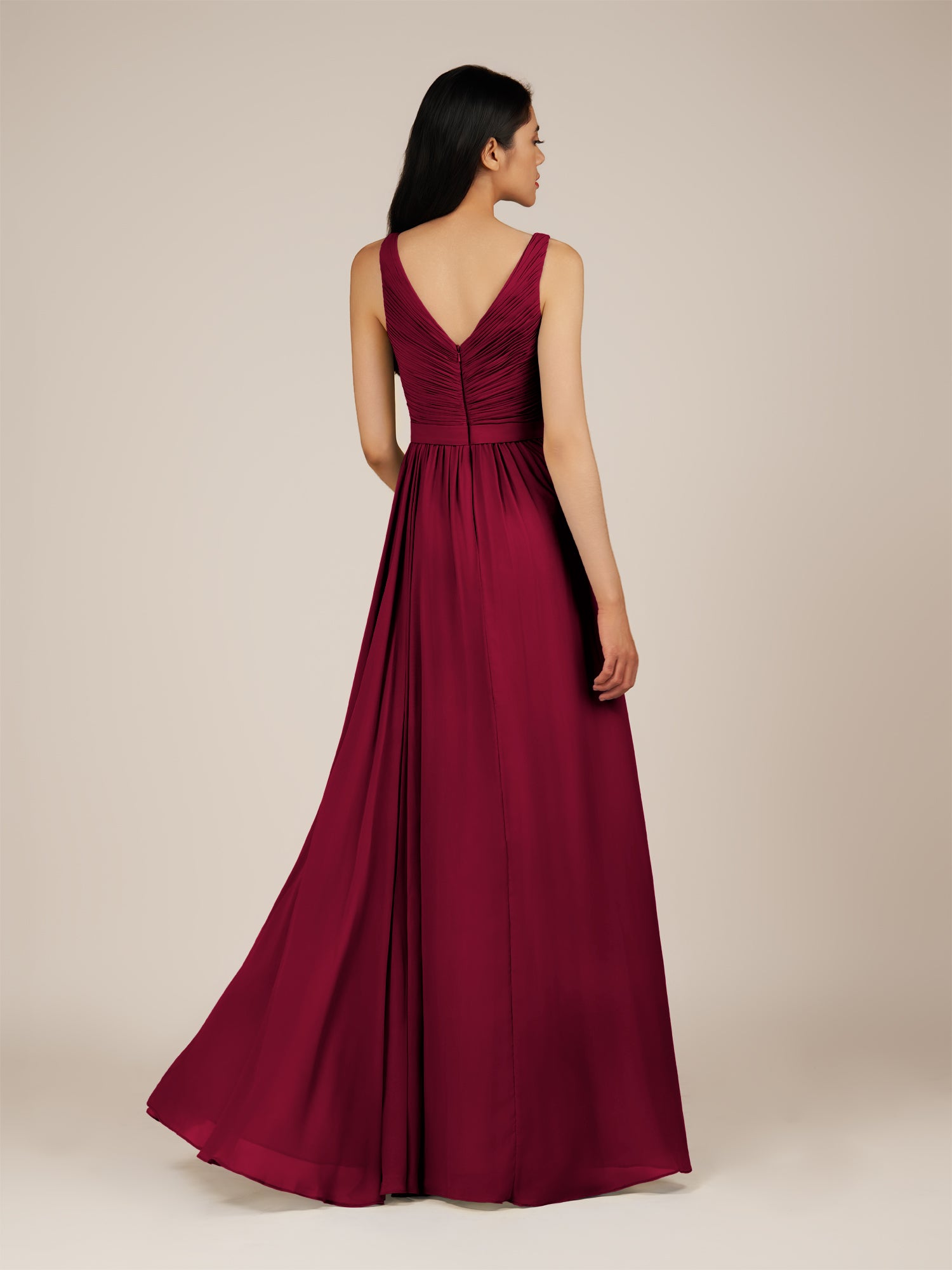 Lysander brings a timeless touch of elegance to your bridal party. Crafted from soft chiffon, this A-line bridesmaid dress features a flattering V-neckline and a pleated bodice that enhances the natural waistline. The floor-length skirt flows effortlessly, creating graceful movement with every step. Finished with a classic zipper back, Lysander offers a refined and romantic look that¡¯s perfect for any season or wedding theme.