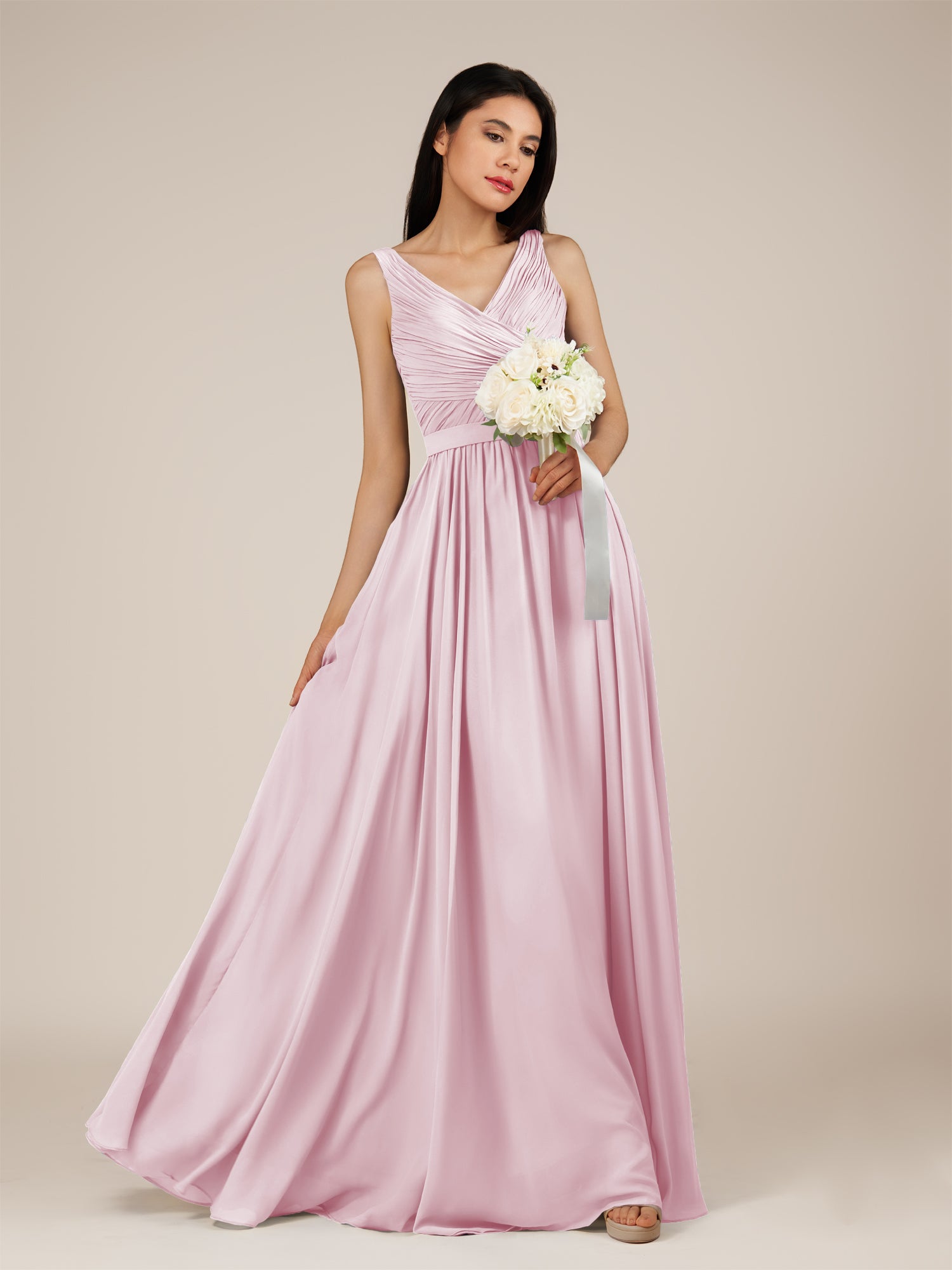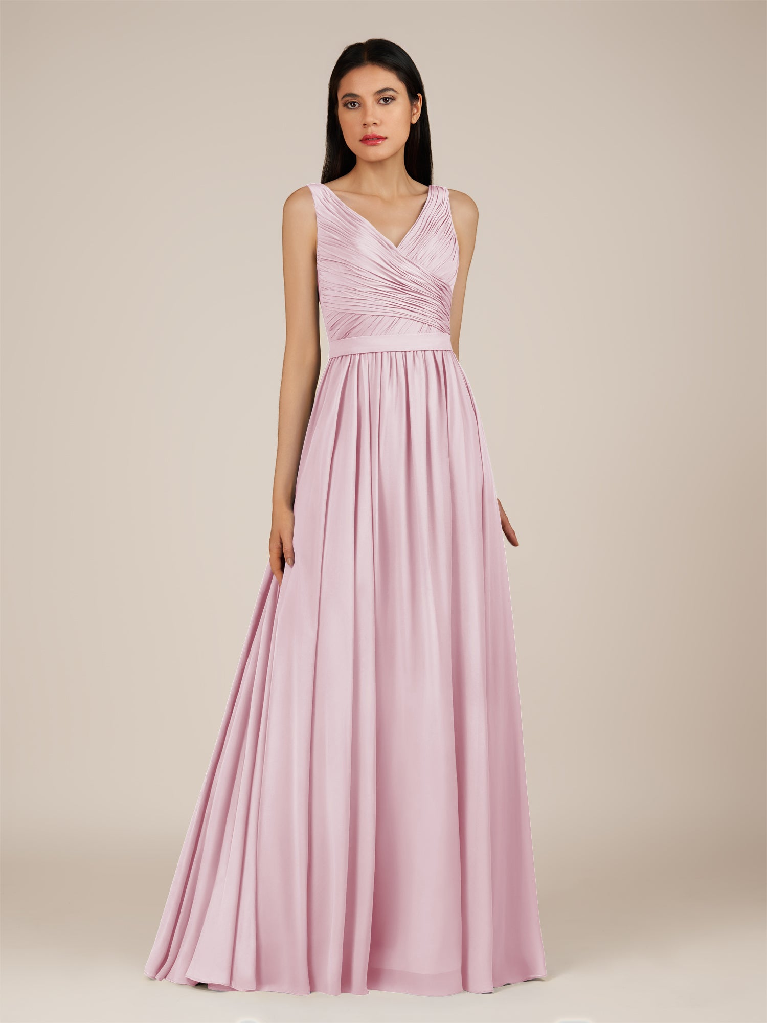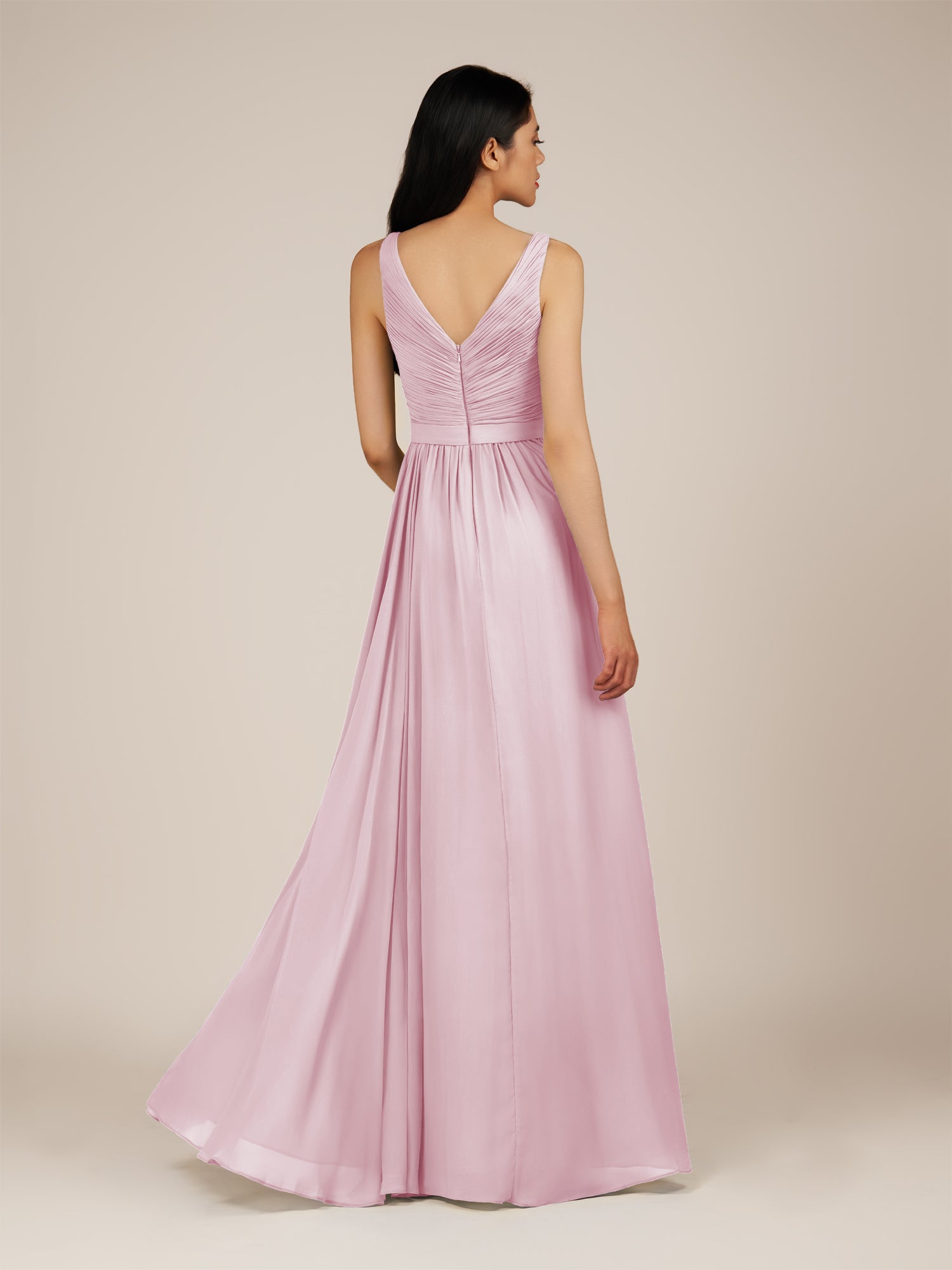Lysander brings a timeless touch of elegance to your bridal party. Crafted from soft chiffon, this A-line bridesmaid dress features a flattering V-neckline and a pleated bodice that enhances the natural waistline. The floor-length skirt flows effortlessly, creating graceful movement with every step. Finished with a classic zipper back, Lysander offers a refined and romantic look that¡¯s perfect for any season or wedding theme.