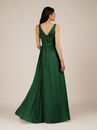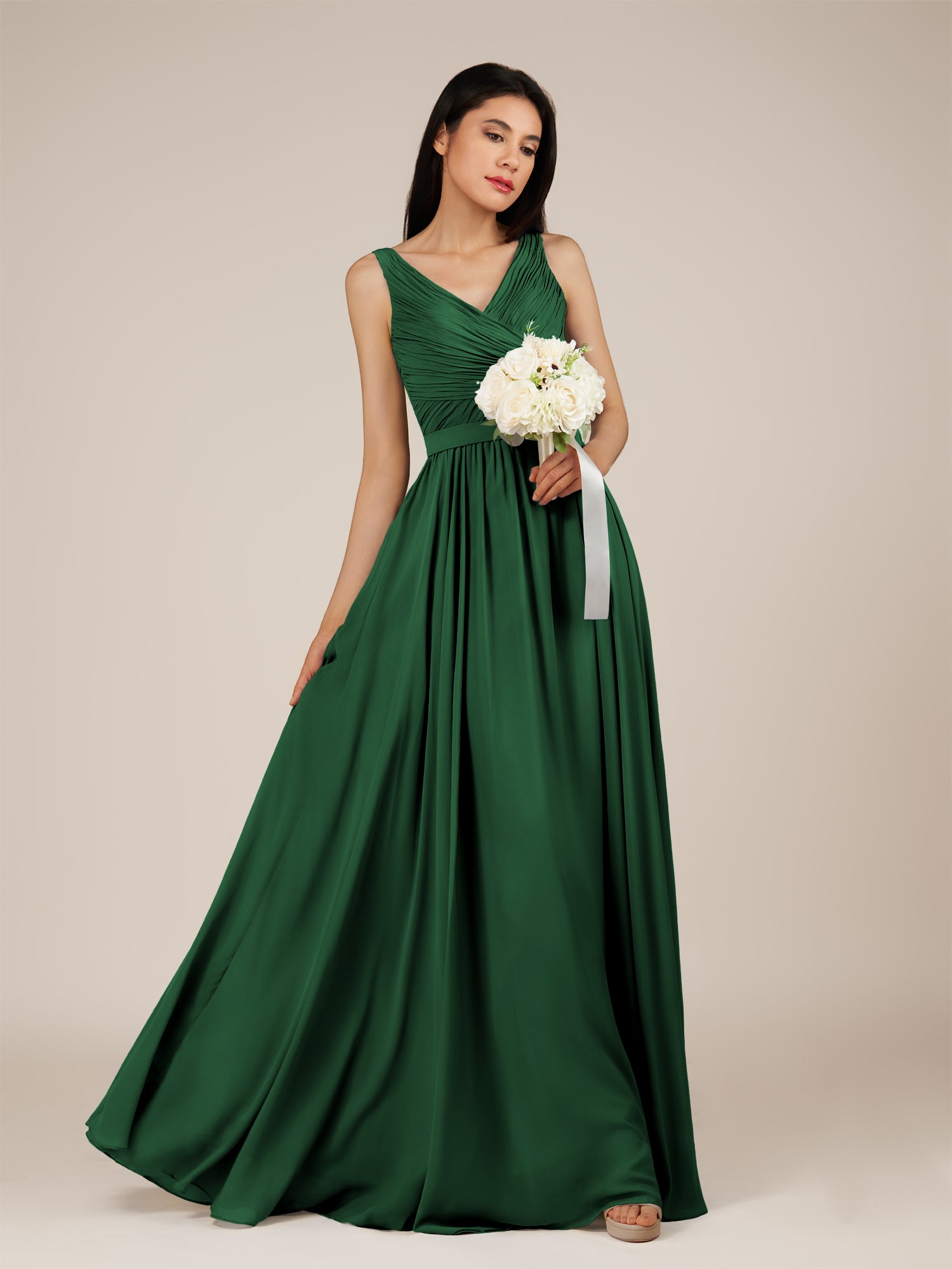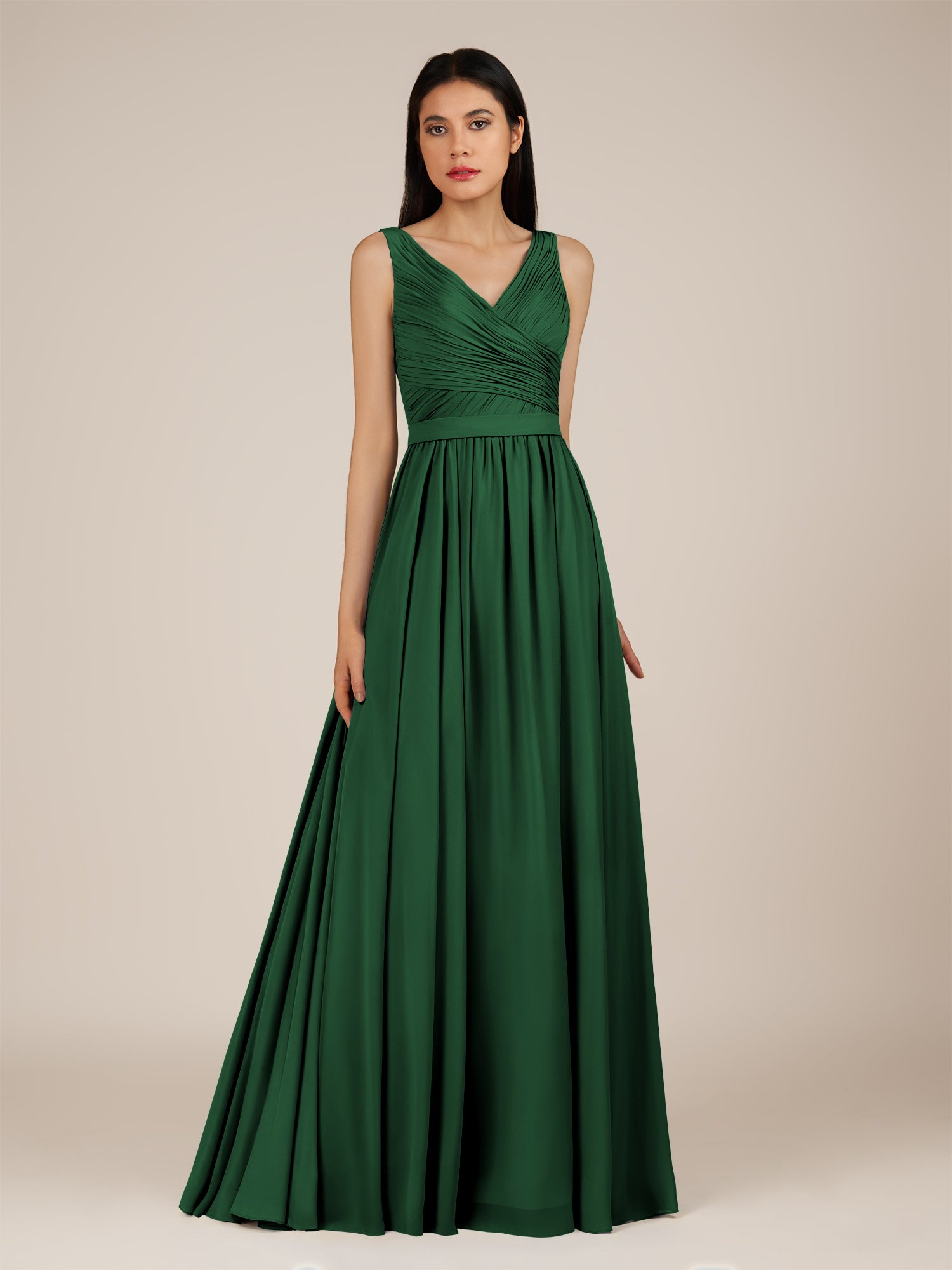 Lysander | Dark Green - A Line Chiffon V Neck Pleated Long Bridesmaid Dress