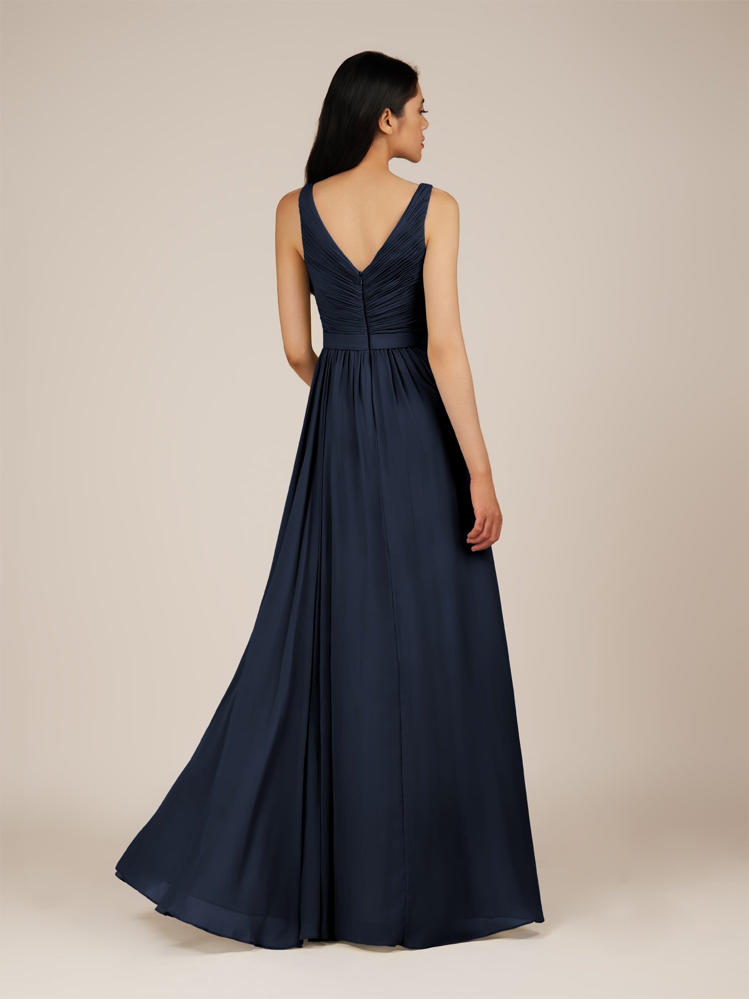 Lysander brings a timeless touch of elegance to your bridal party. Crafted from soft chiffon, this A-line bridesmaid dress features a flattering V-neckline and a pleated bodice that enhances the natural waistline. The floor-length skirt flows effortlessly, creating graceful movement with every step. Finished with a classic zipper back, Lysander offers a refined and romantic look that¡¯s perfect for any season or wedding theme.