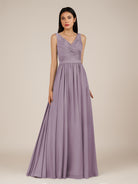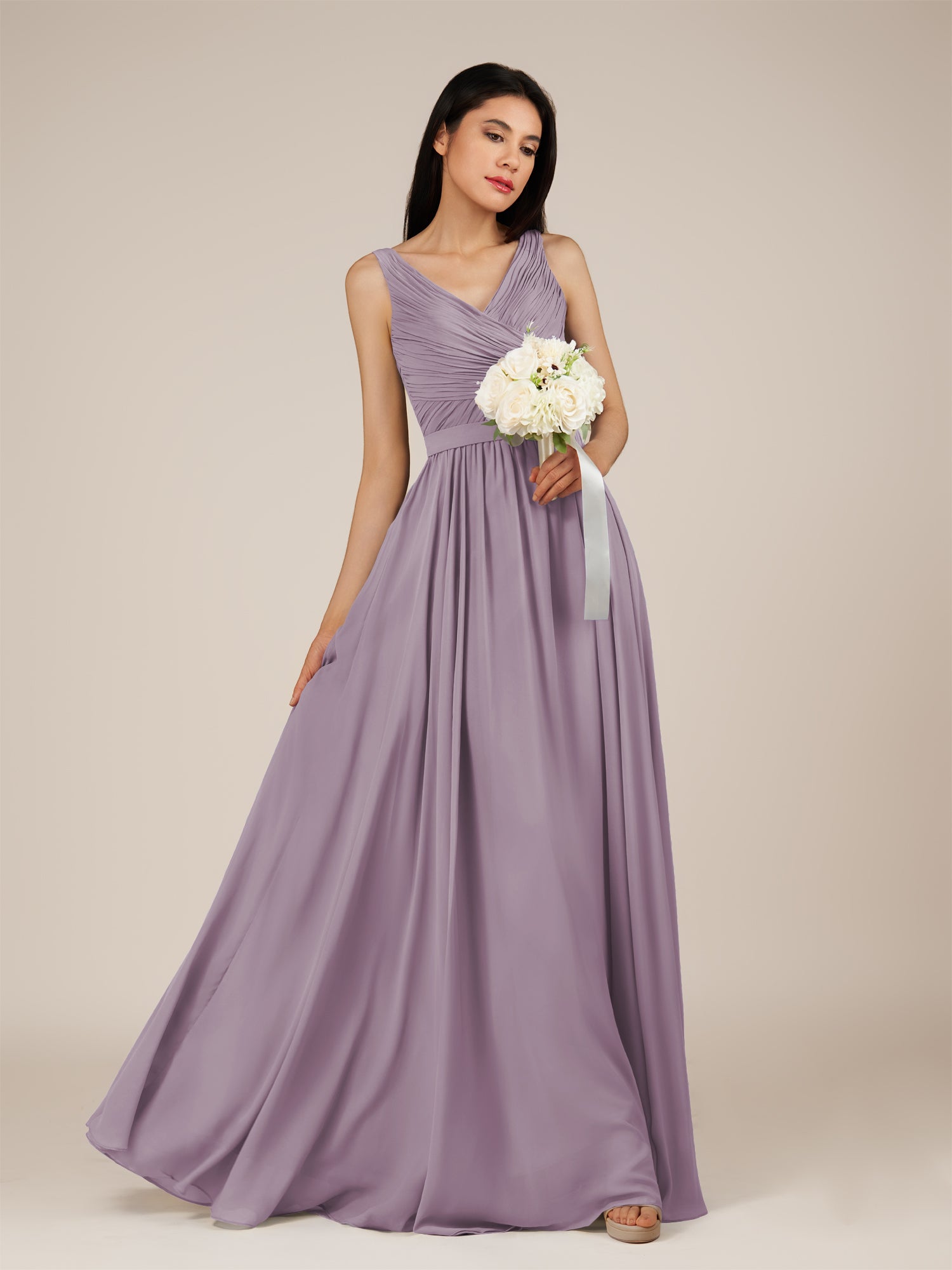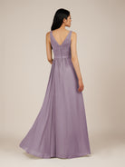 Lysander | Dusk - A Line Chiffon V Neck Pleated Long Bridesmaid Dress