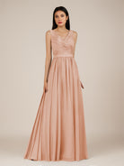 Lysander brings a timeless touch of elegance to your bridal party. Crafted from soft chiffon, this A-line bridesmaid dress features a flattering V-neckline and a pleated bodice that enhances the natural waistline. The floor-length skirt flows effortlessly, creating graceful movement with every step. Finished with a classic zipper back, Lysander offers a refined and romantic look that¡¯s perfect for any season or wedding theme.