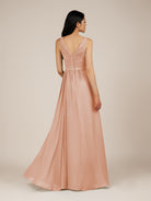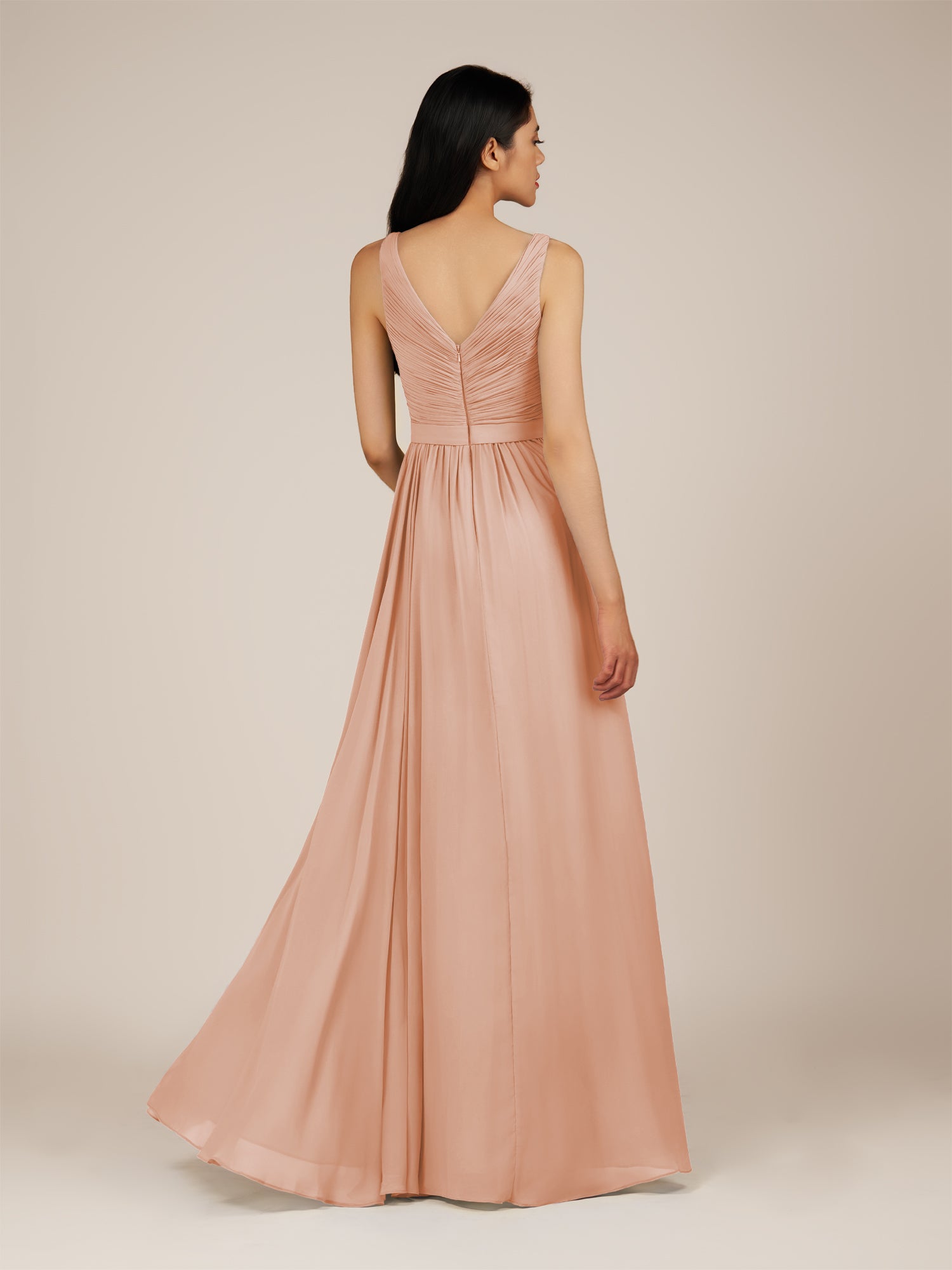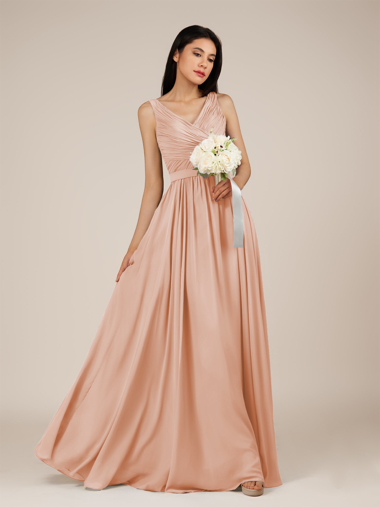 Lysander | English Rose - A Line Chiffon V Neck Pleated Long Bridesmaid Dress