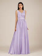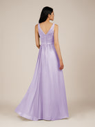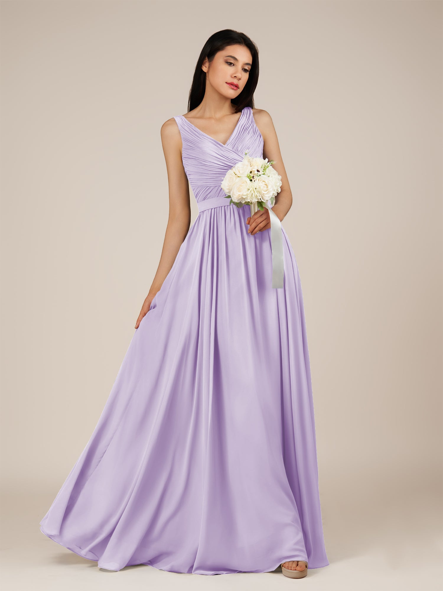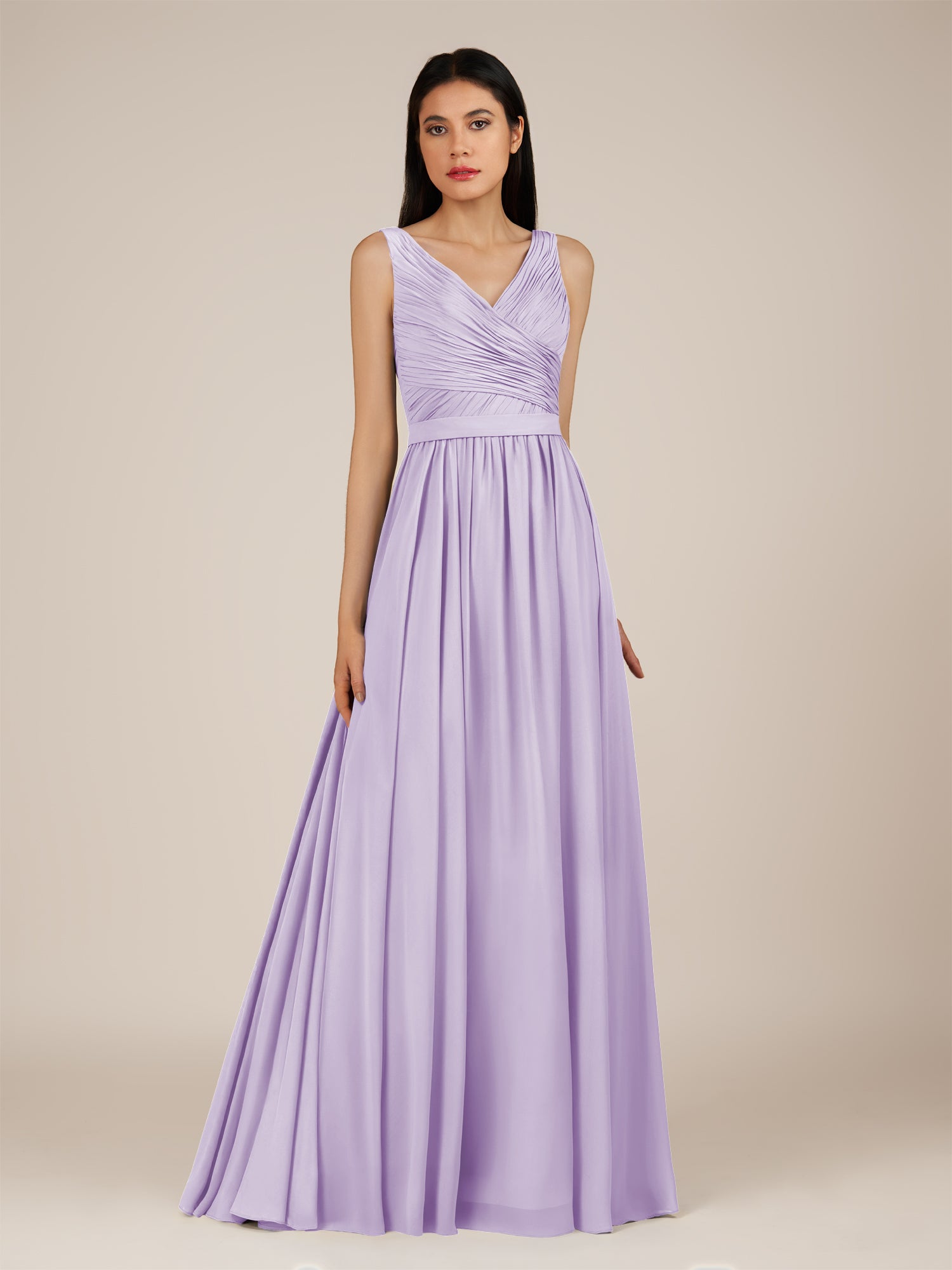 Lysander | Lavender - A Line Chiffon V Neck Pleated Long Bridesmaid Dress