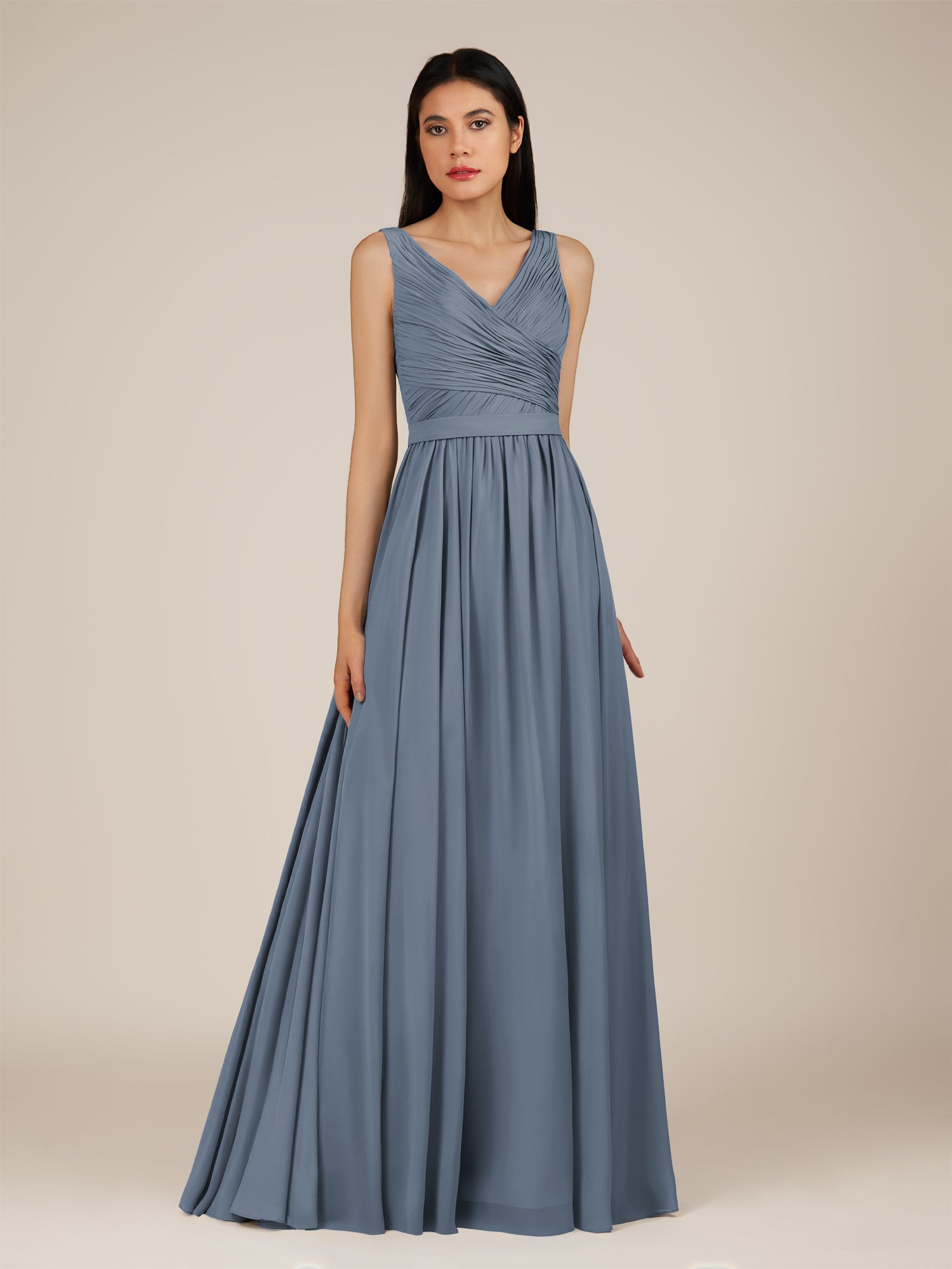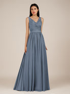 Lysander | Neptune - A Line Chiffon V Neck Pleated Long Bridesmaid Dress