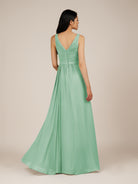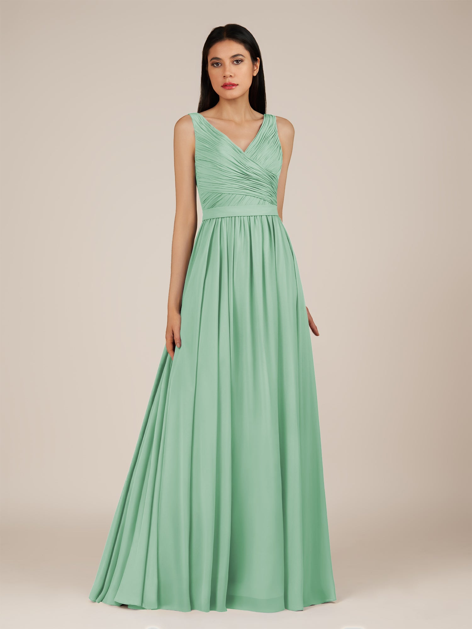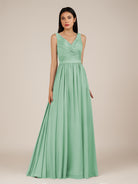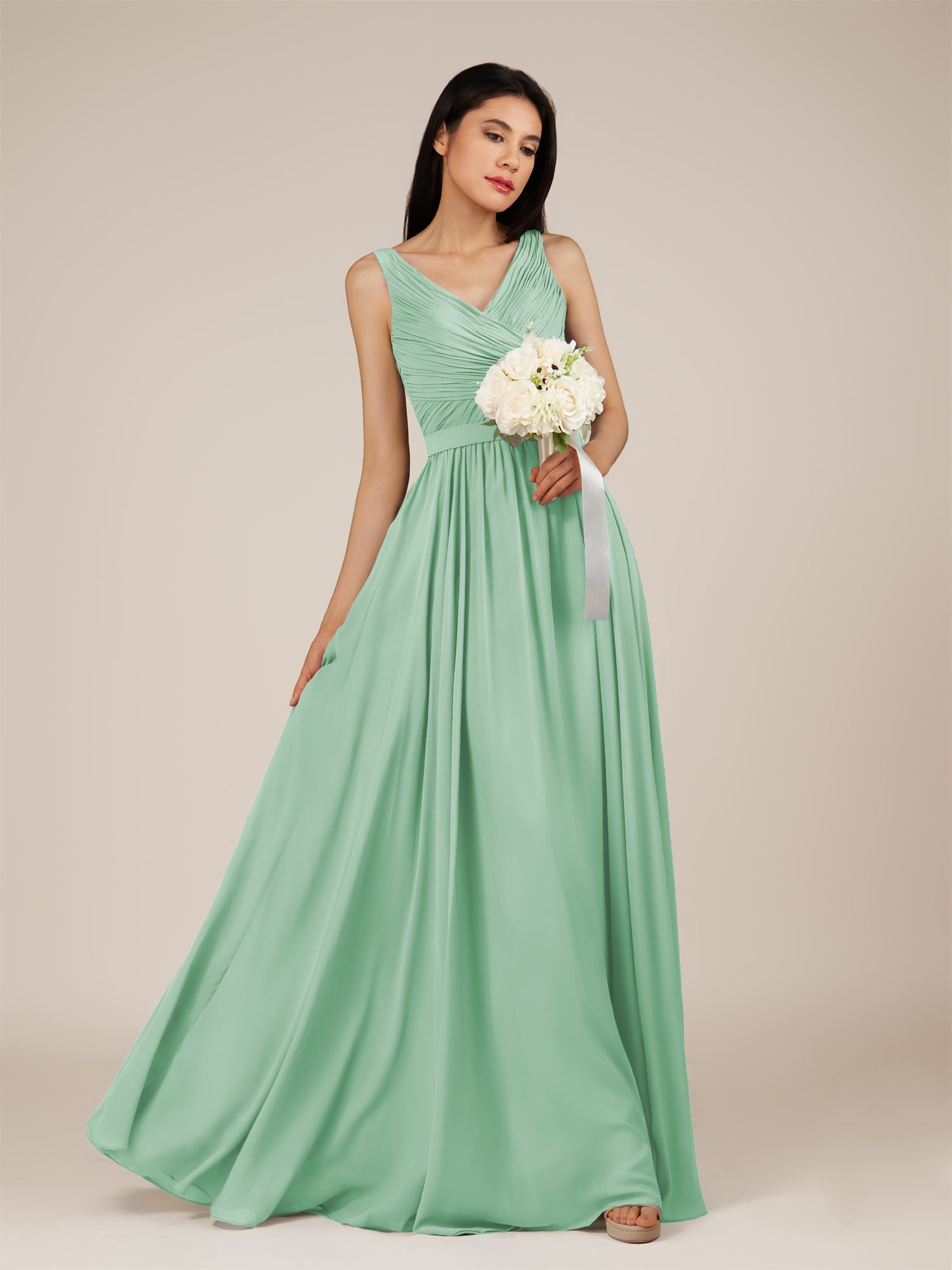 Lysander | Pale Pistachio - A Line Chiffon V Neck Pleated Long Bridesmaid Dress
