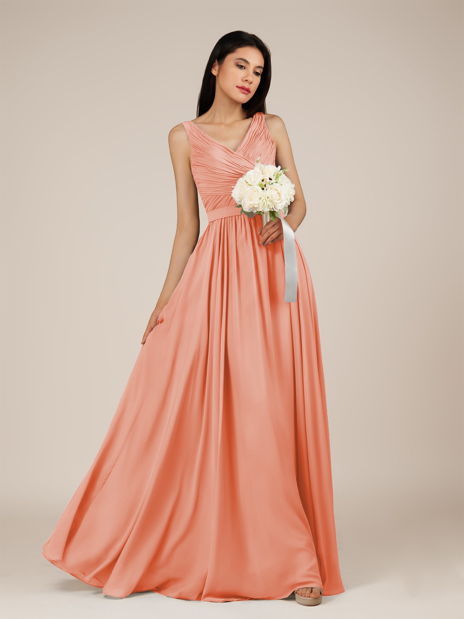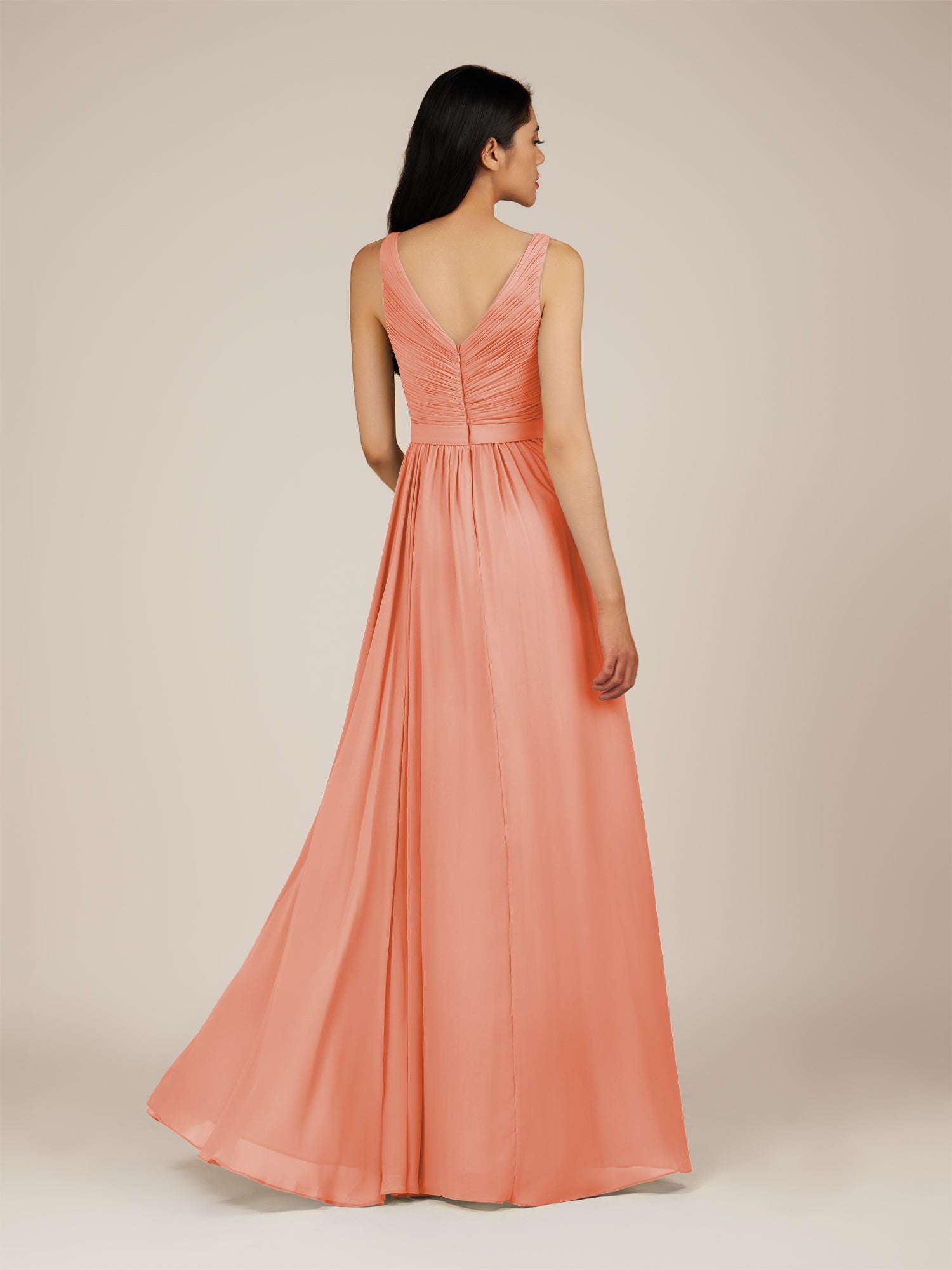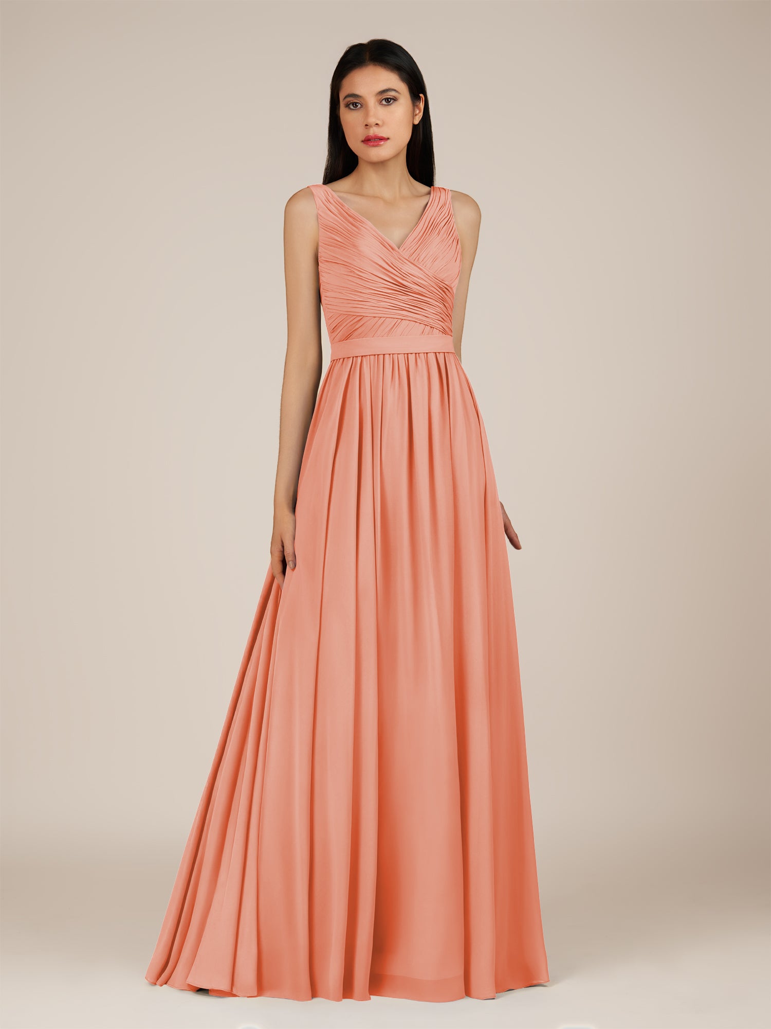 Lysander brings a timeless touch of elegance to your bridal party. Crafted from soft chiffon, this A-line bridesmaid dress features a flattering V-neckline and a pleated bodice that enhances the natural waistline. The floor-length skirt flows effortlessly, creating graceful movement with every step. Finished with a classic zipper back, Lysander offers a refined and romantic look that¡¯s perfect for any season or wedding theme.
