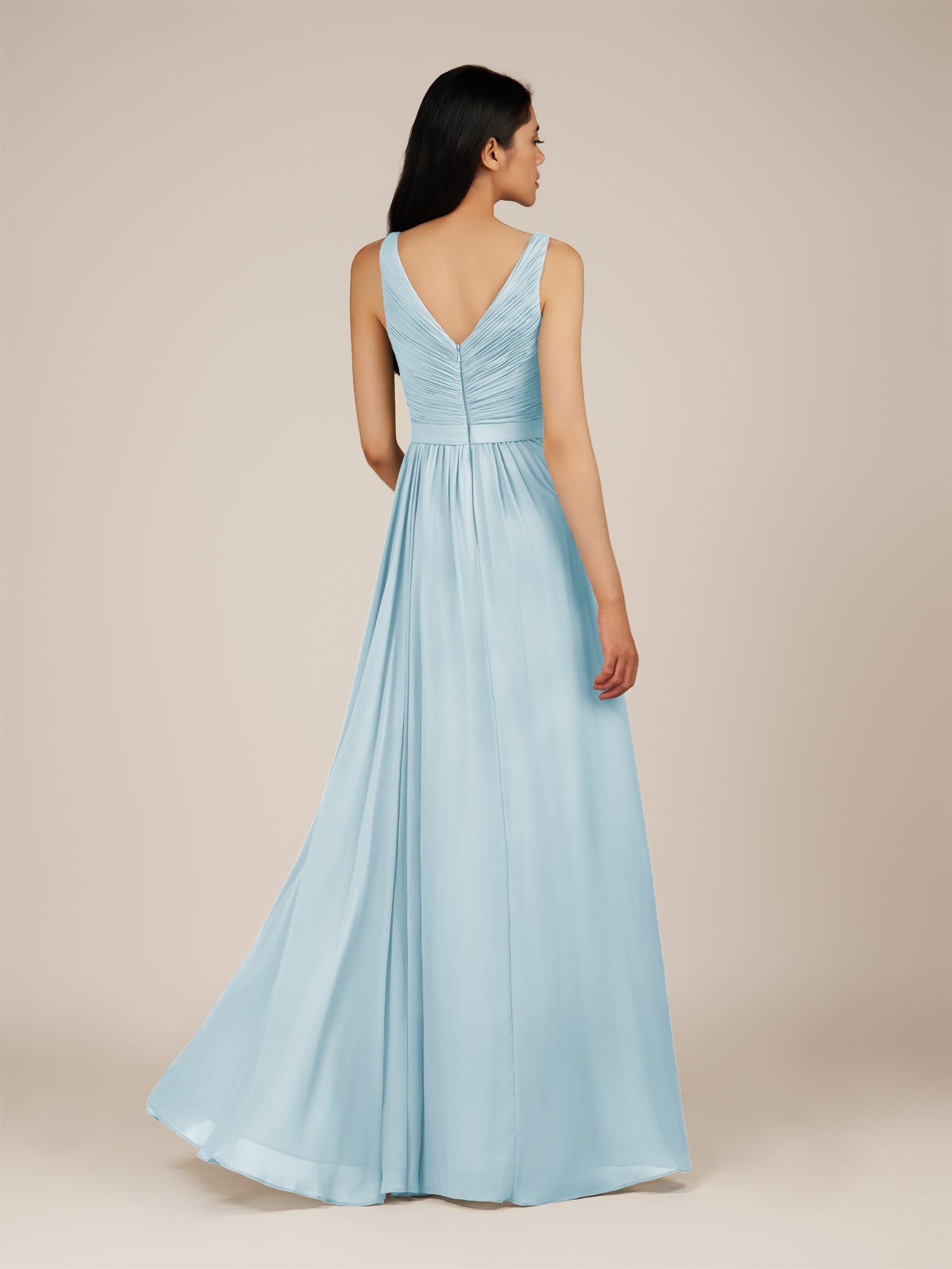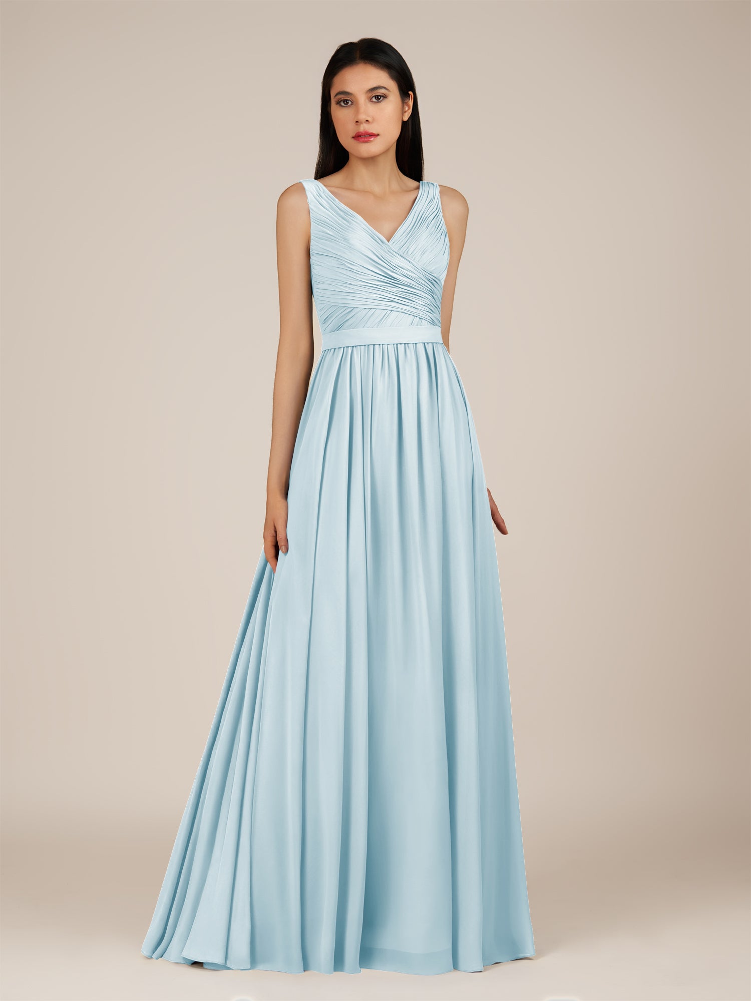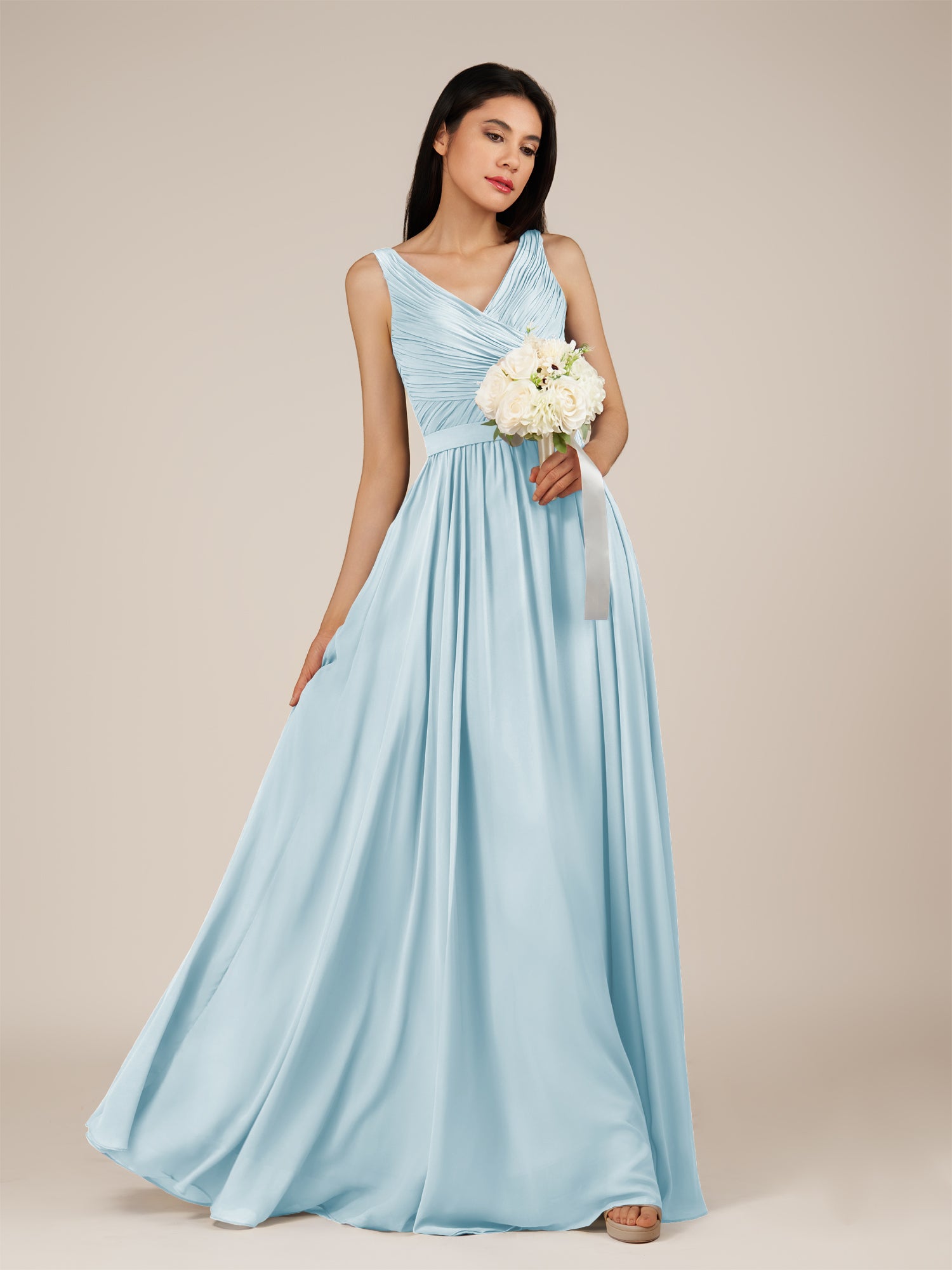 Lysander | Sky Blue - A Line Chiffon V Neck Pleated Long Bridesmaid Dress