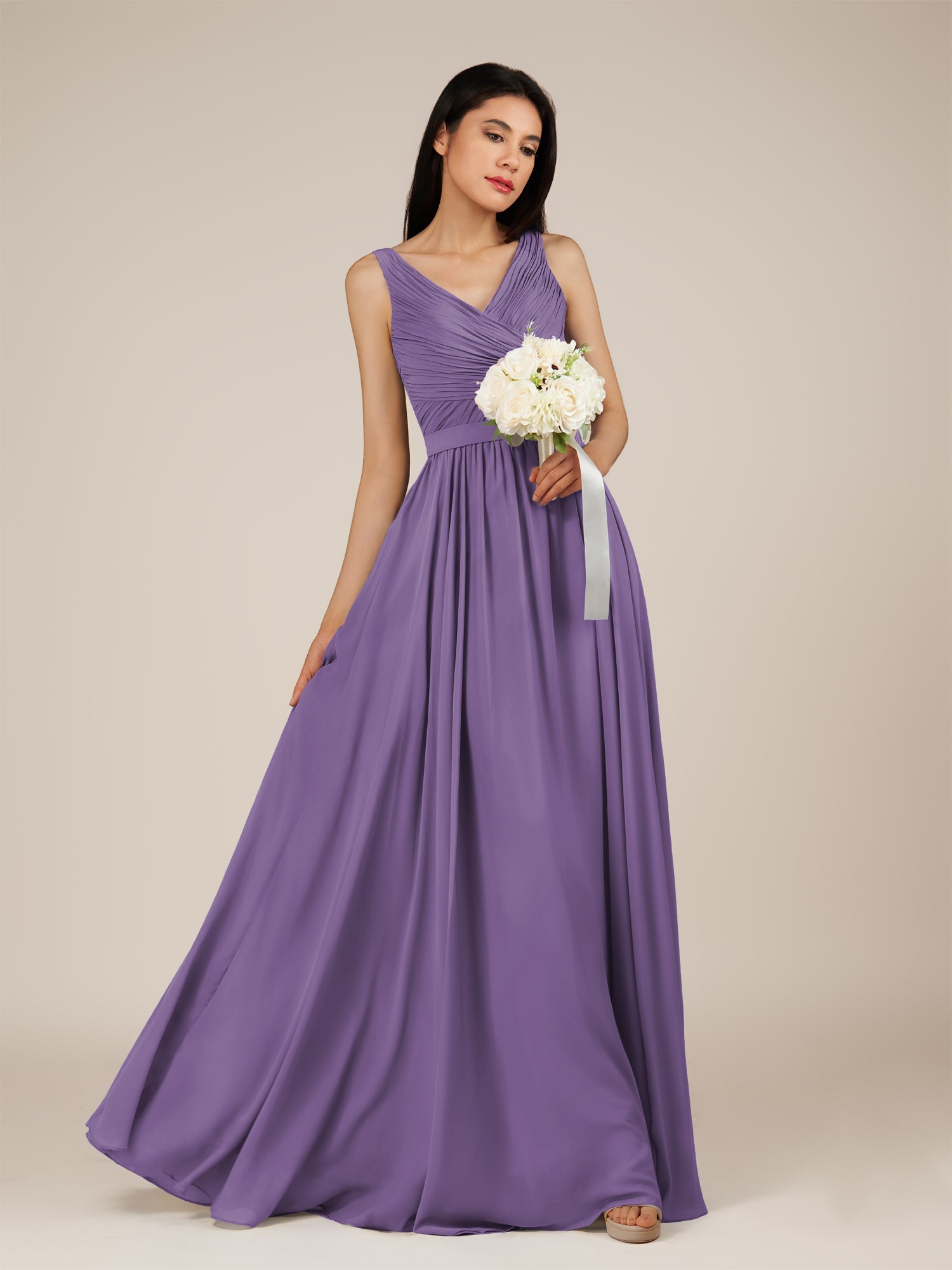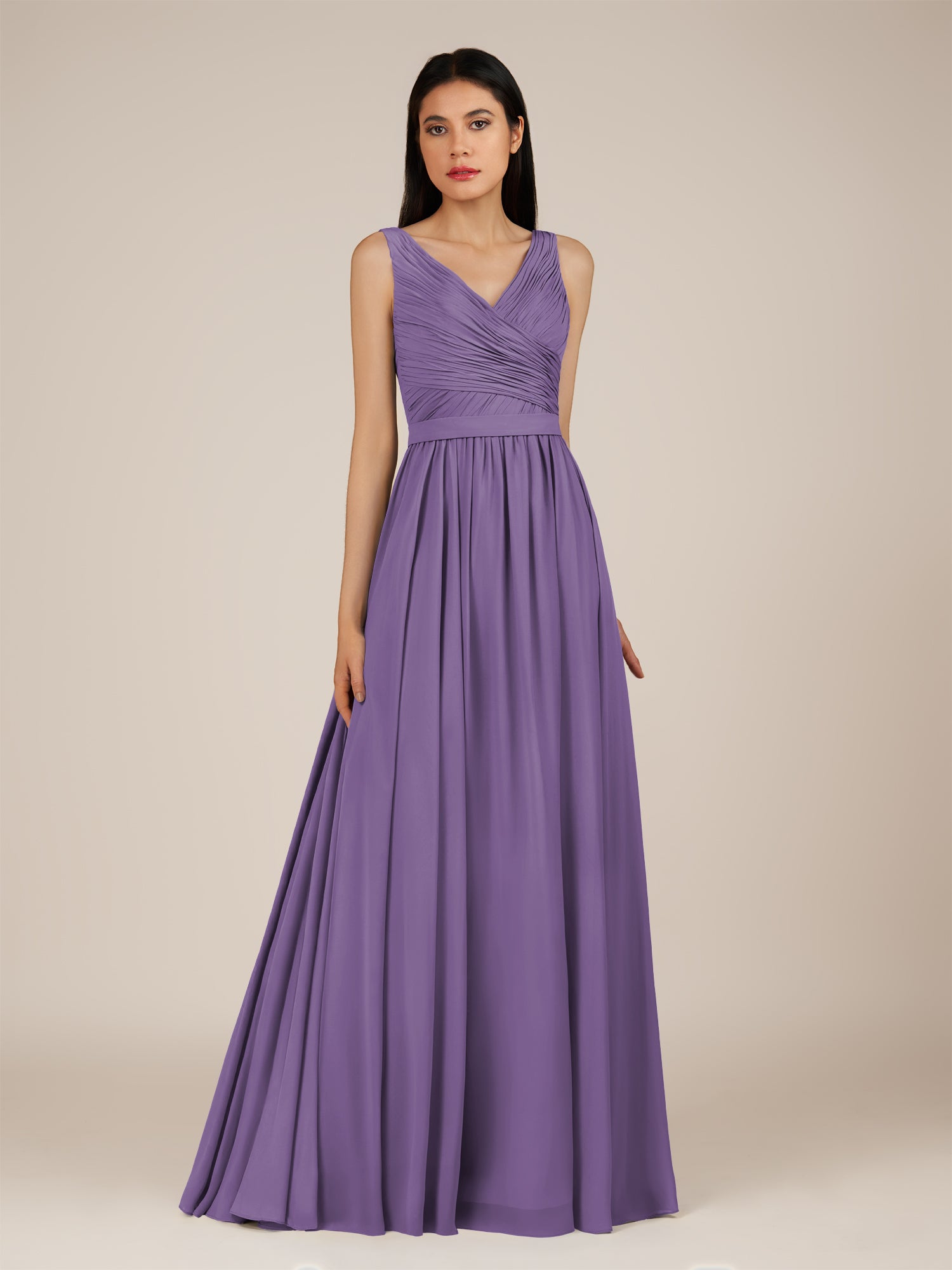 Lysander brings a timeless touch of elegance to your bridal party. Crafted from soft chiffon, this A-line bridesmaid dress features a flattering V-neckline and a pleated bodice that enhances the natural waistline. The floor-length skirt flows effortlessly, creating graceful movement with every step. Finished with a classic zipper back, Lysander offers a refined and romantic look that¡¯s perfect for any season or wedding theme.