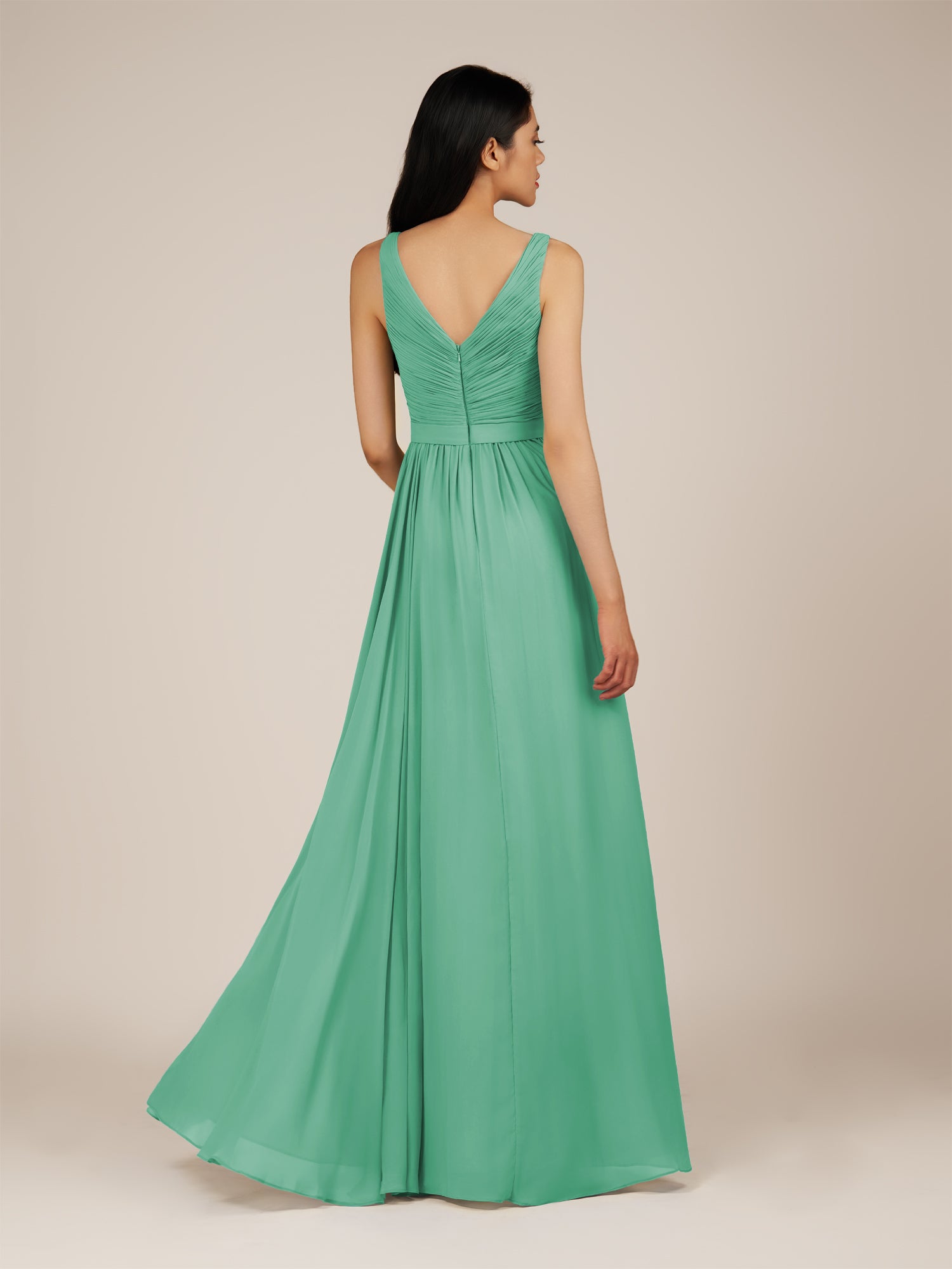 Lysander brings a timeless touch of elegance to your bridal party. Crafted from soft chiffon, this A-line bridesmaid dress features a flattering V-neckline and a pleated bodice that enhances the natural waistline. The floor-length skirt flows effortlessly, creating graceful movement with every step. Finished with a classic zipper back, Lysander offers a refined and romantic look that¡¯s perfect for any season or wedding theme.