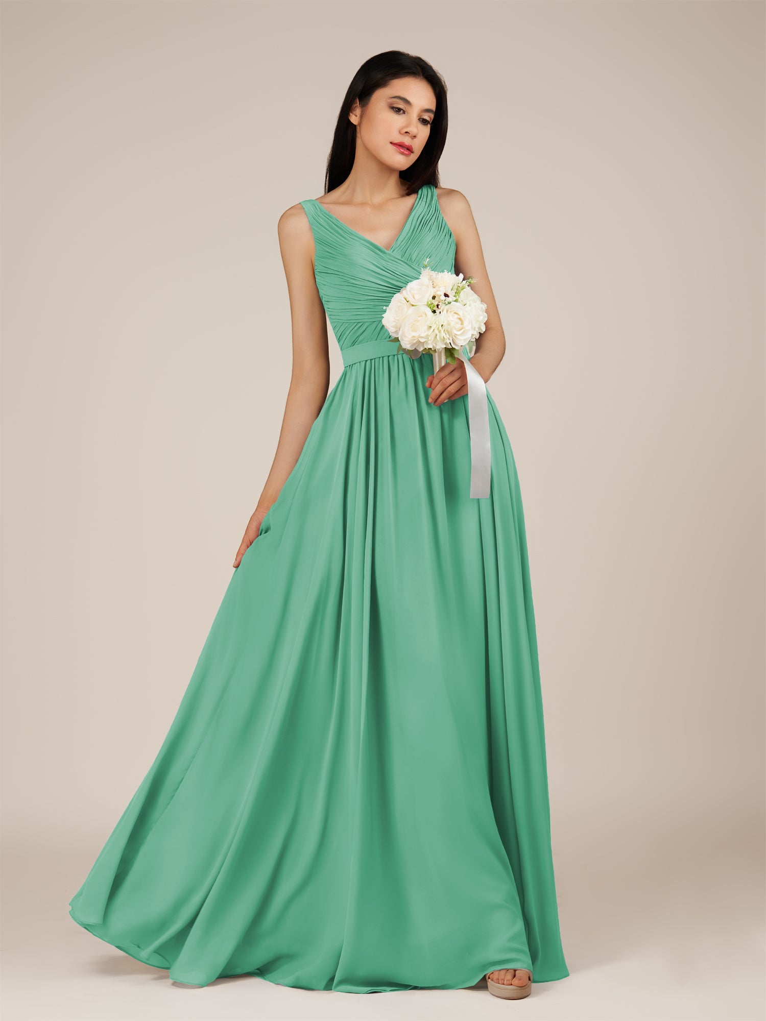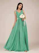 Lysander | Turquoise - A Line Chiffon V Neck Pleated Long Bridesmaid Dress