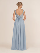 Elegant and refined, this airy chiffon bridesmaid dress features a sleek a line silhouette and a delicate illusion neckline. The sleeveless design offers a modern touch, while the lace appliques add a hint of romance and sophistication. Finished with a smooth zipper back and floor-length hem, it’s a graceful choice for weddings, receptions, or formal celebrations.