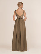 Elegant and refined, this airy chiffon bridesmaid dress features a sleek a line silhouette and a delicate illusion neckline. The sleeveless design offers a modern touch, while the lace appliques add a hint of romance and sophistication. Finished with a smooth zipper back and floor-length hem, it’s a graceful choice for weddings, receptions, or formal celebrations.