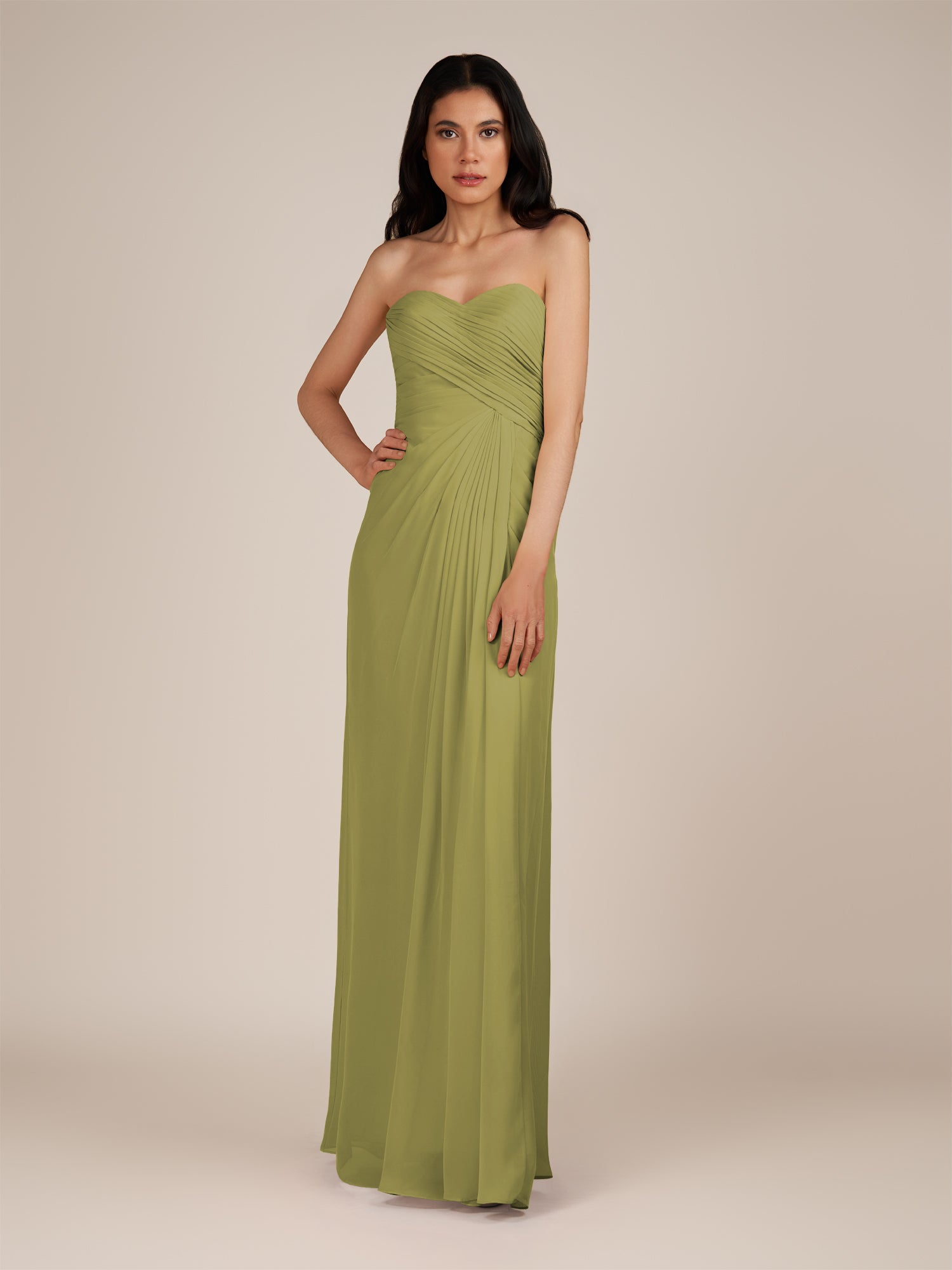 Wanlian | Moss Green - A Line Chiffon Sweetheart Long Bridesmaid Dress with Pleats