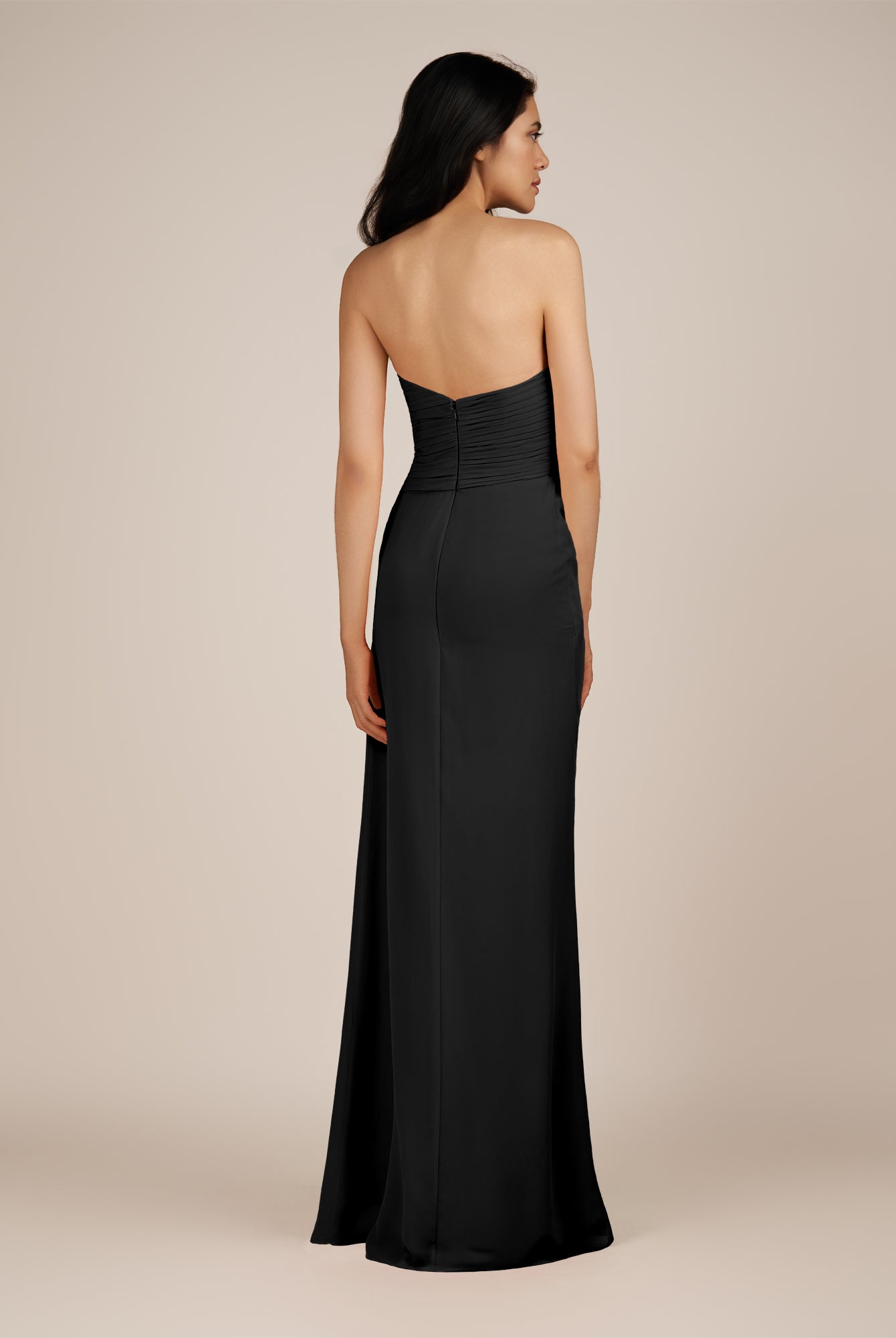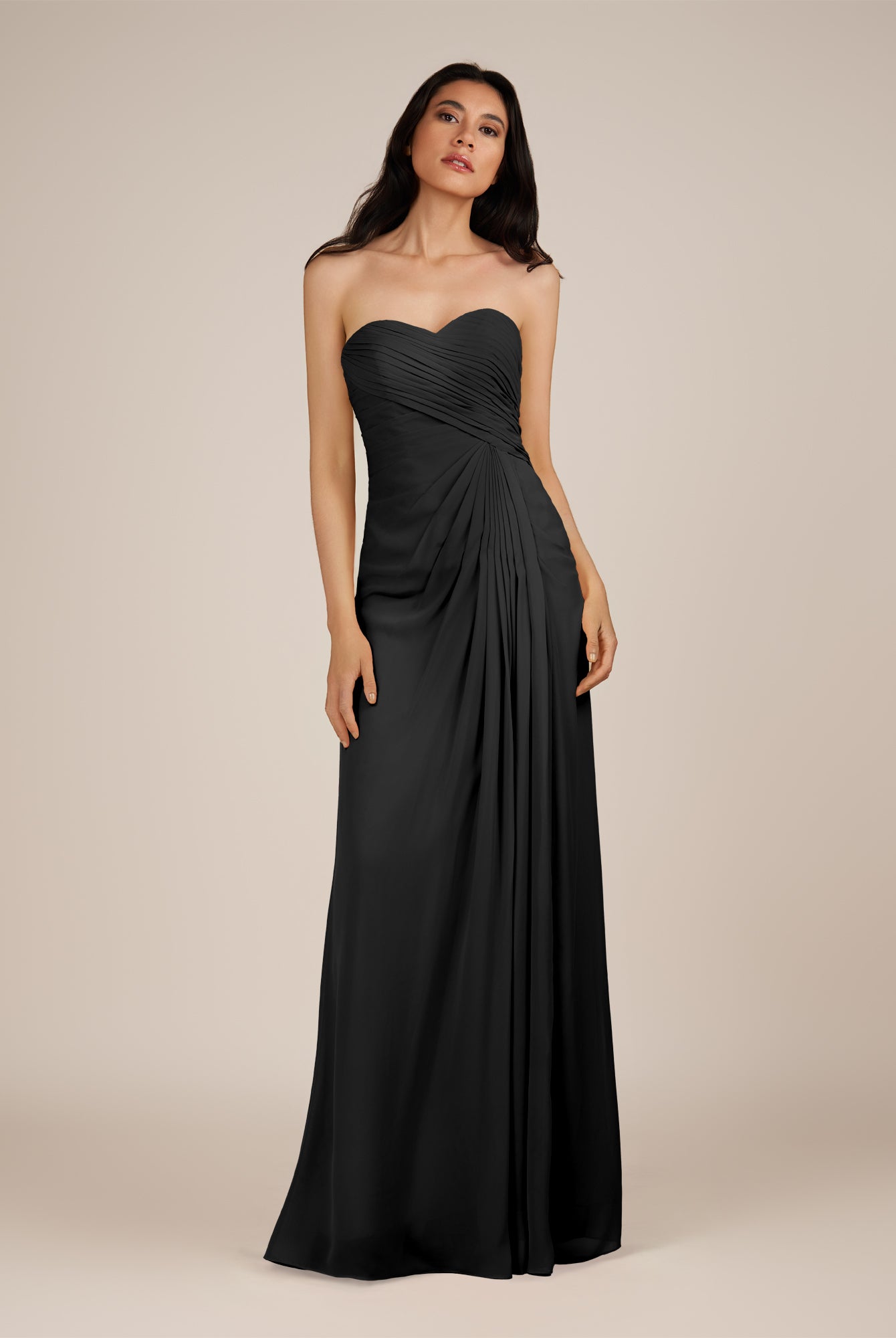 Wanlian | Black - A Line Chiffon Sweetheart Long Bridesmaid Dress with Pleats
