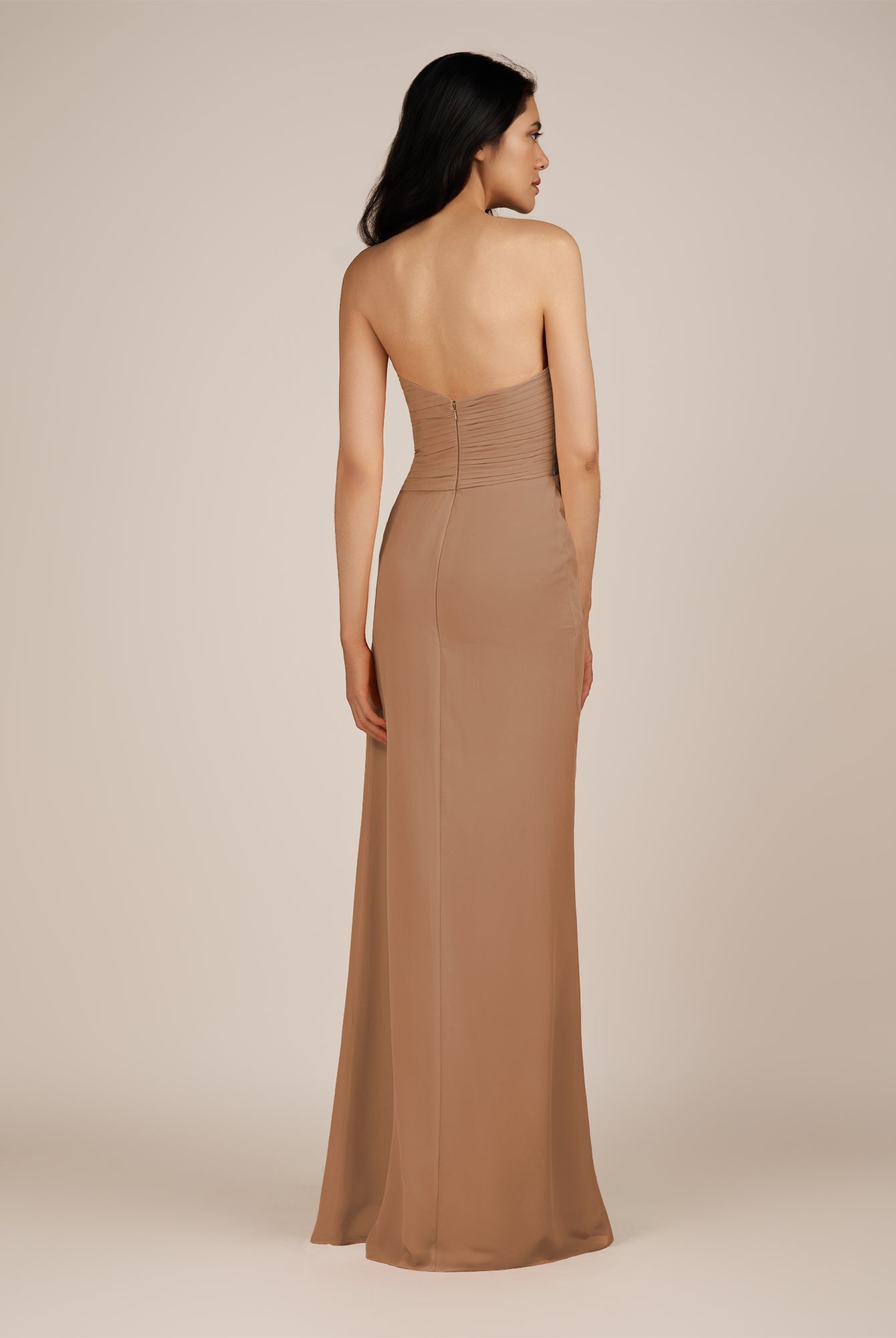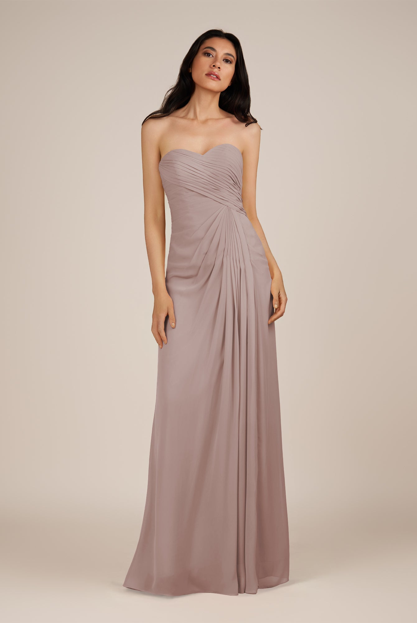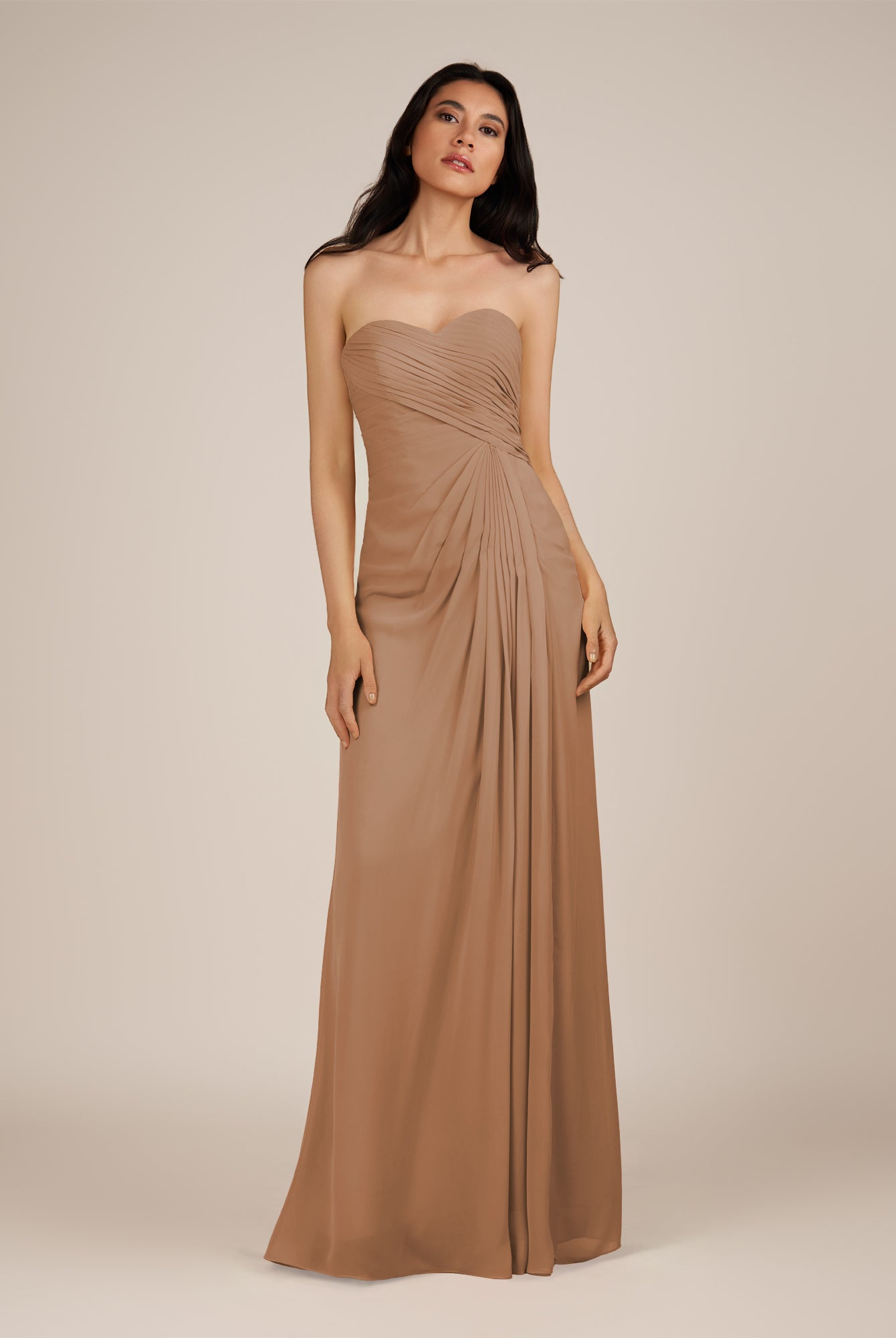 Wanlian | Toffee - A Line Chiffon Sweetheart Long Bridesmaid Dress with Pleats