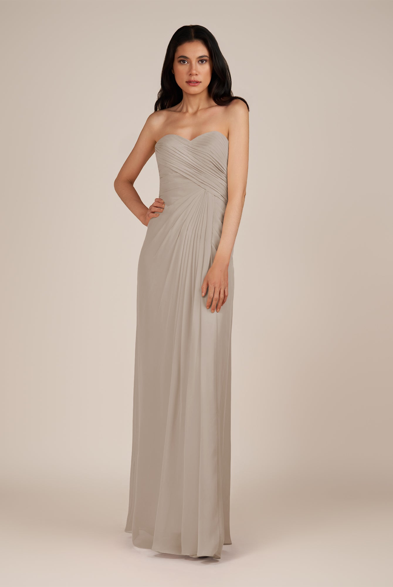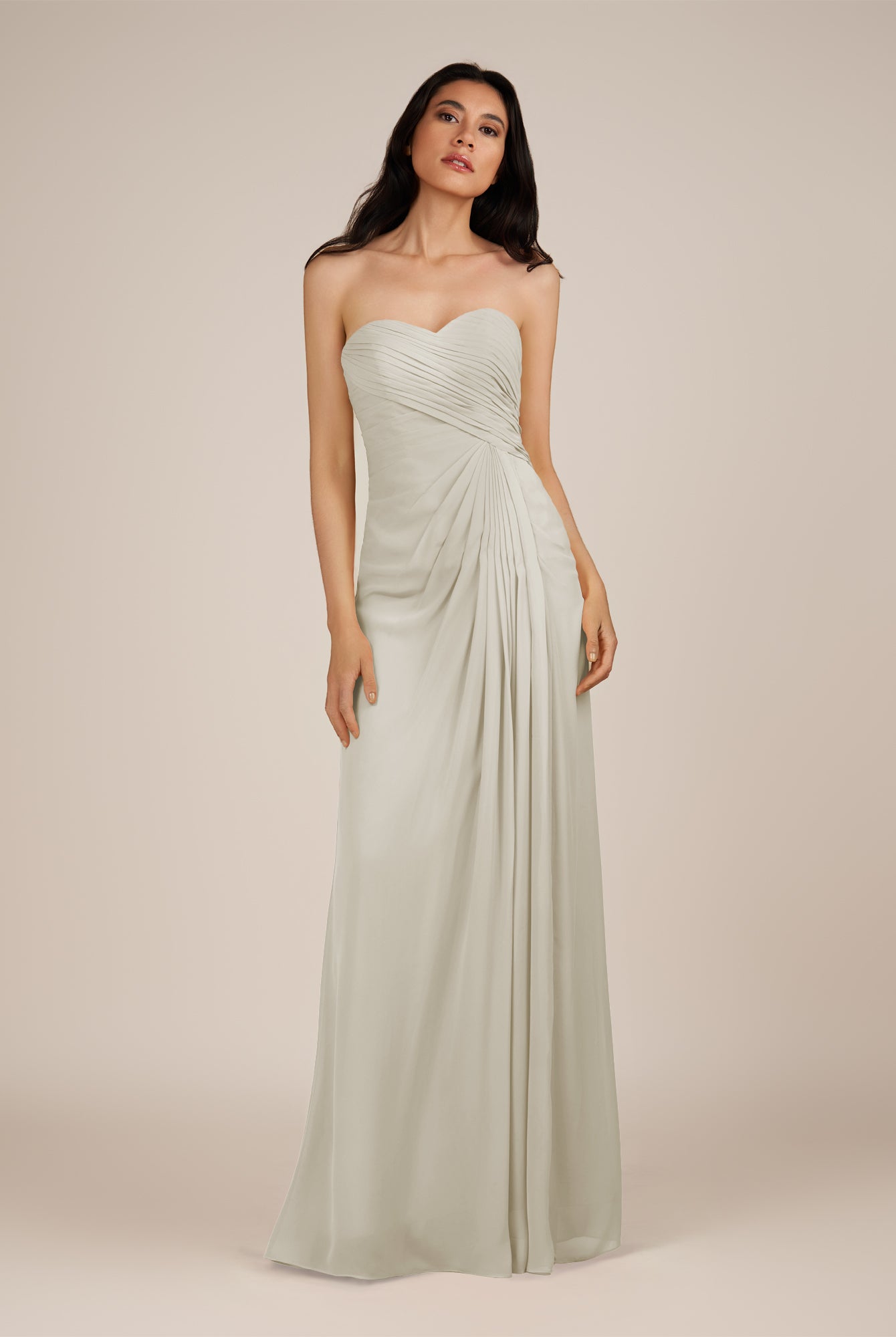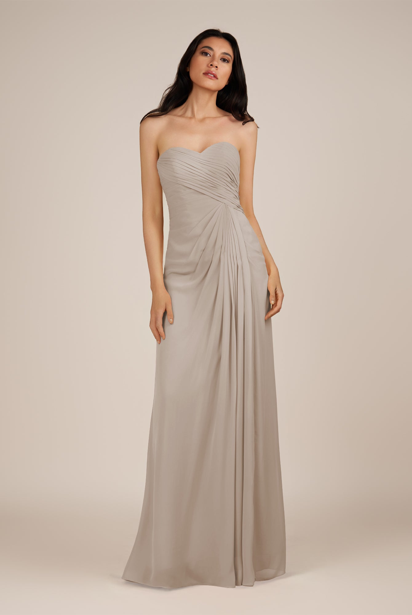 Wanlian | Dove Gray - A Line Chiffon Sweetheart Long Bridesmaid Dress with Pleats