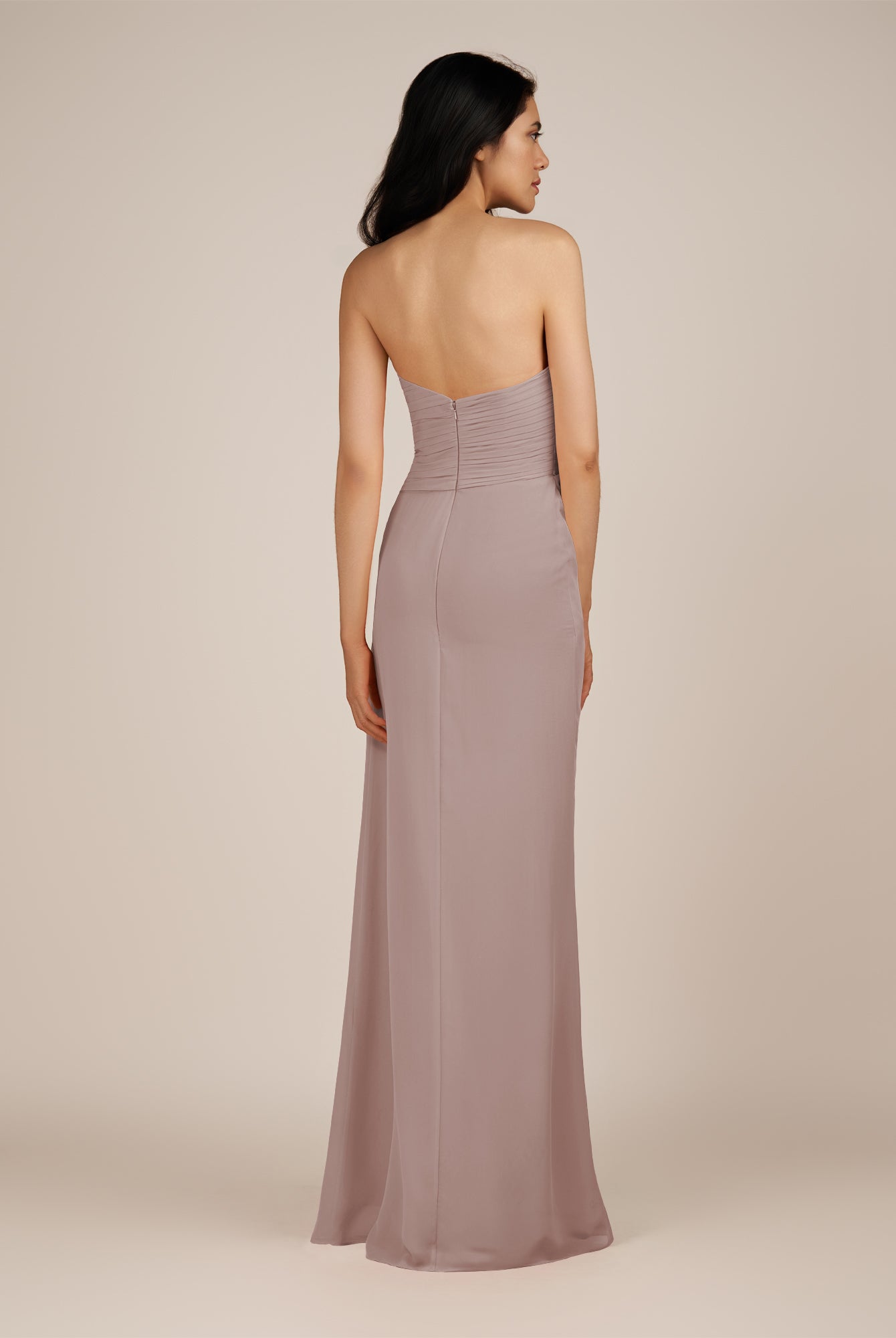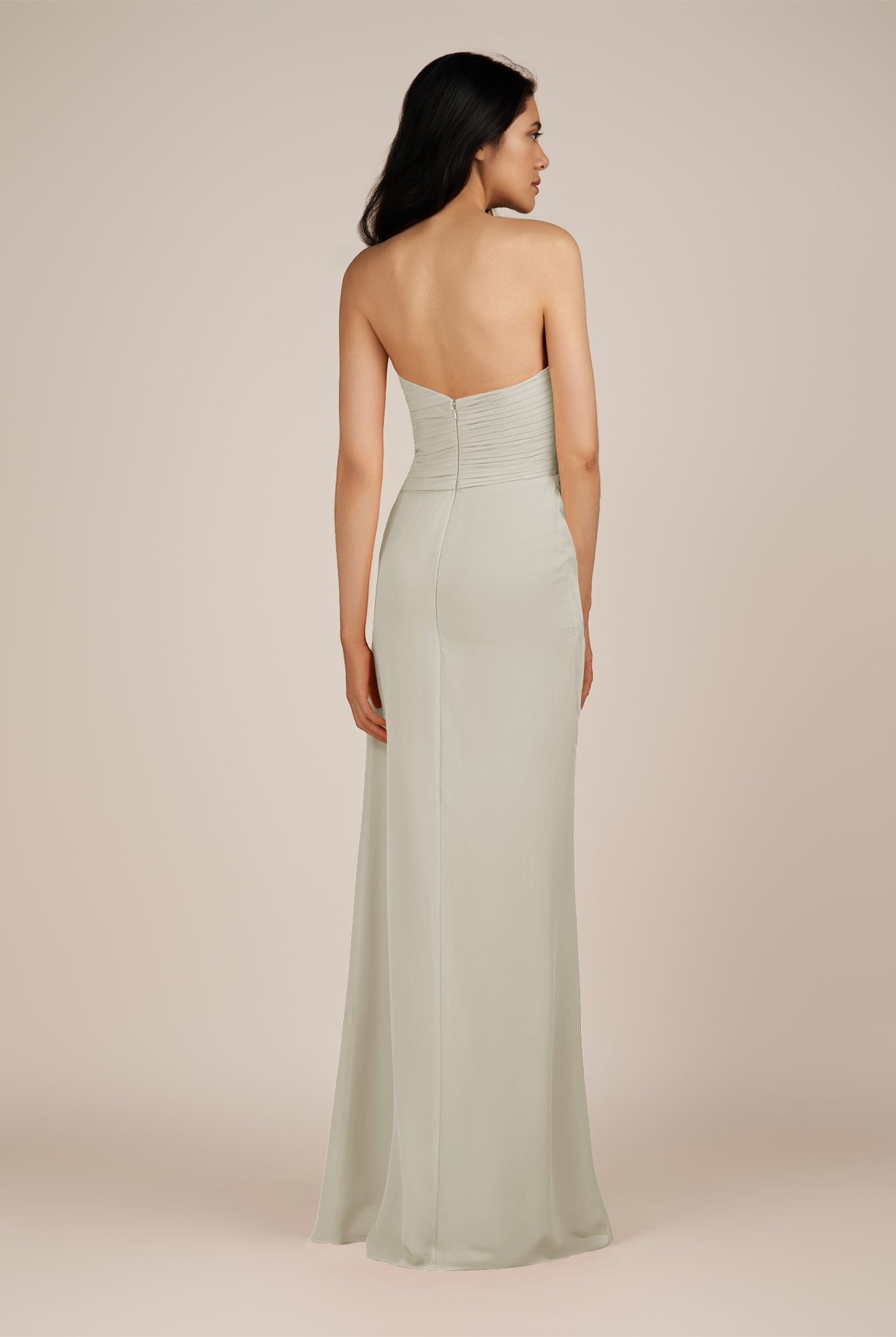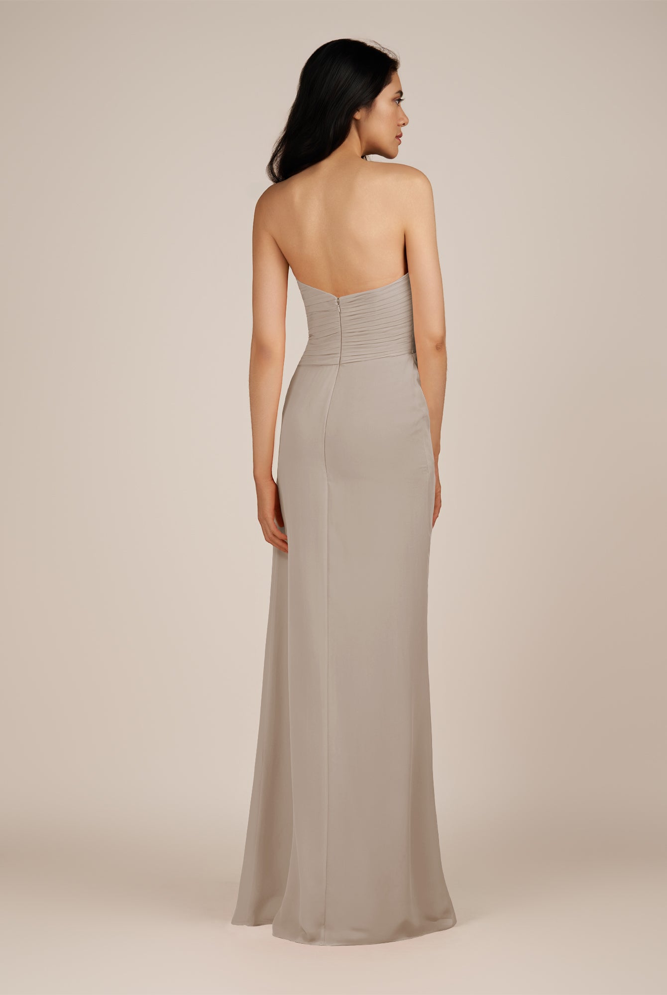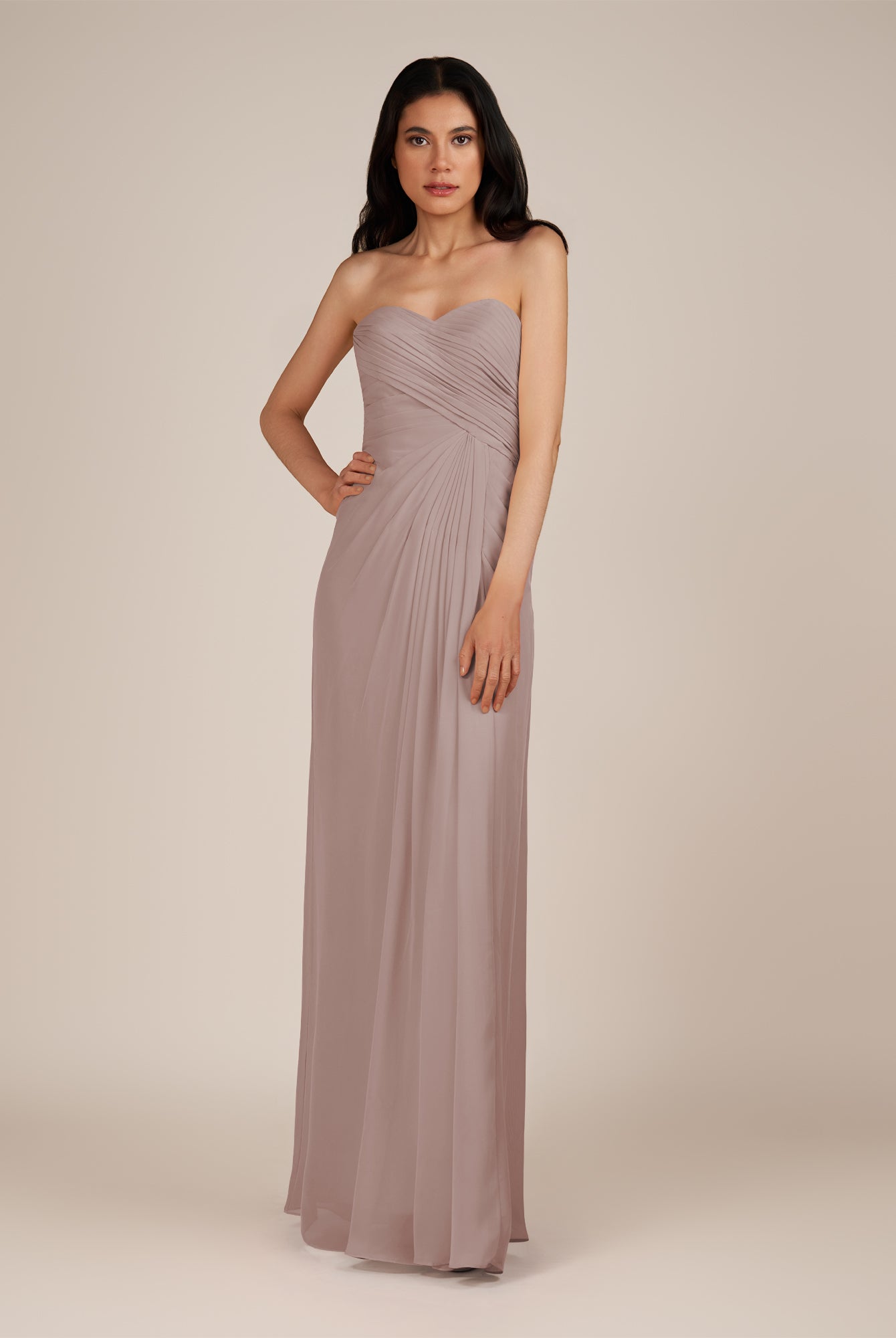 Wanlian | Dove Gray - A Line Chiffon Sweetheart Long Bridesmaid Dress with Pleats