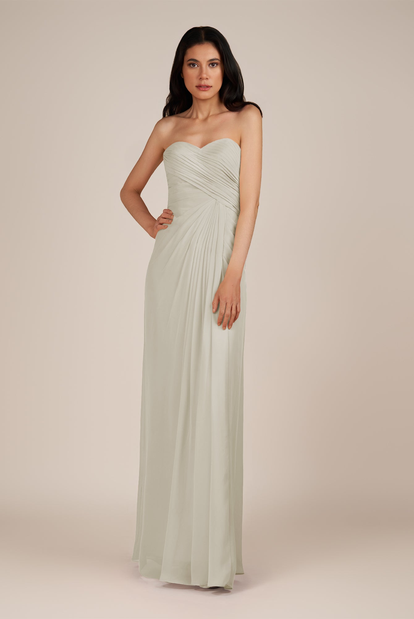 Wanlian | Frost - A Line Chiffon Sweetheart Long Bridesmaid Dress with Pleats