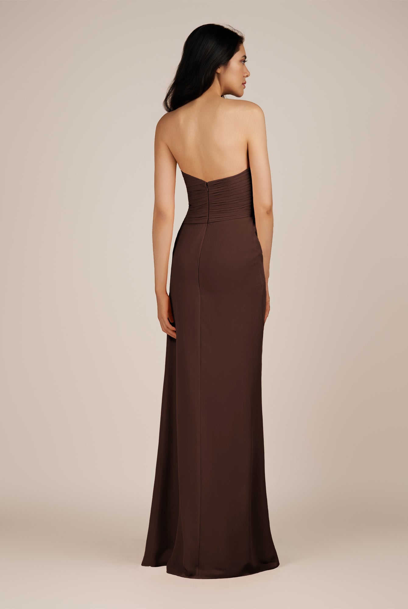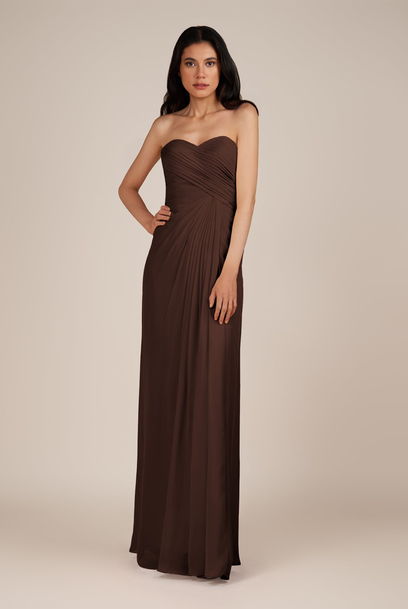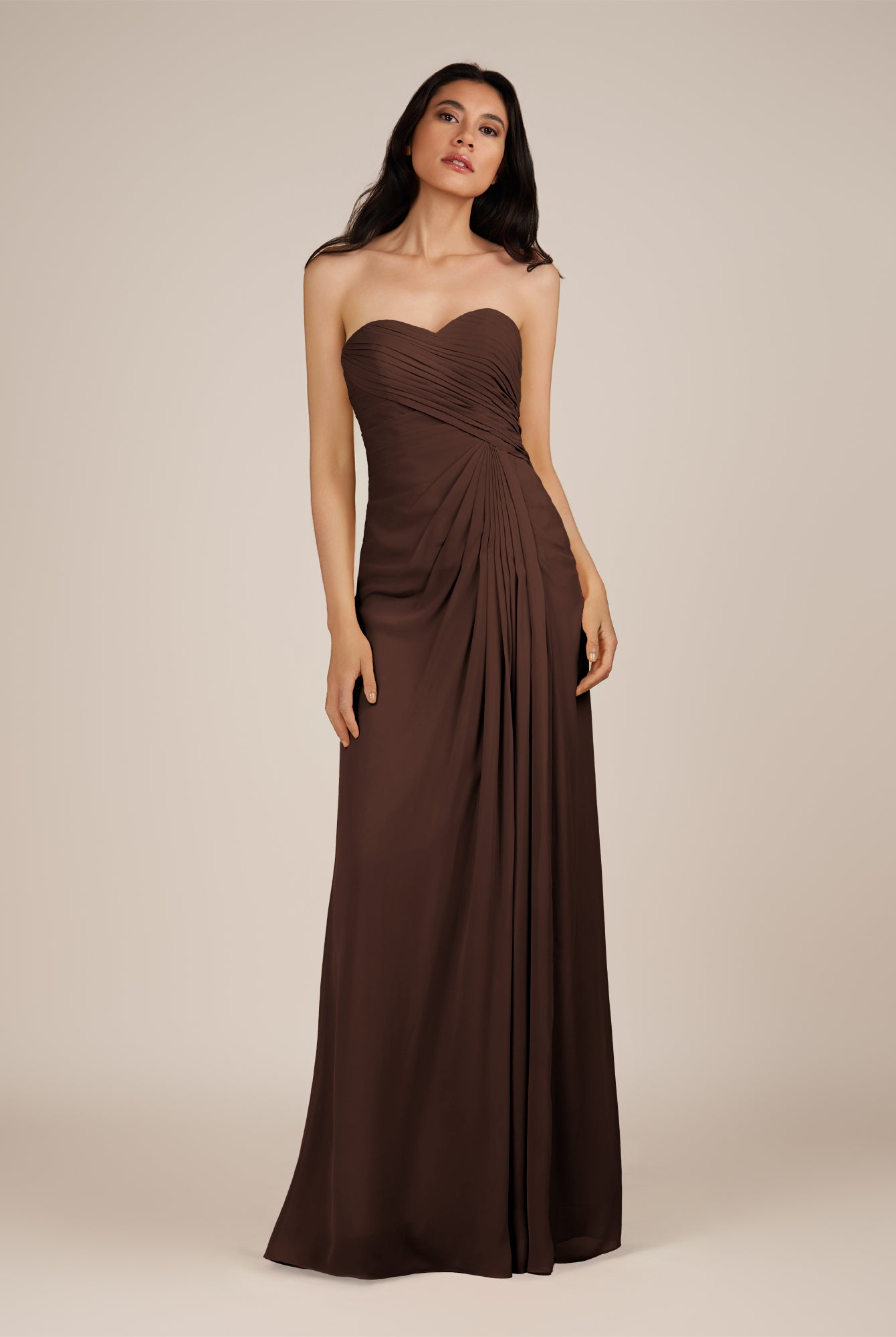 Wanlian | Espresso - A Line Chiffon Sweetheart Long Bridesmaid Dress with Pleats