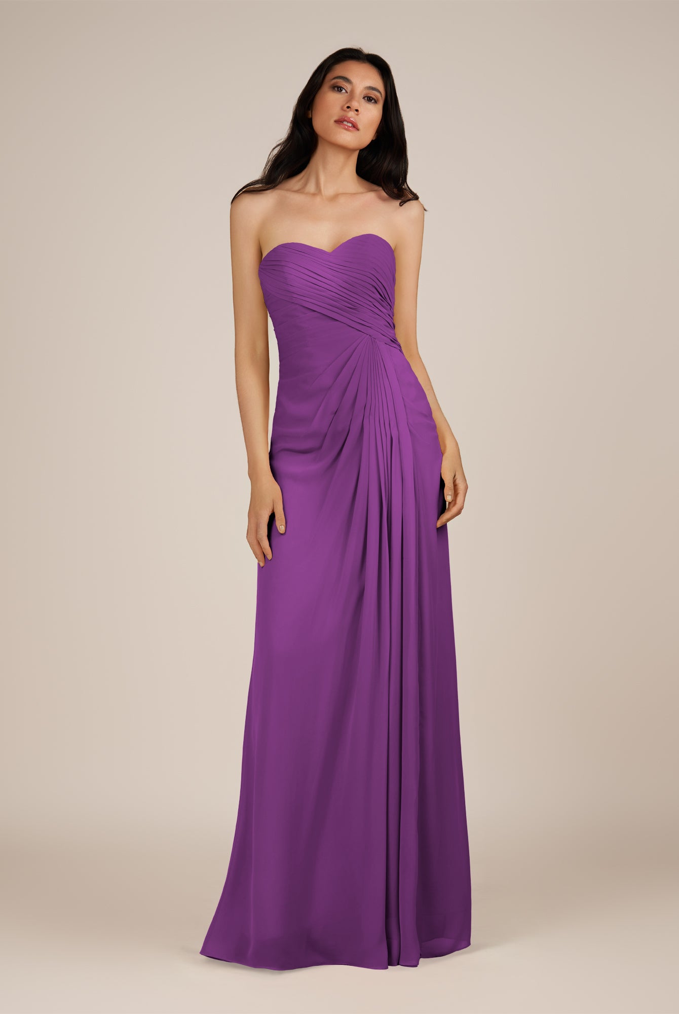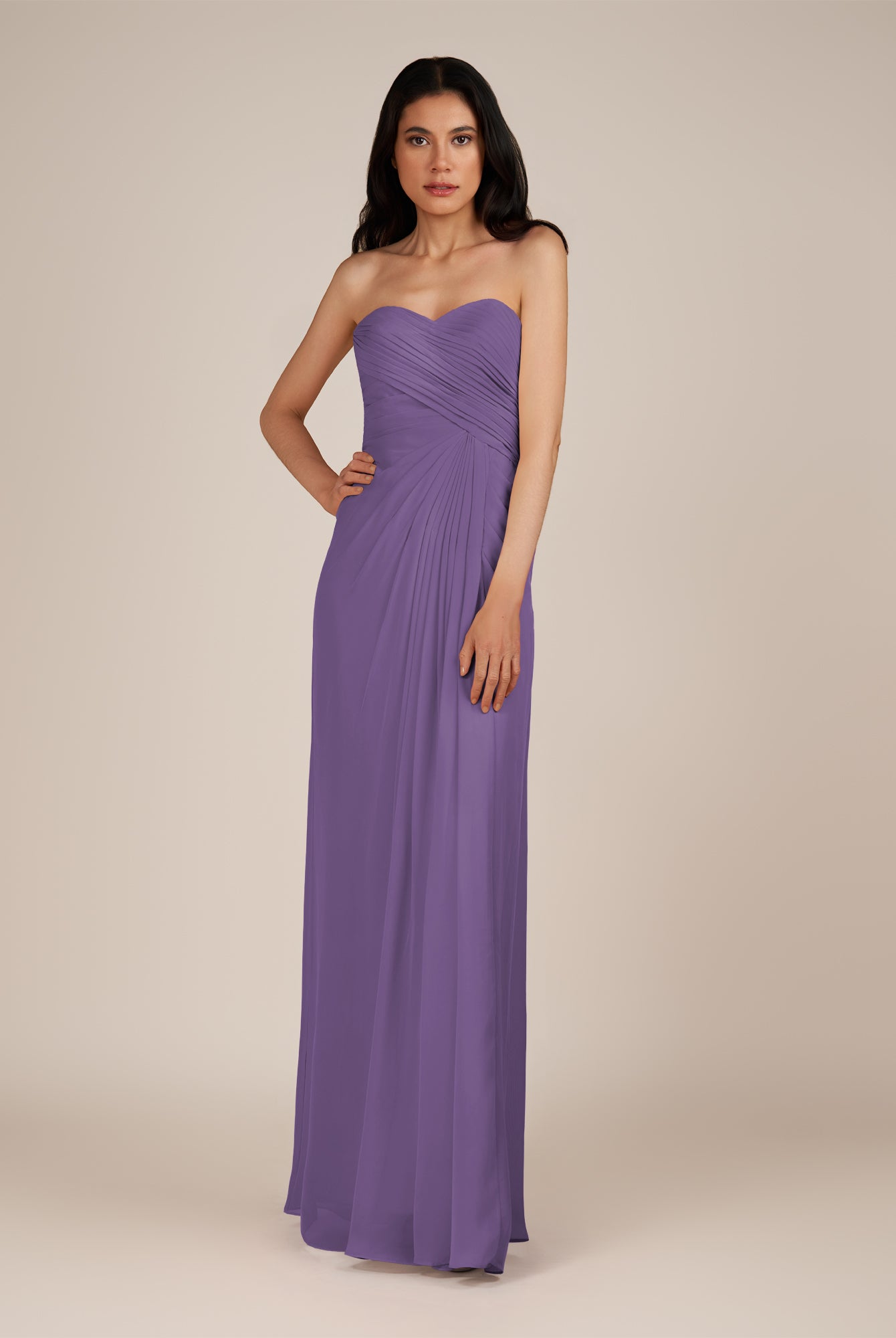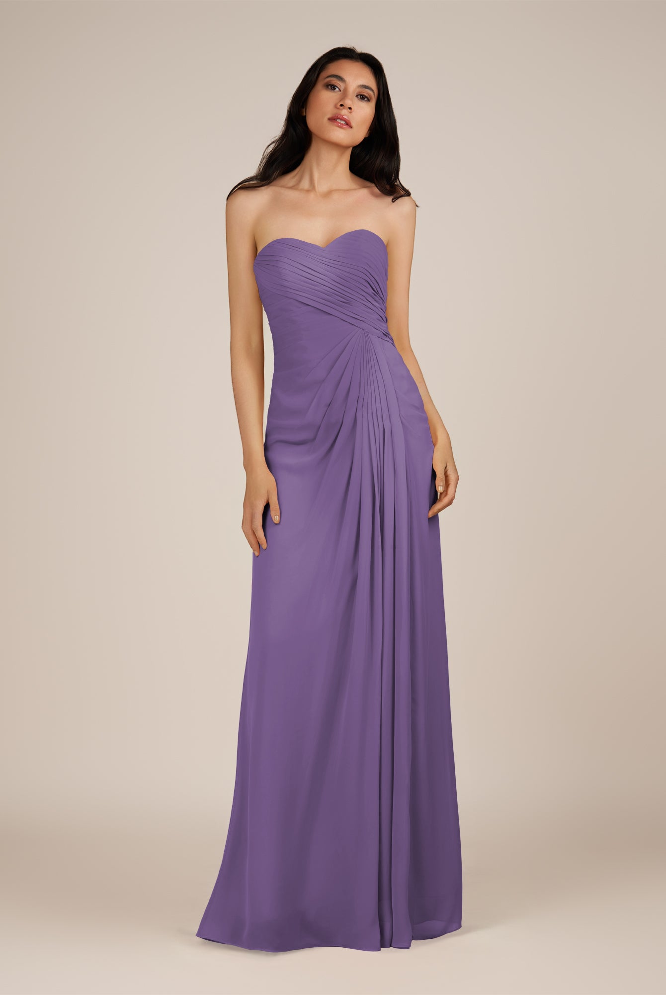 Wanlian | Amethyst - A Line Chiffon Sweetheart Long Bridesmaid Dress with Pleats