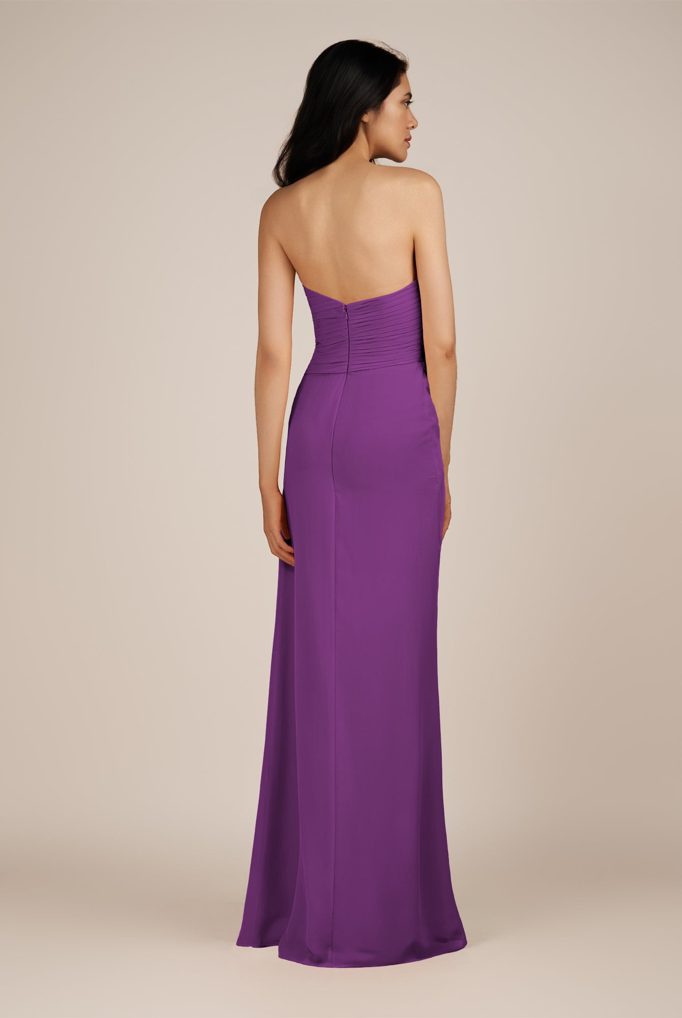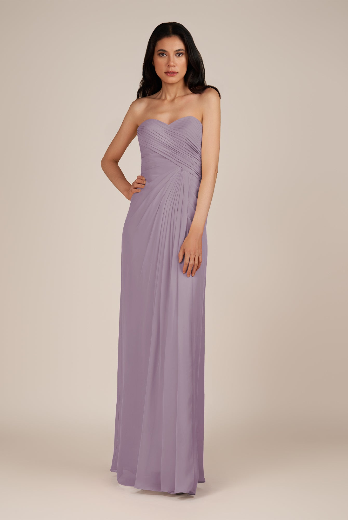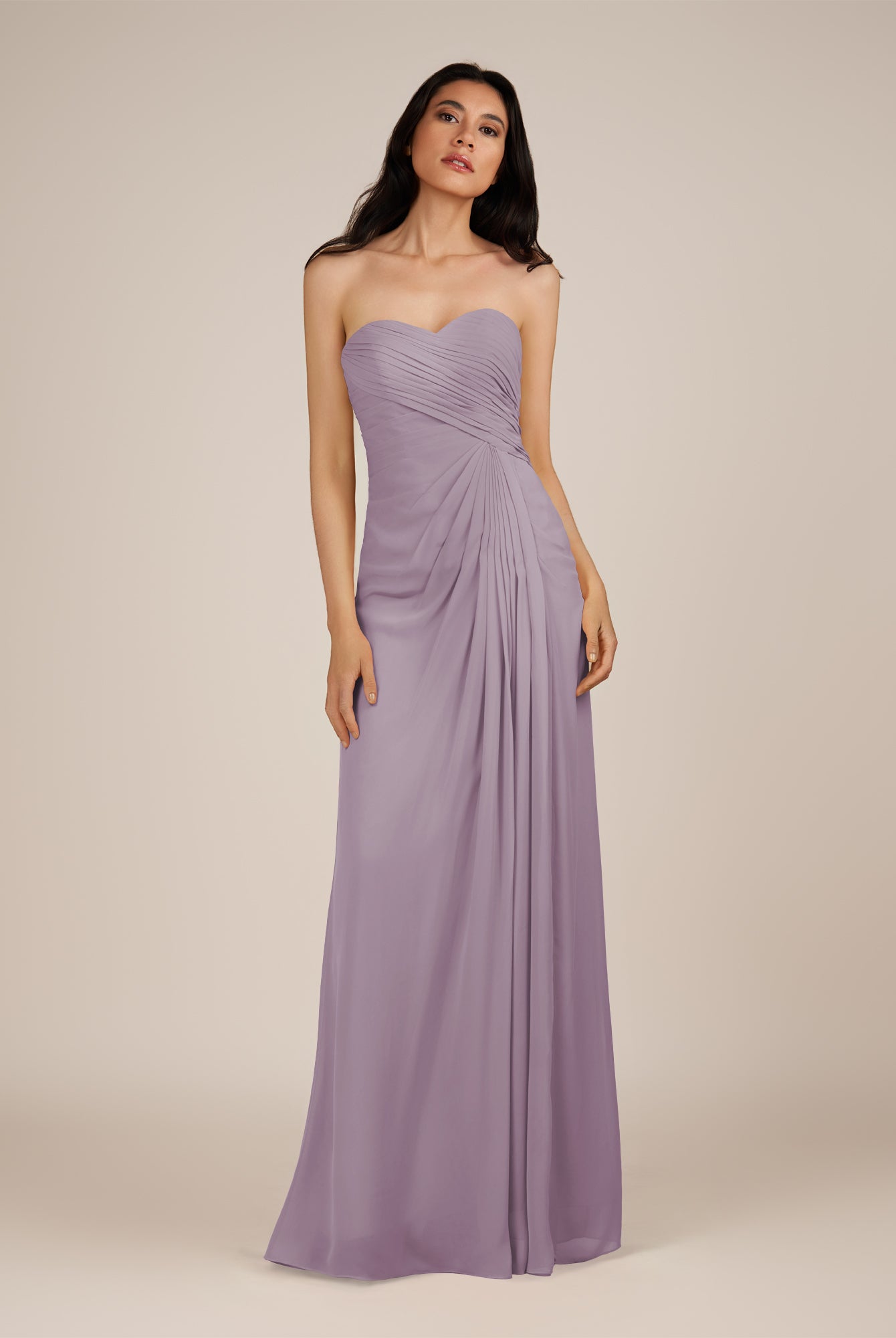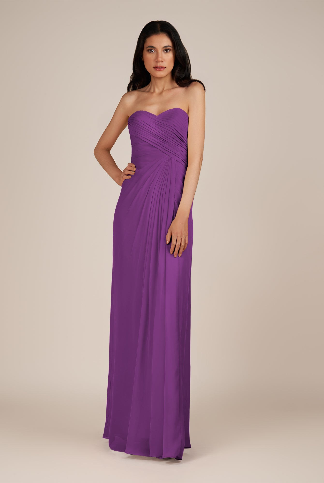 Wanlian | Amethyst - A Line Chiffon Sweetheart Long Bridesmaid Dress with Pleats