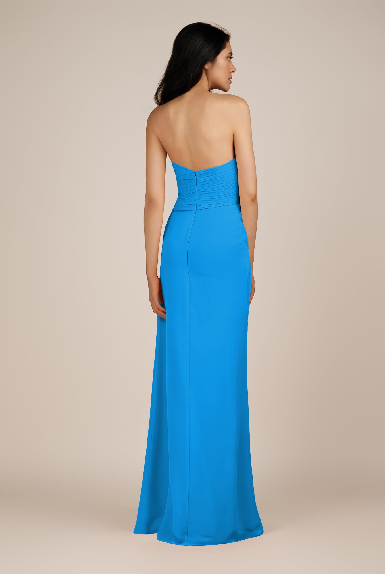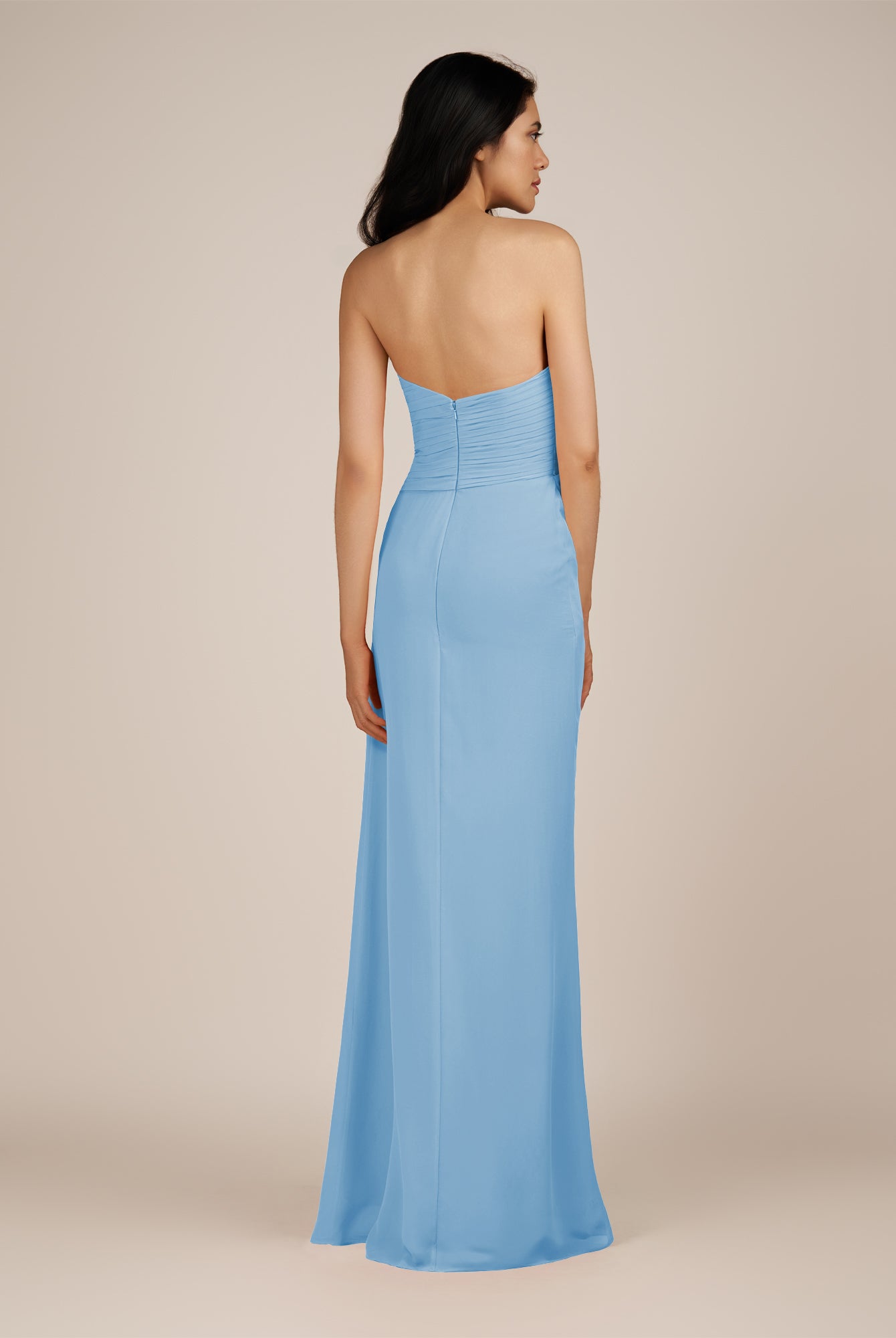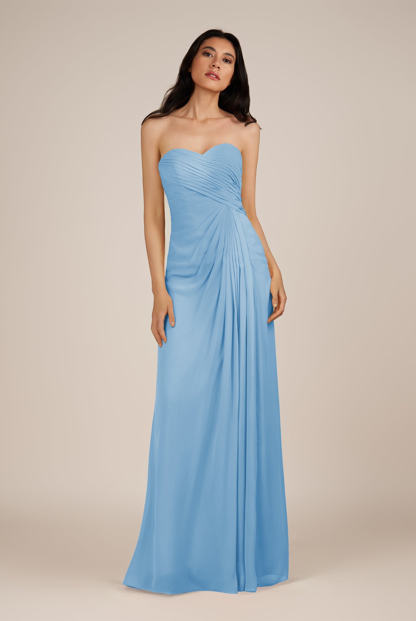 Wanlian | Blue Jay - A Line Chiffon Sweetheart Long Bridesmaid Dress with Pleats
