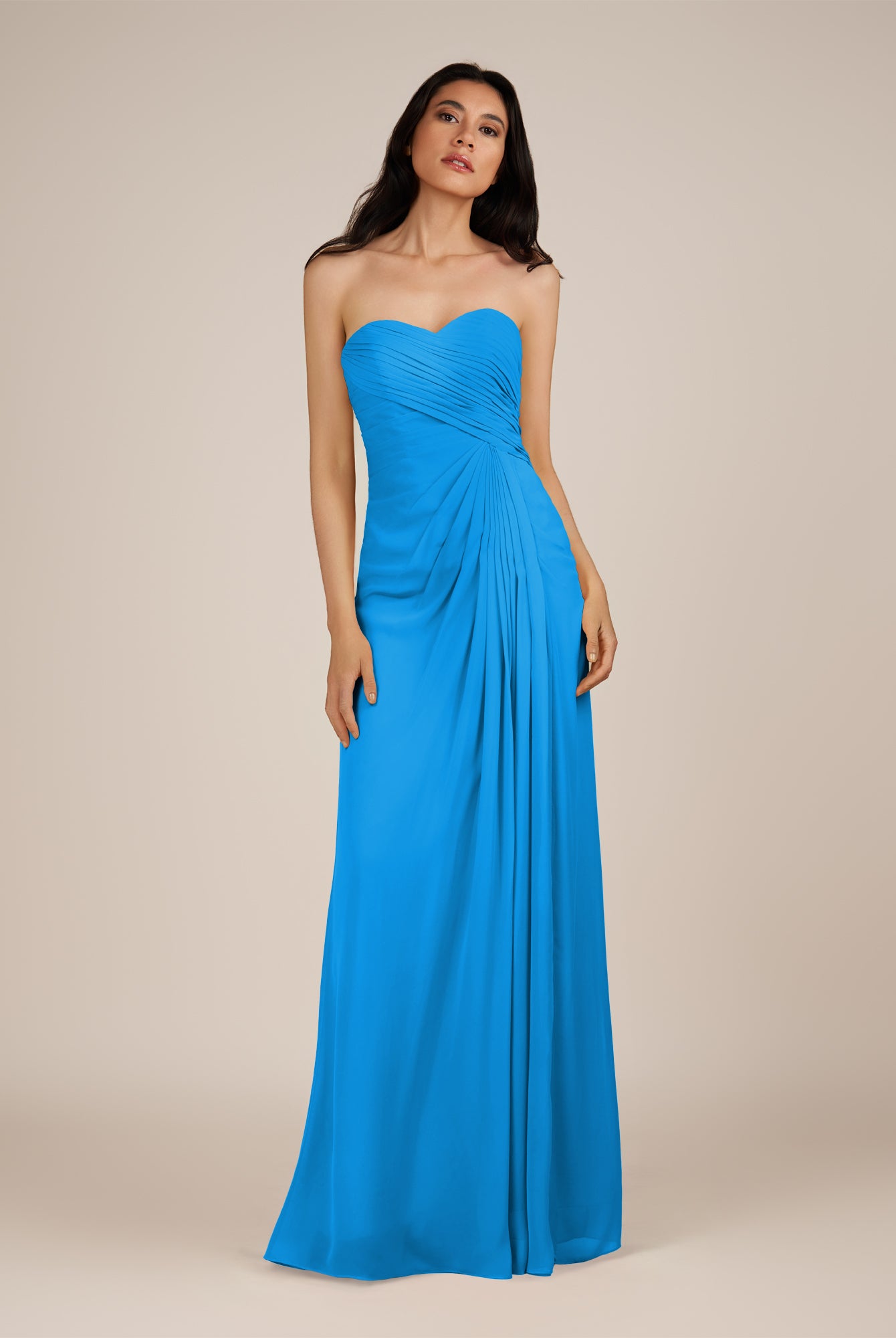 Wanlian | Neptune - A Line Chiffon Sweetheart Long Bridesmaid Dress with Pleats