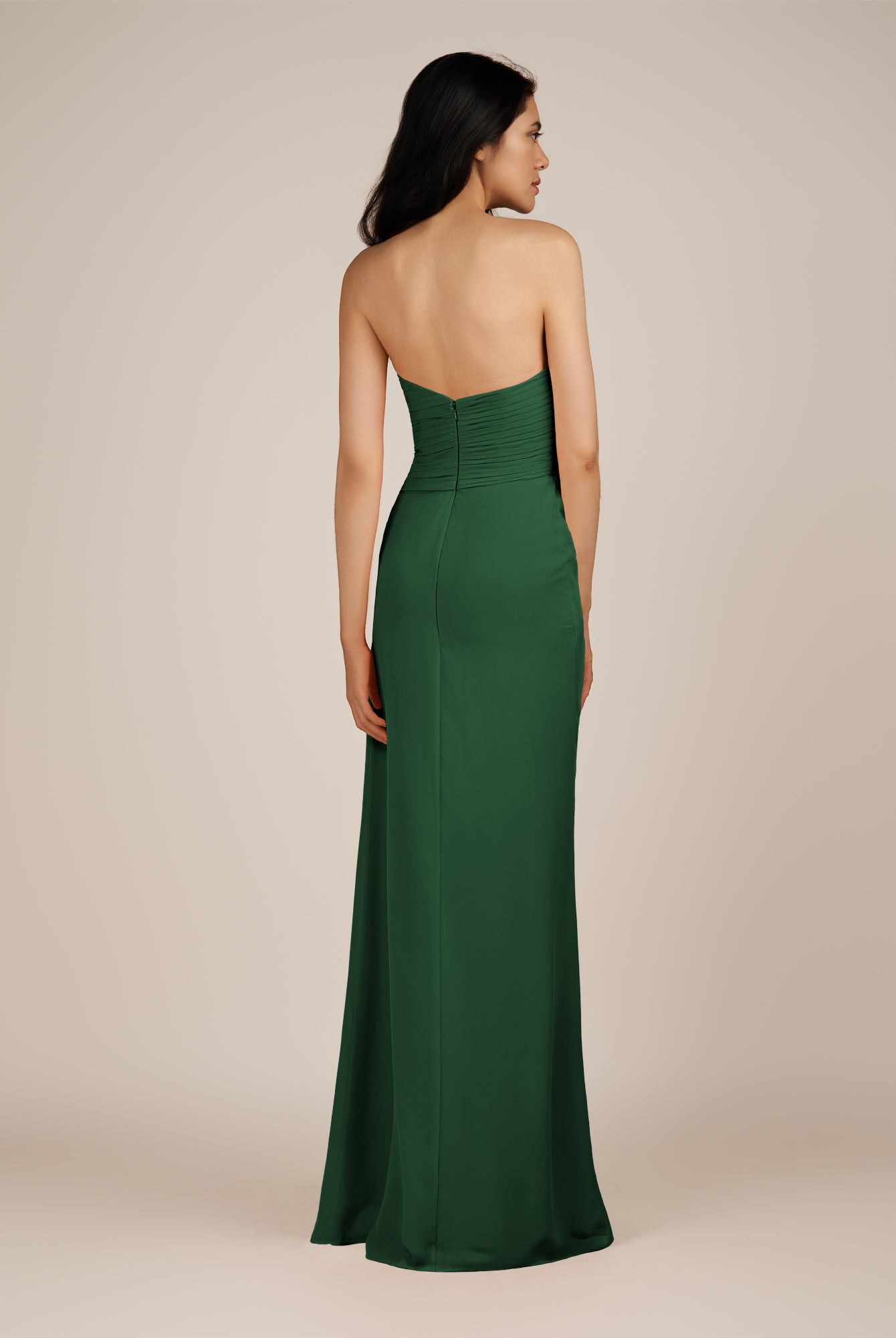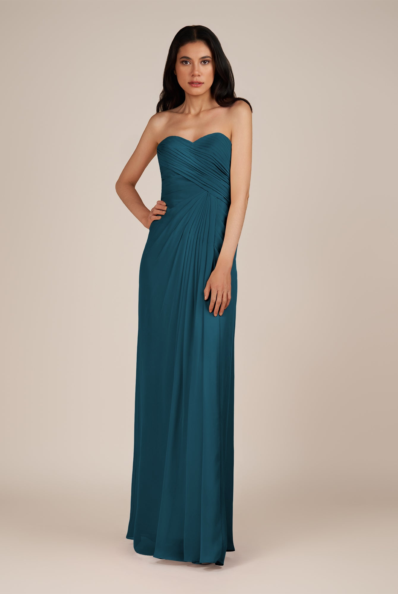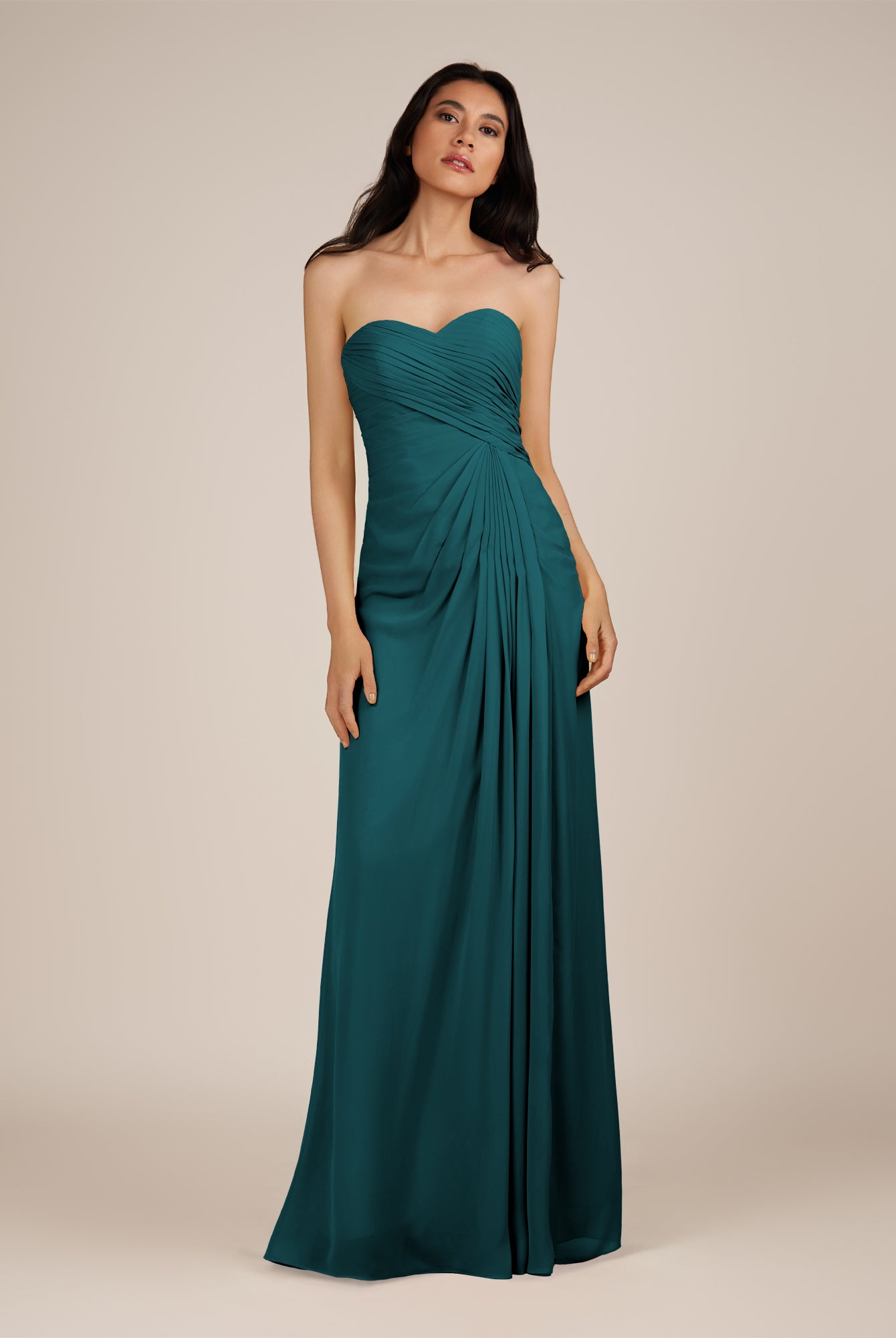Wanlian | Pine - A Line Chiffon Sweetheart Long Bridesmaid Dress with Pleats