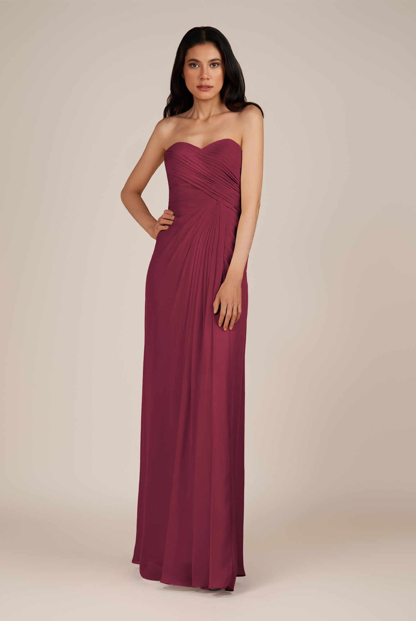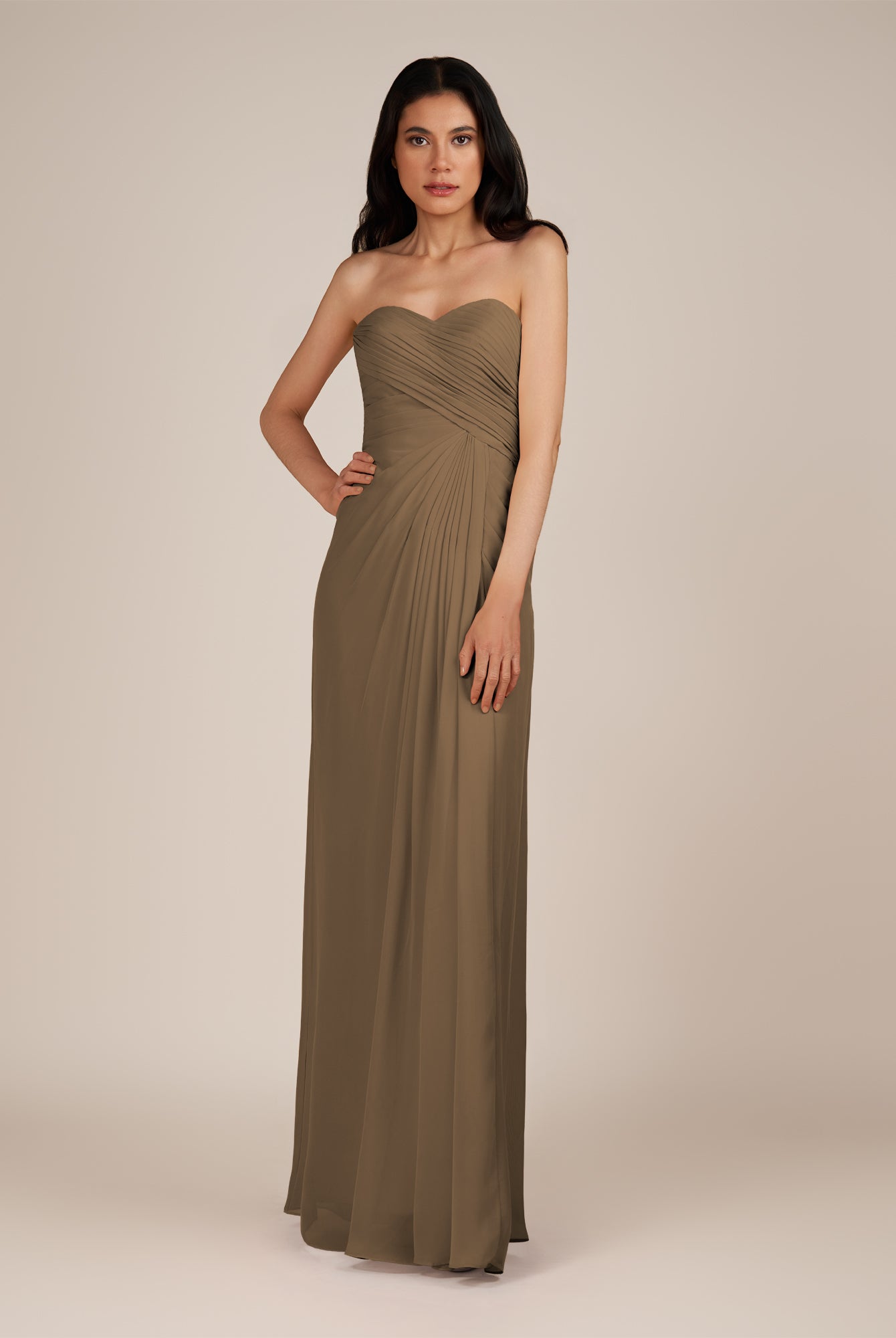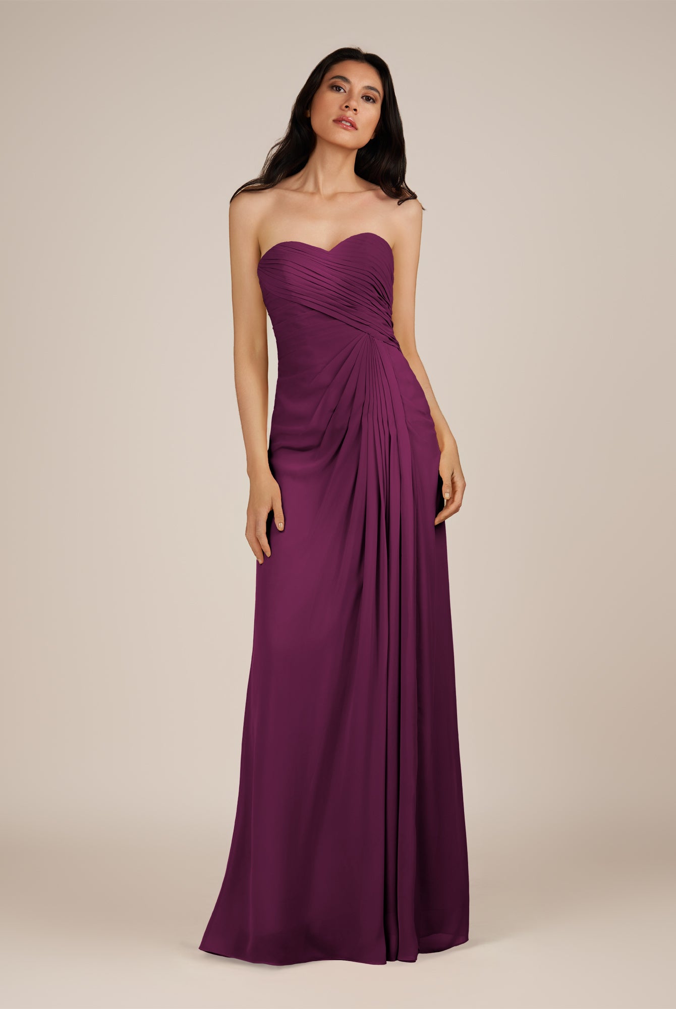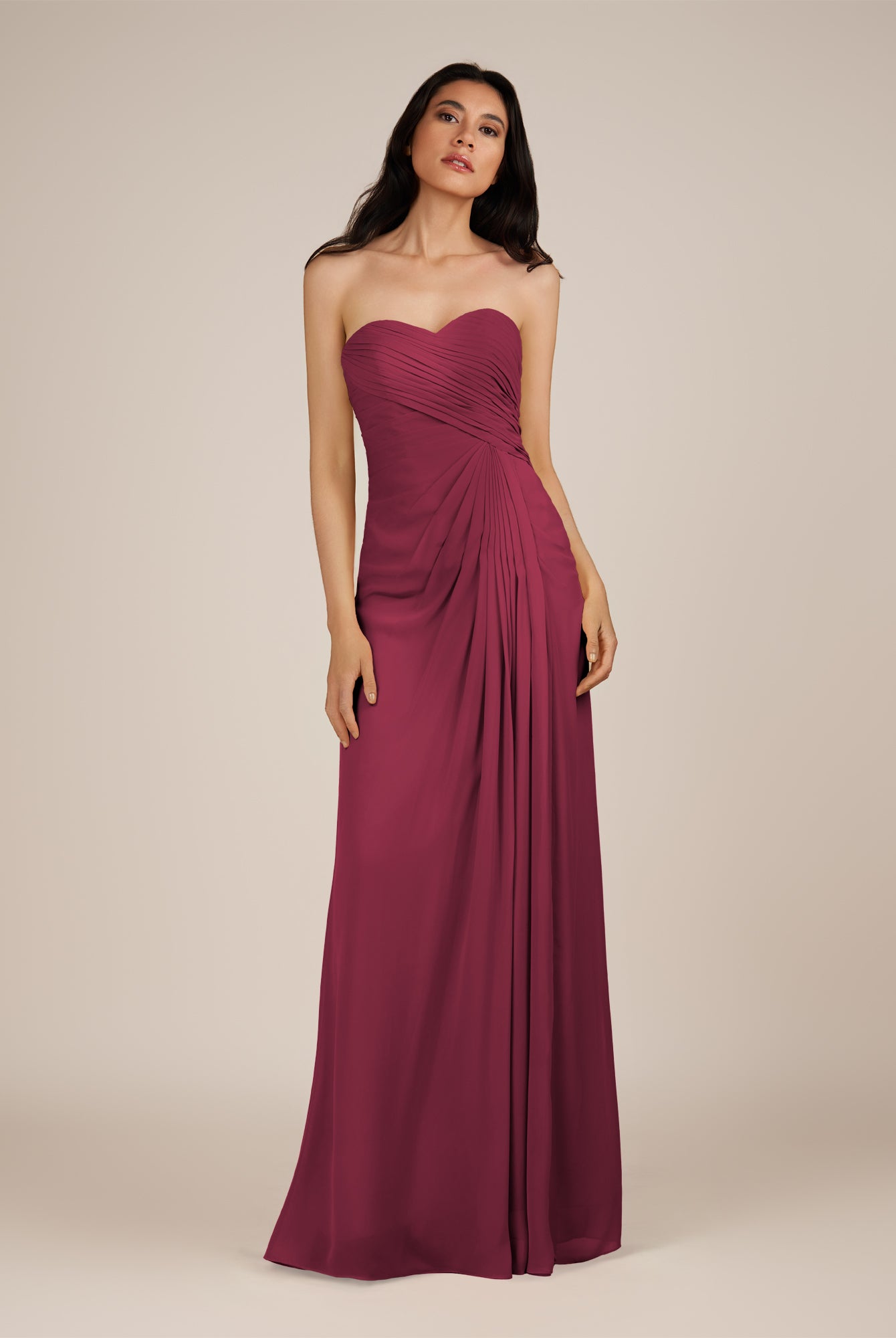 Wanlian | Fig - A Line Chiffon Sweetheart Long Bridesmaid Dress with Pleats