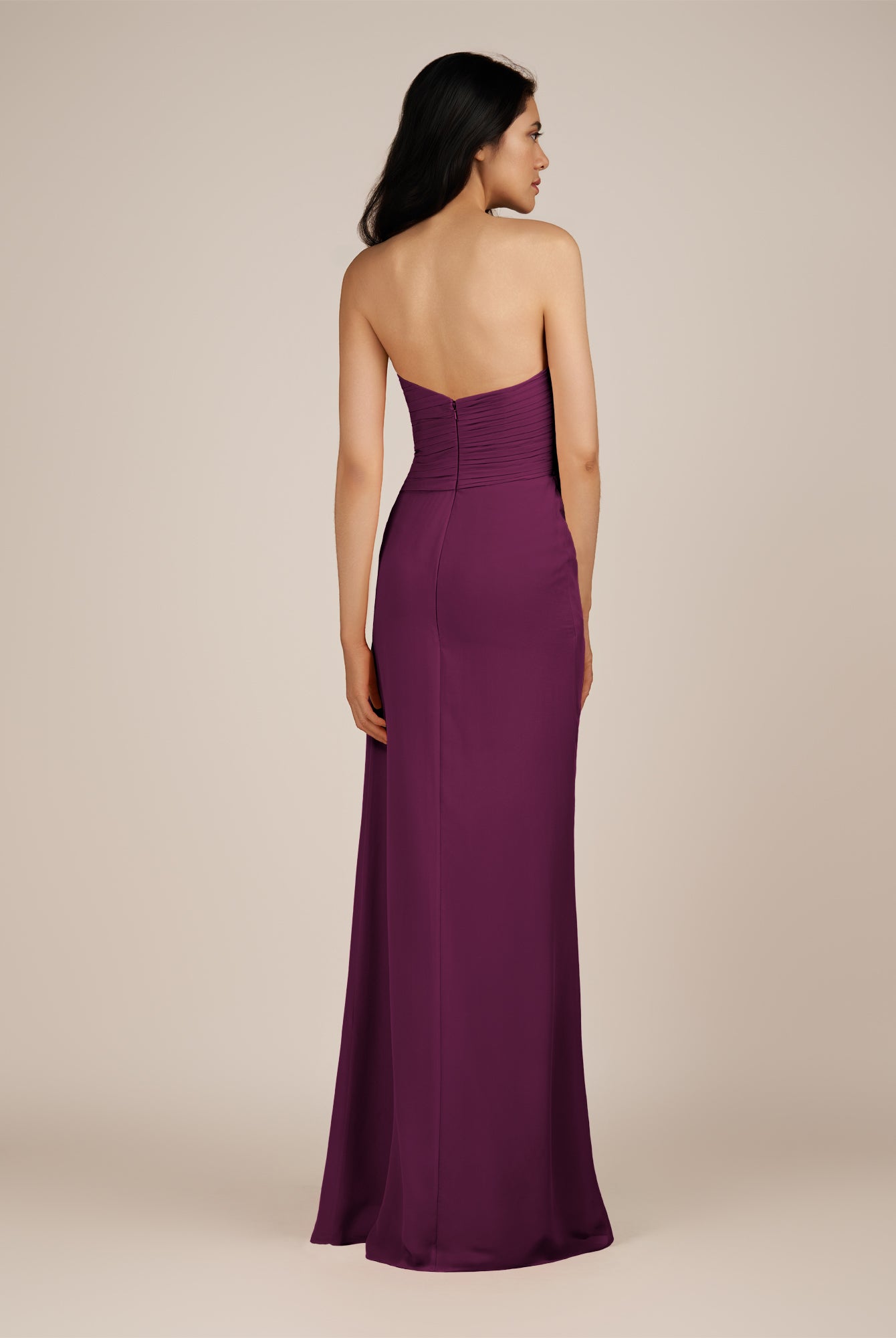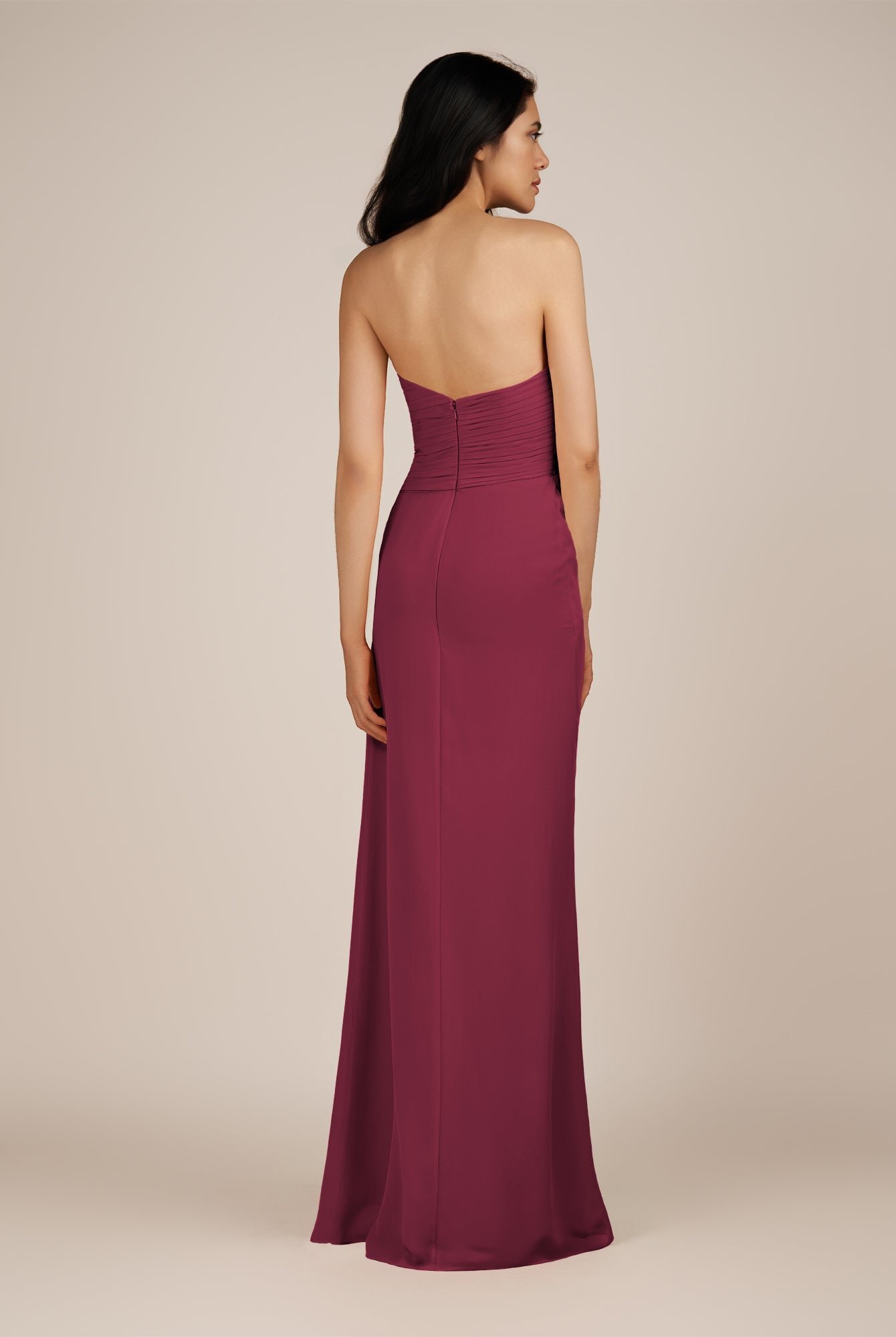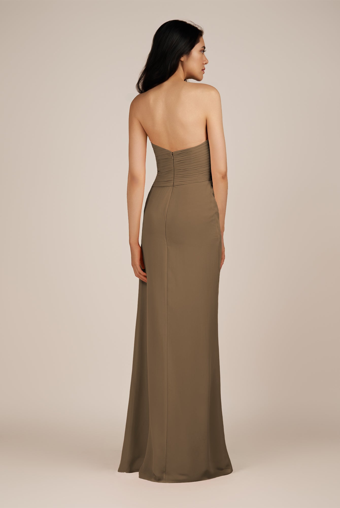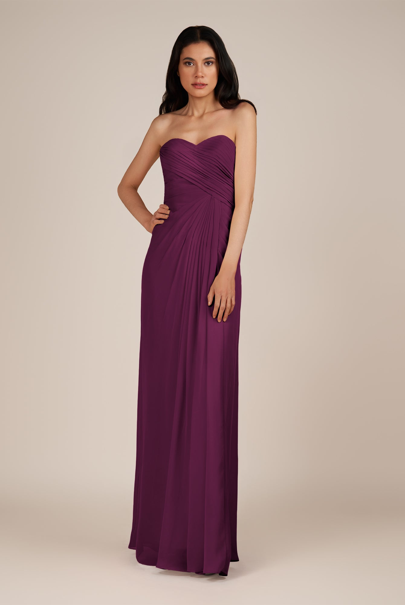 Wanlian | Fig - A Line Chiffon Sweetheart Long Bridesmaid Dress with Pleats