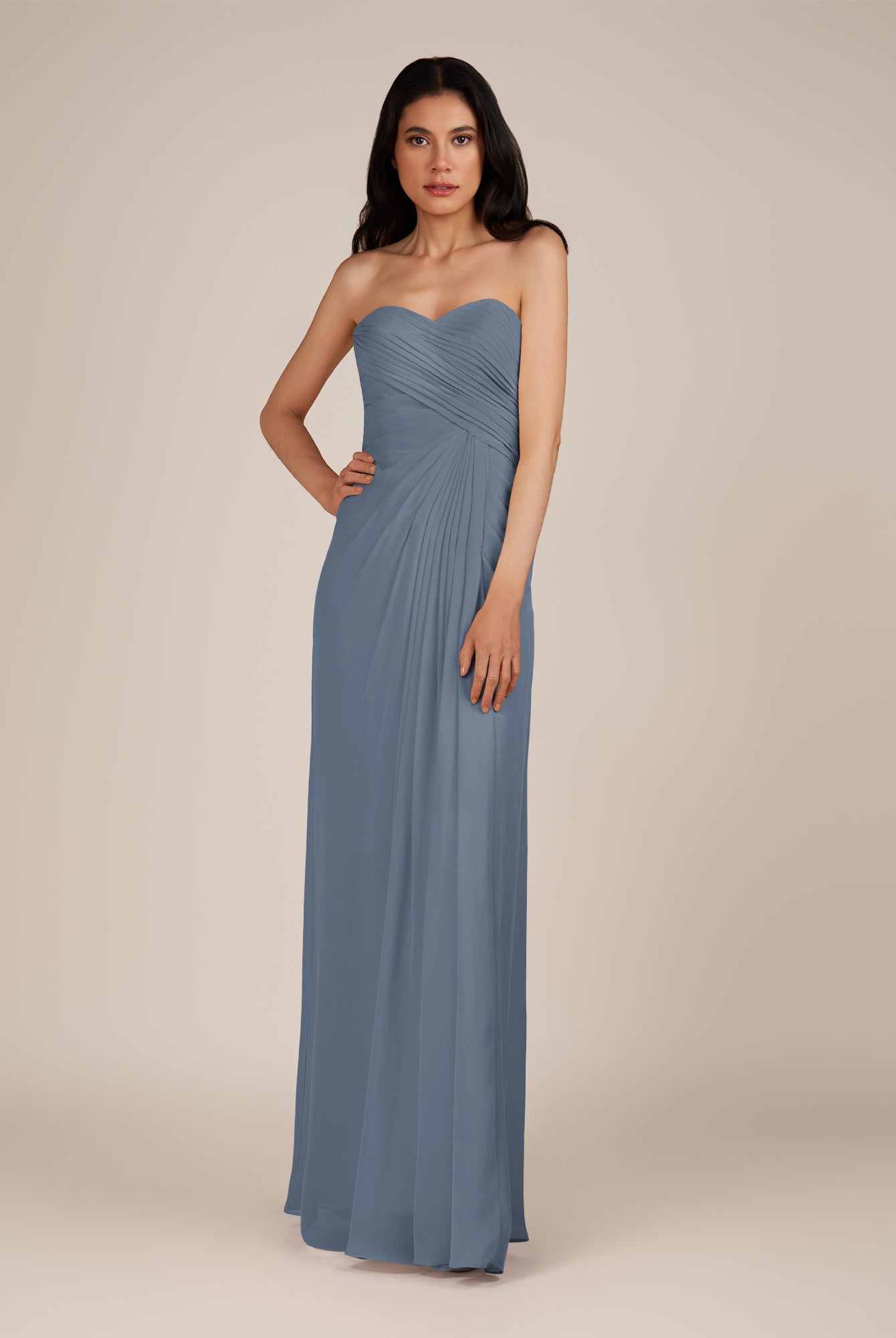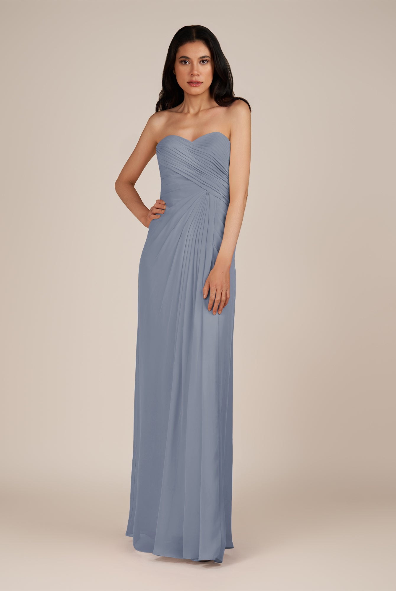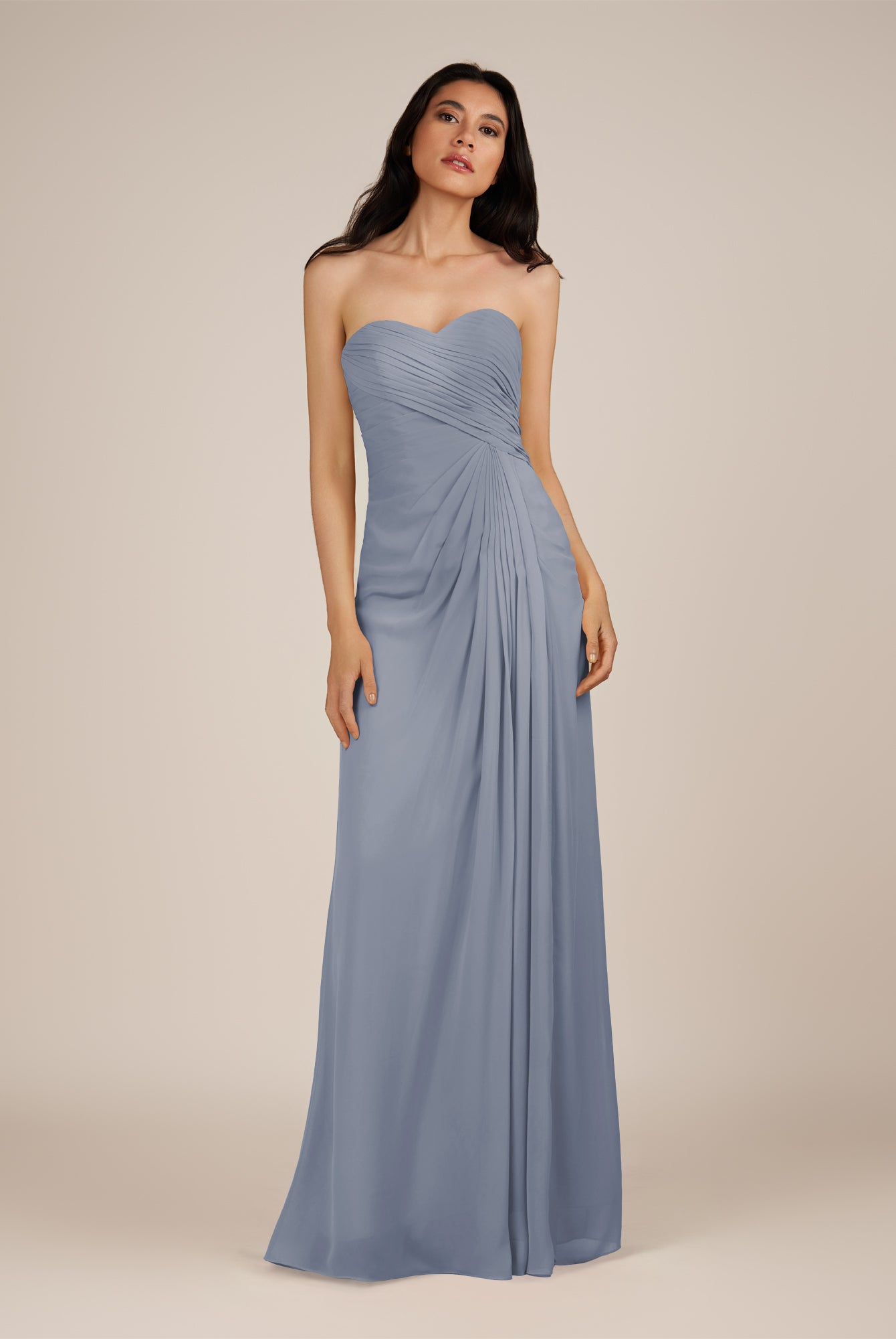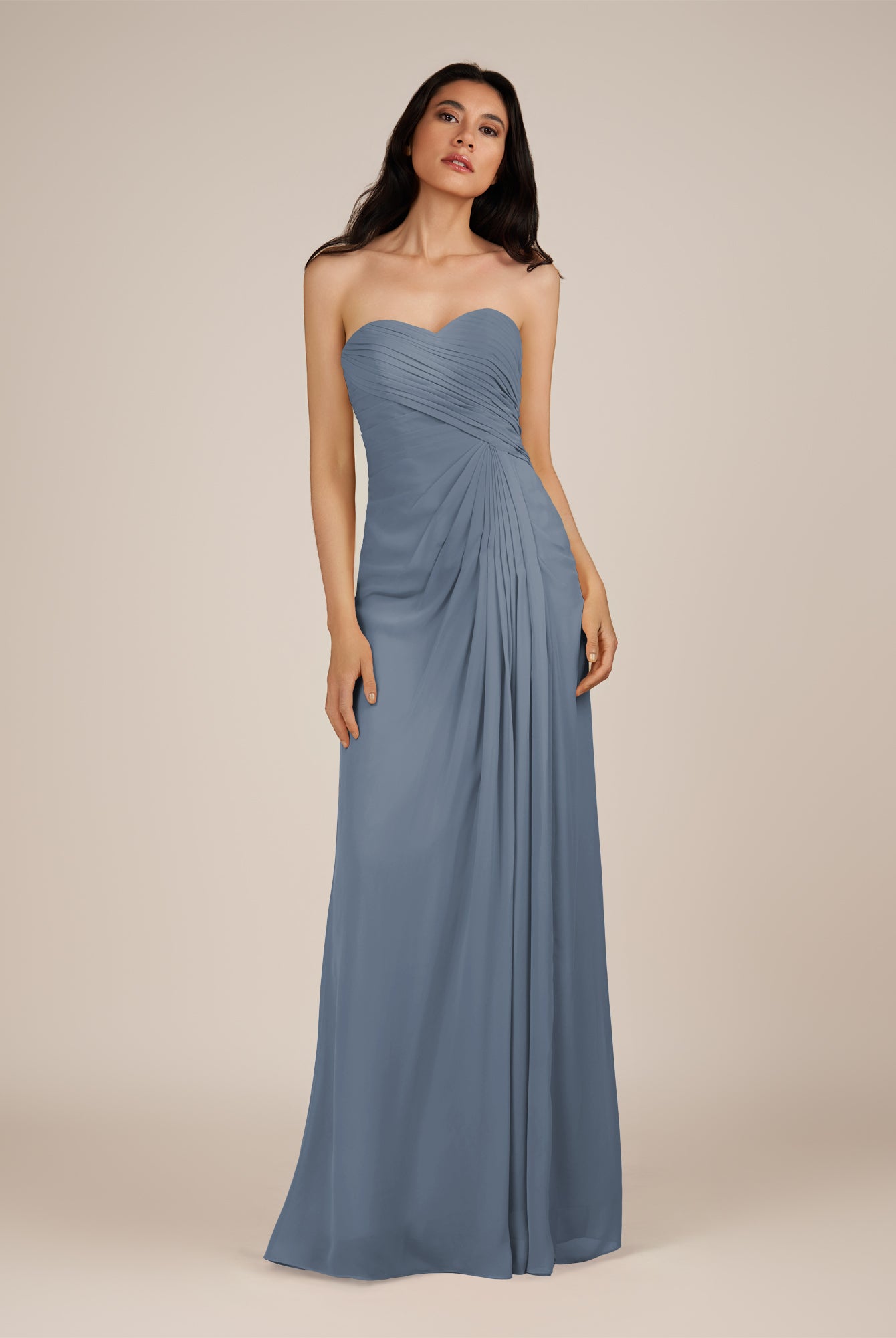 Wanlian | Dusk Blue - A Line Chiffon Sweetheart Long Bridesmaid Dress with Pleats