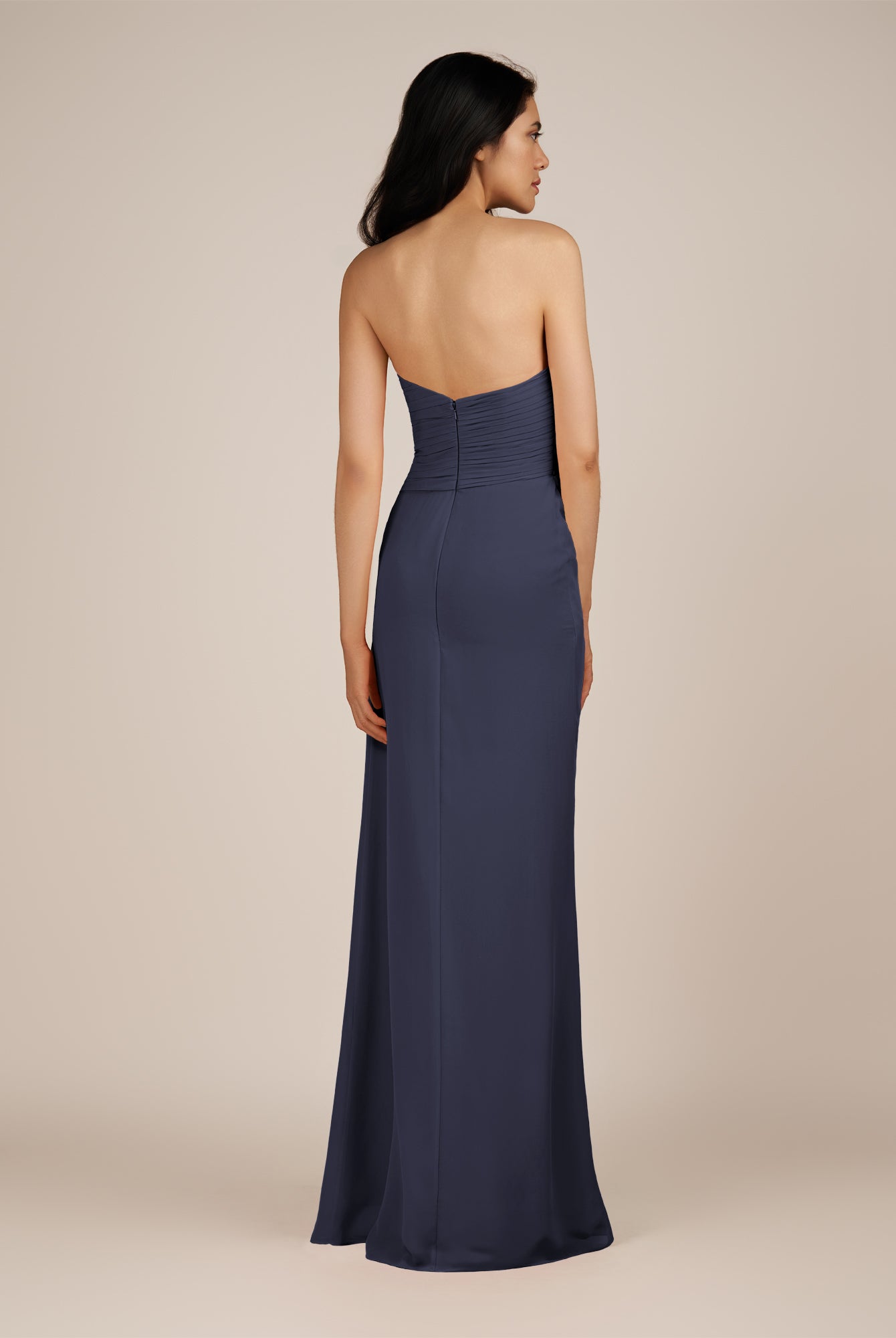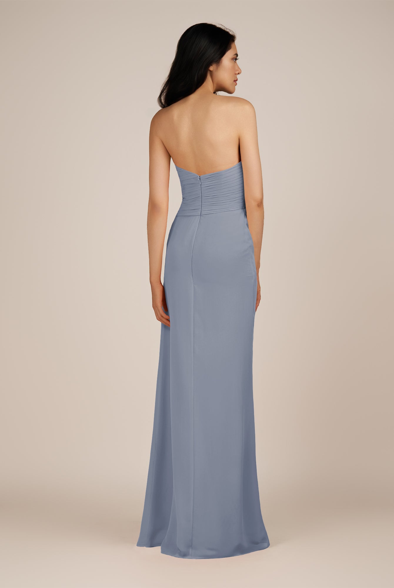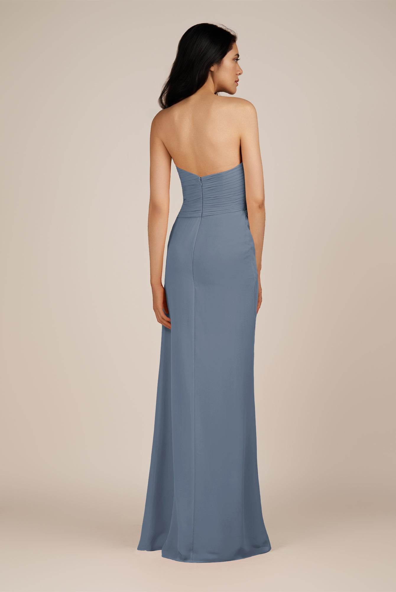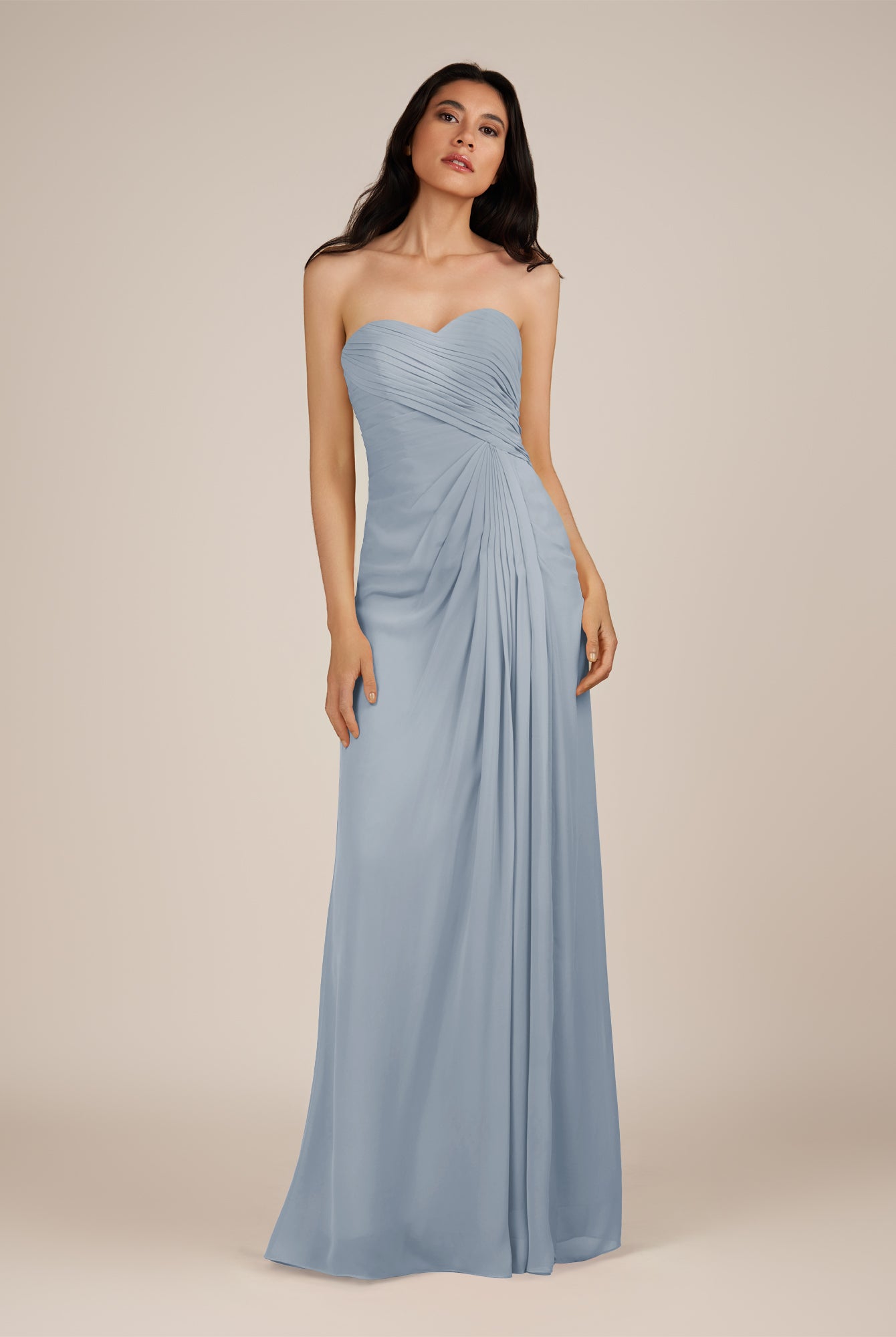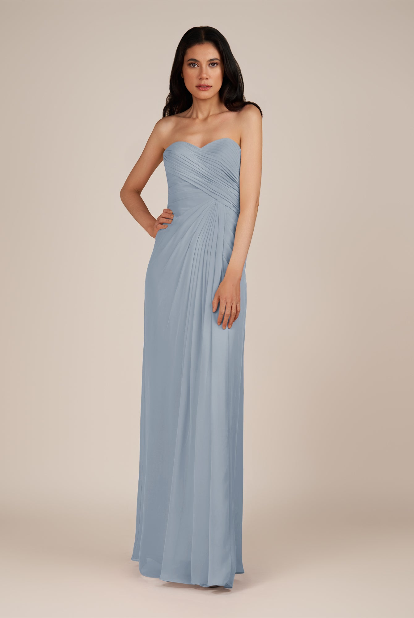 Wanlian | Dusk Blue - A Line Chiffon Sweetheart Long Bridesmaid Dress with Pleats