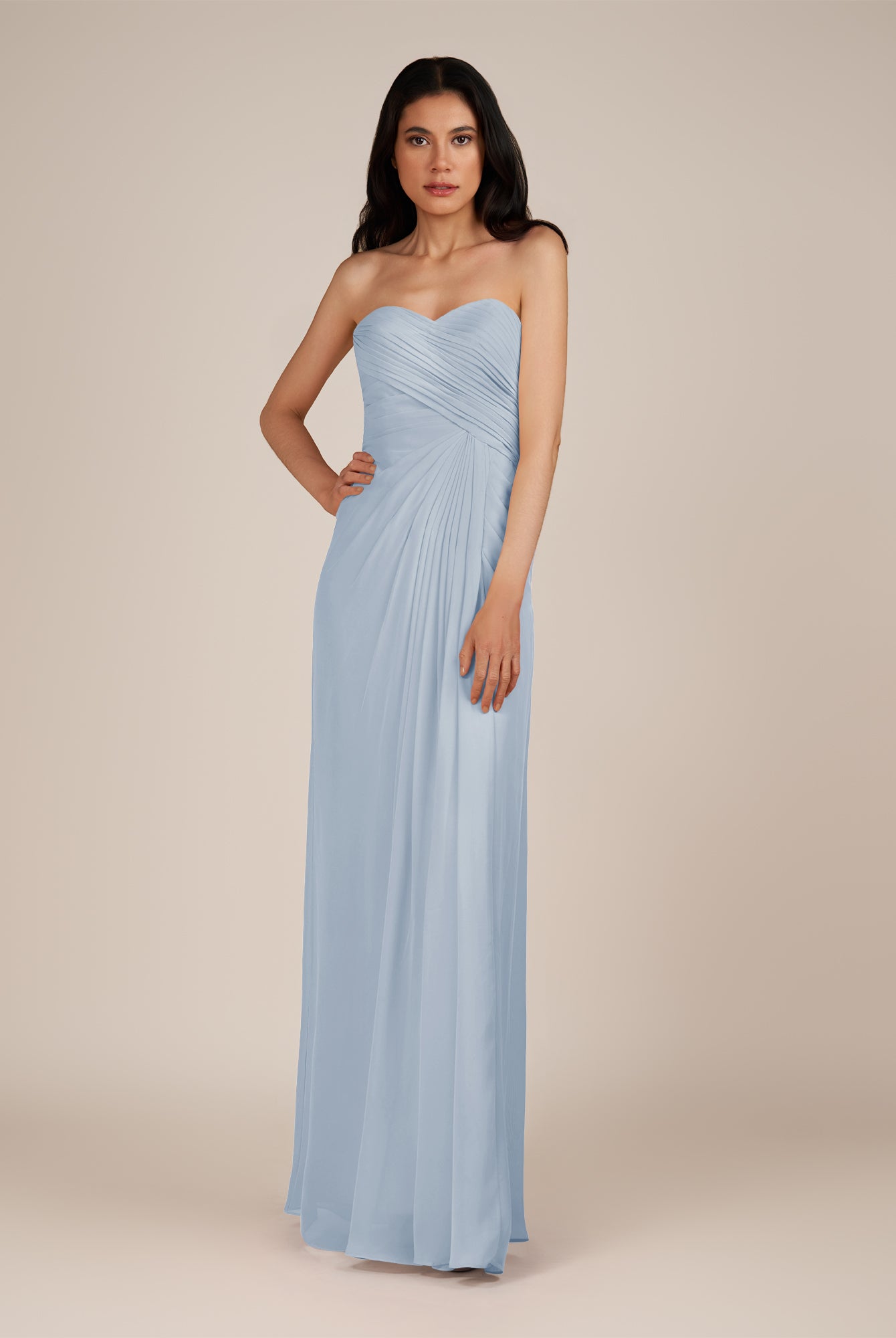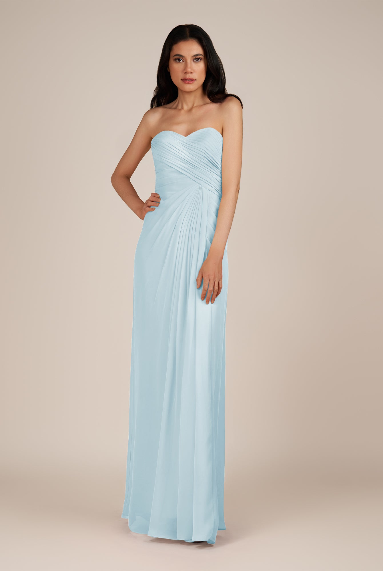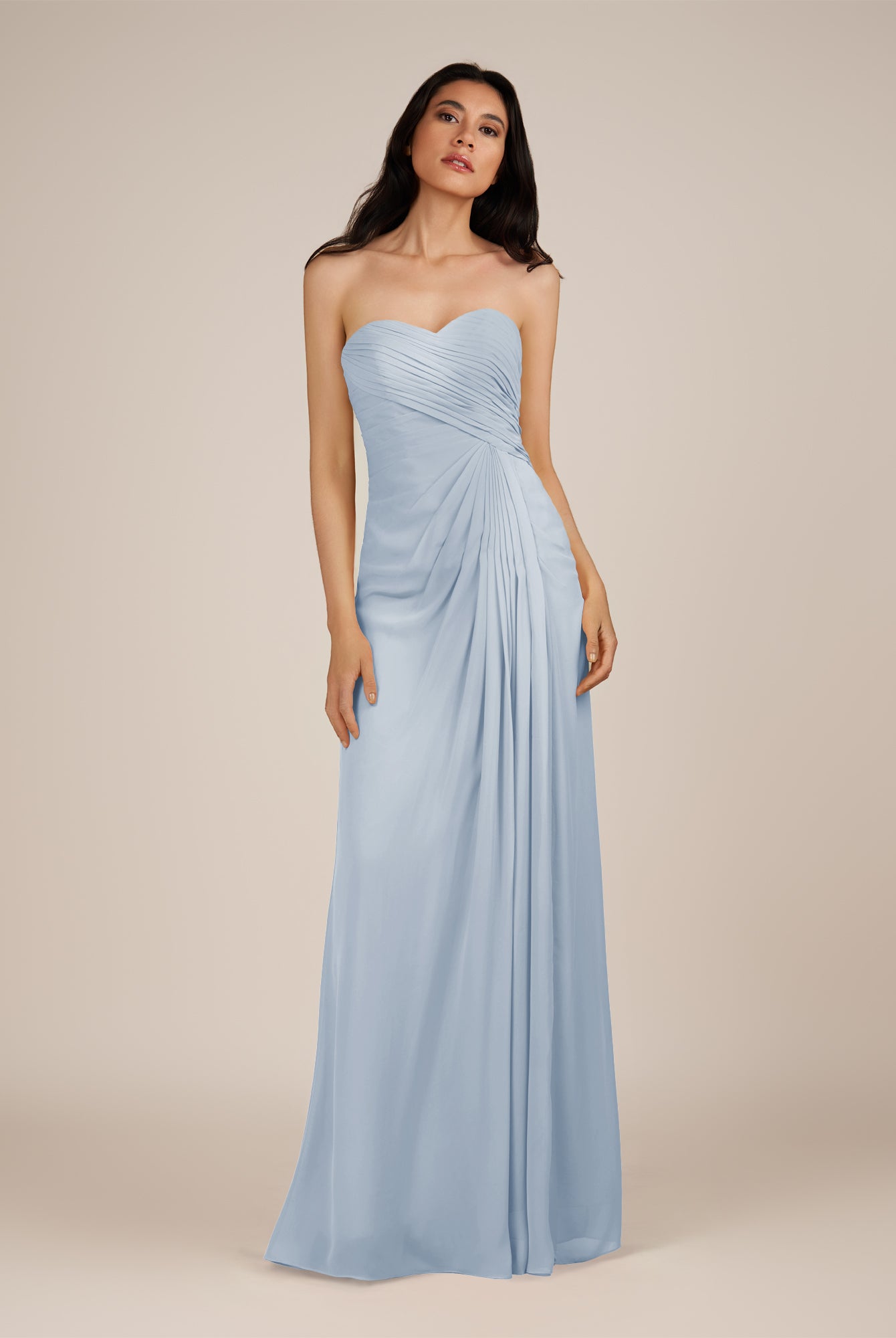 Wanlian | Tahiti - A Line Chiffon Sweetheart Long Bridesmaid Dress with Pleats