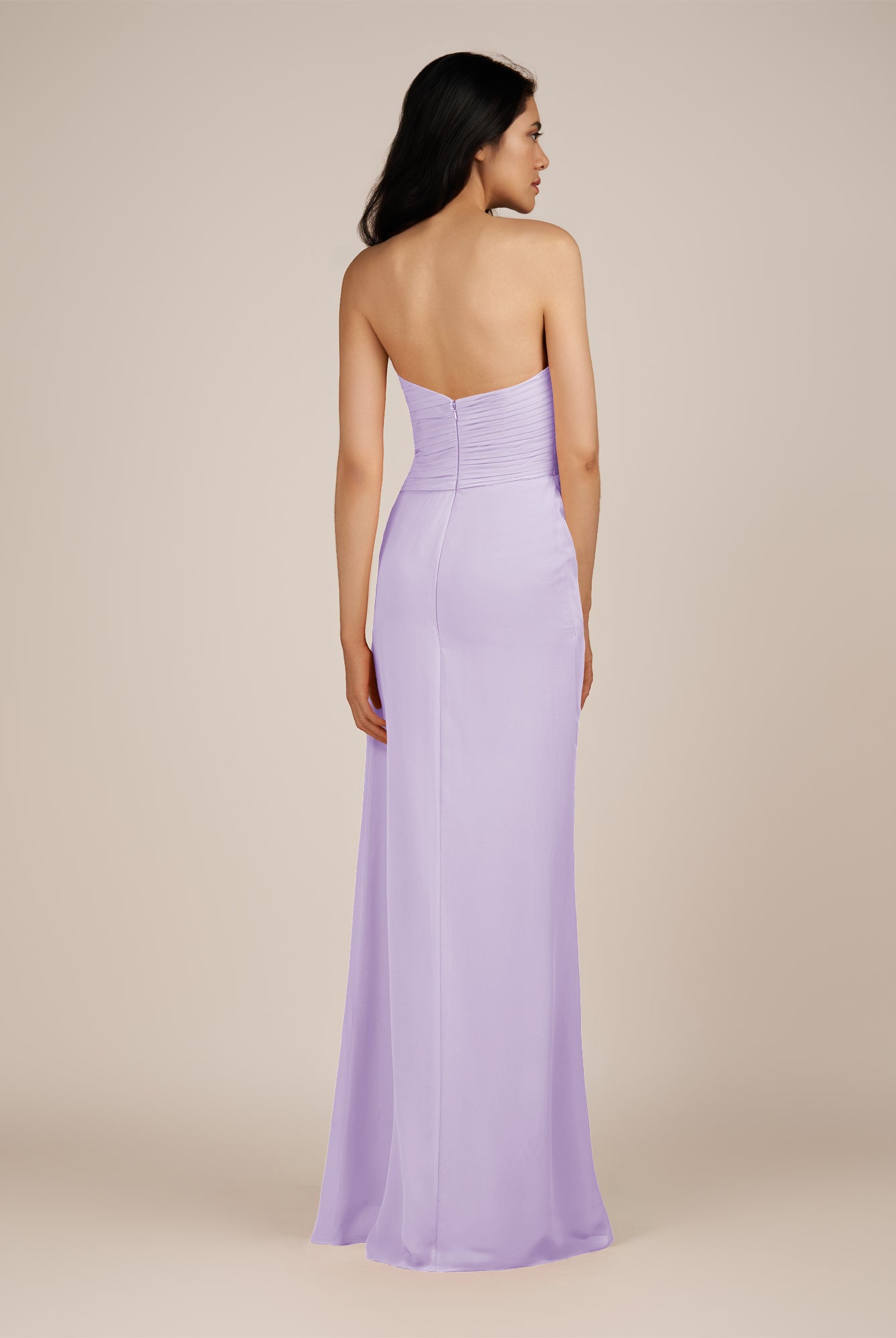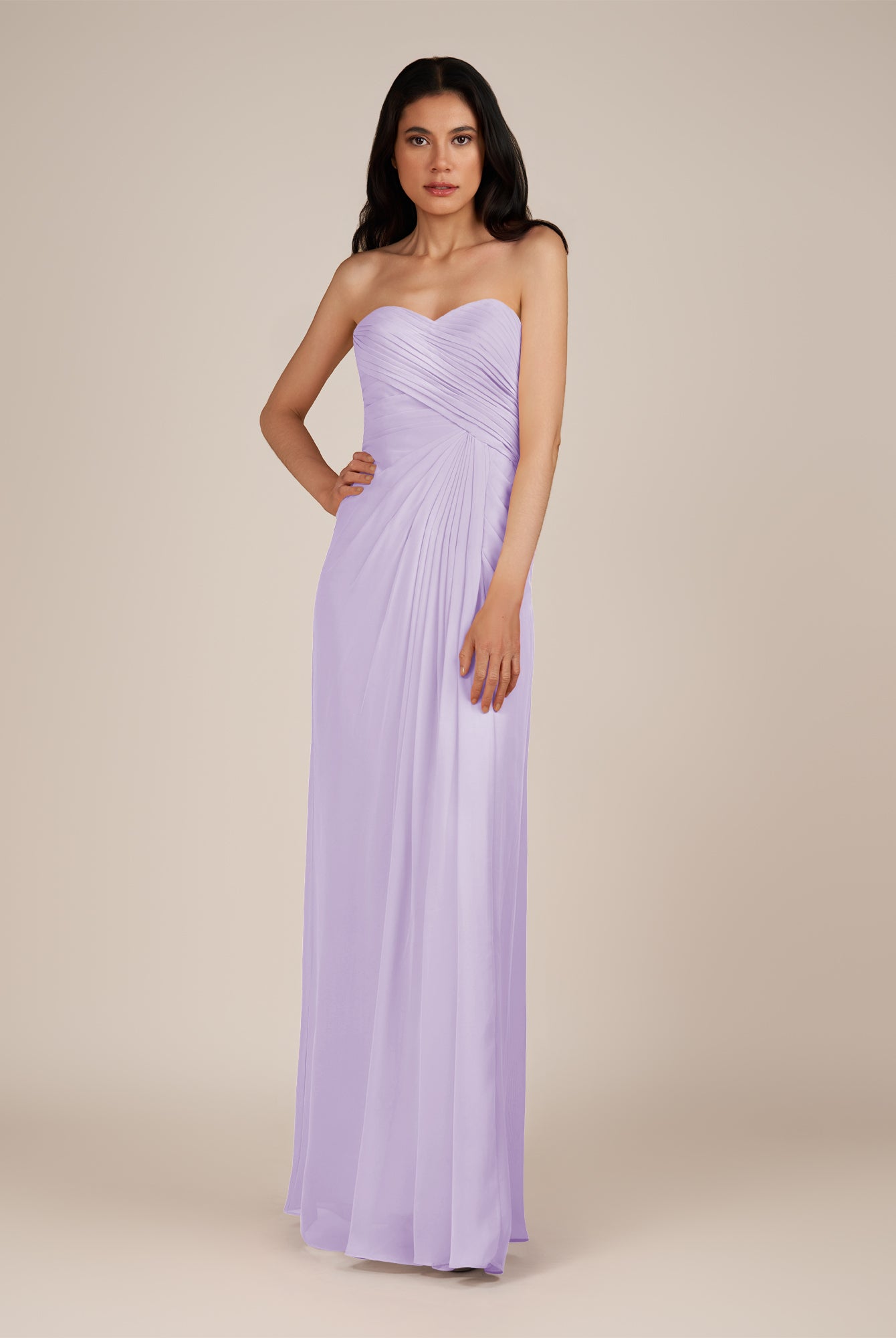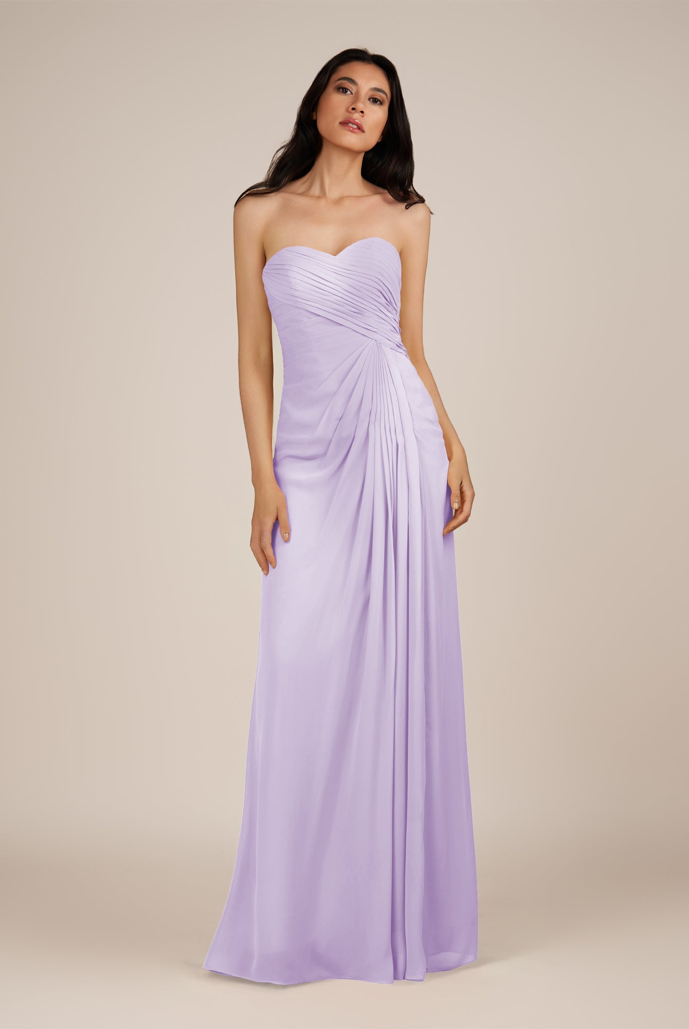 Wanlian | Lavender - A Line Chiffon Sweetheart Long Bridesmaid Dress with Pleats