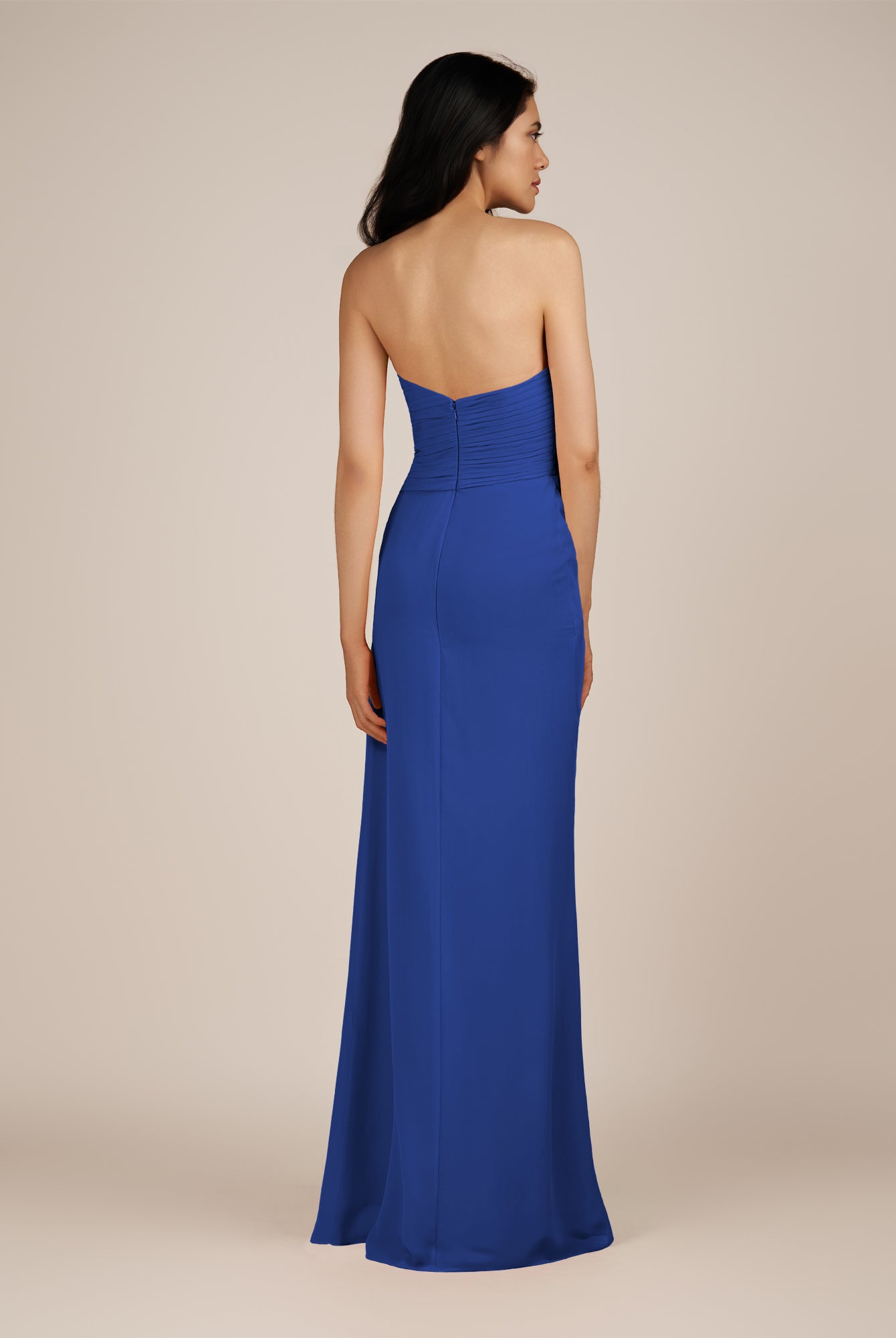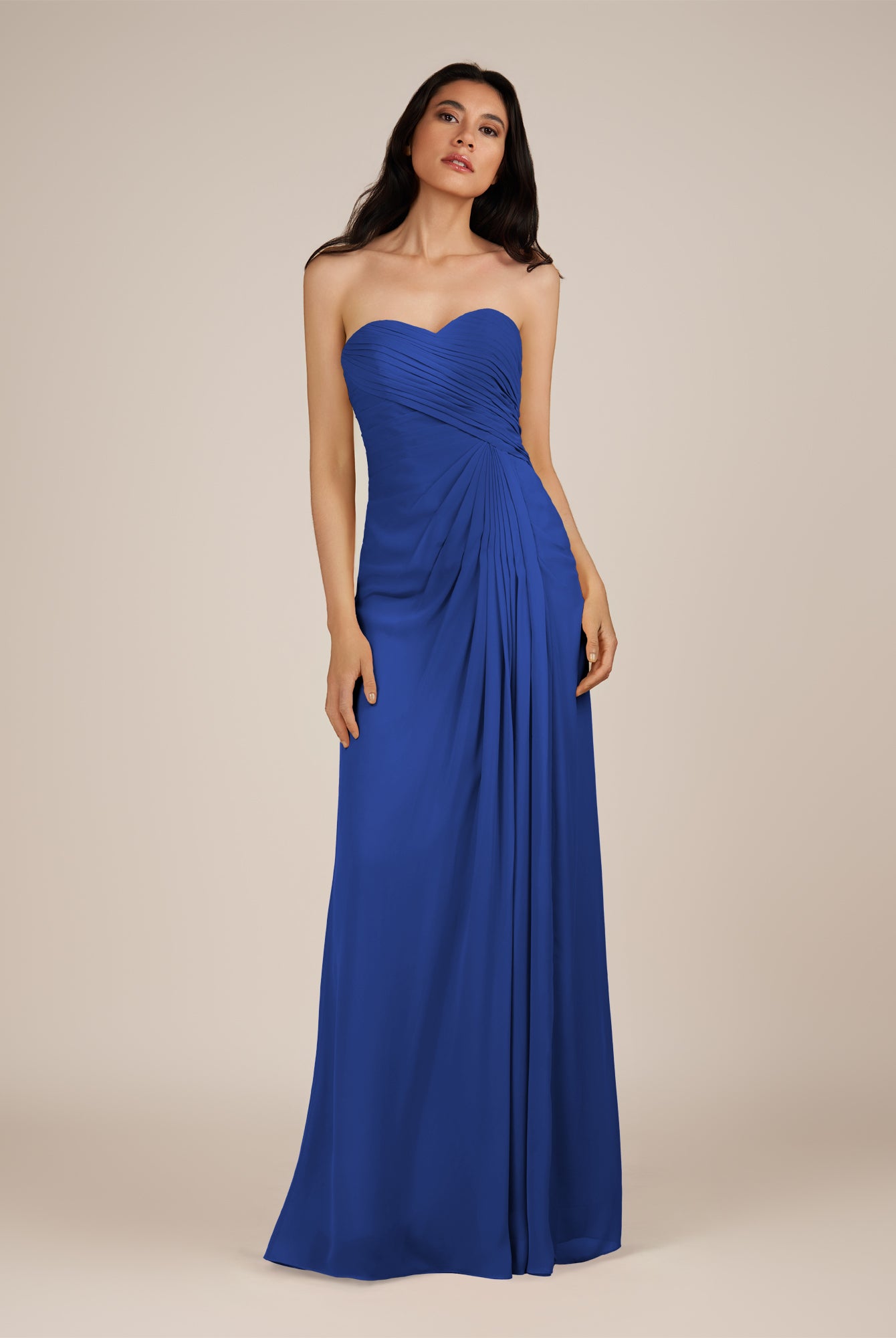 Wanlian | Royal Blue - A Line Chiffon Sweetheart Long Bridesmaid Dress with Pleats