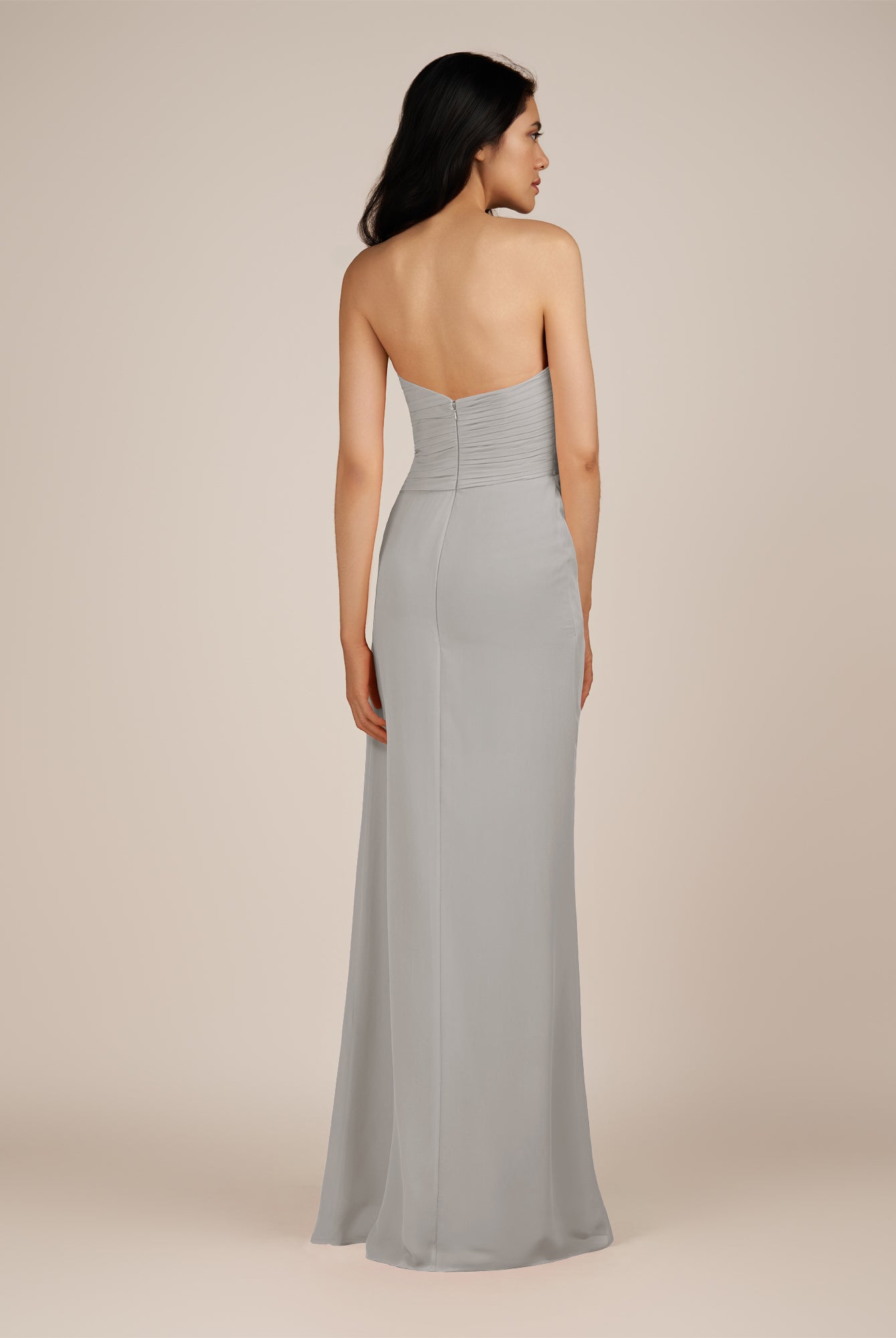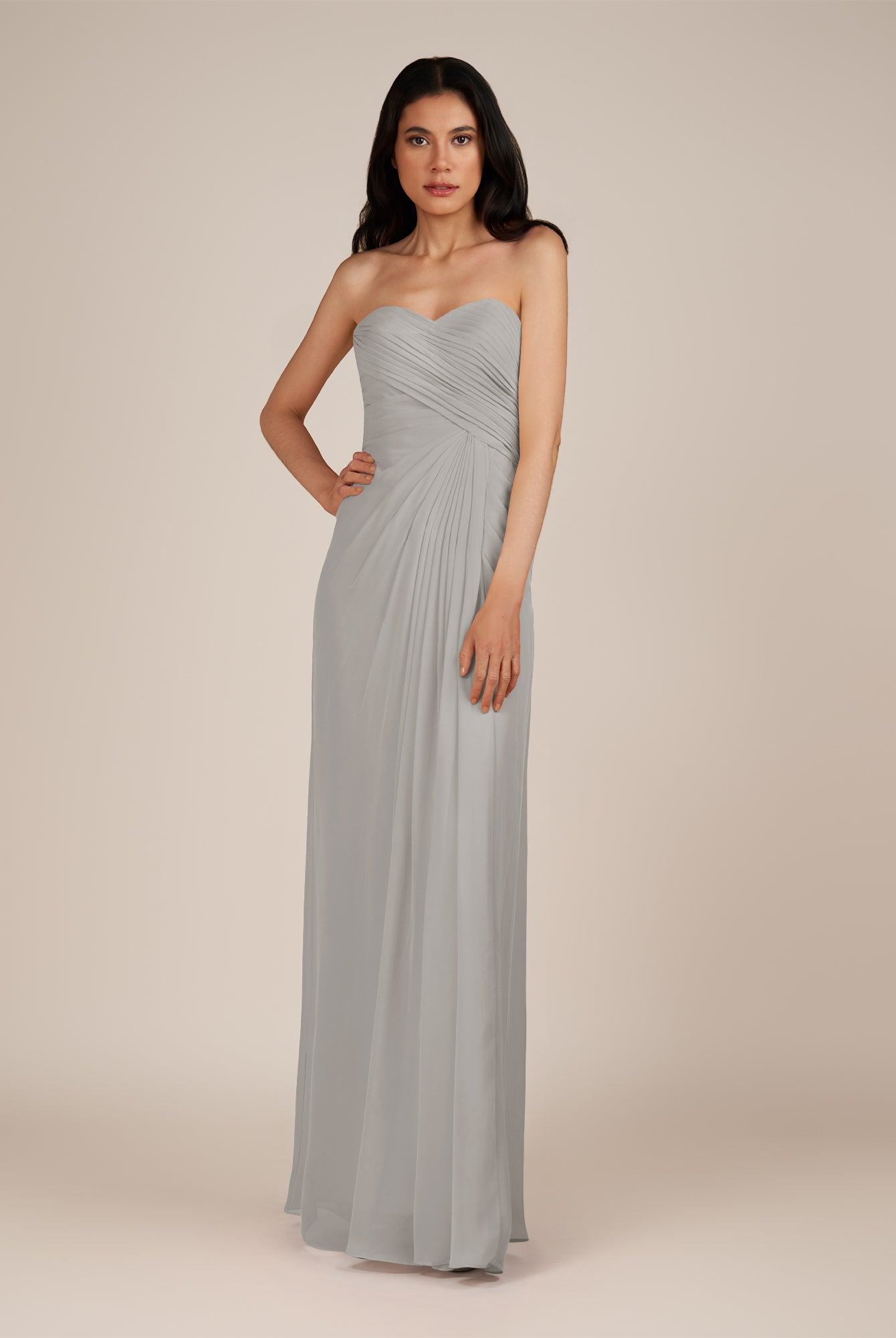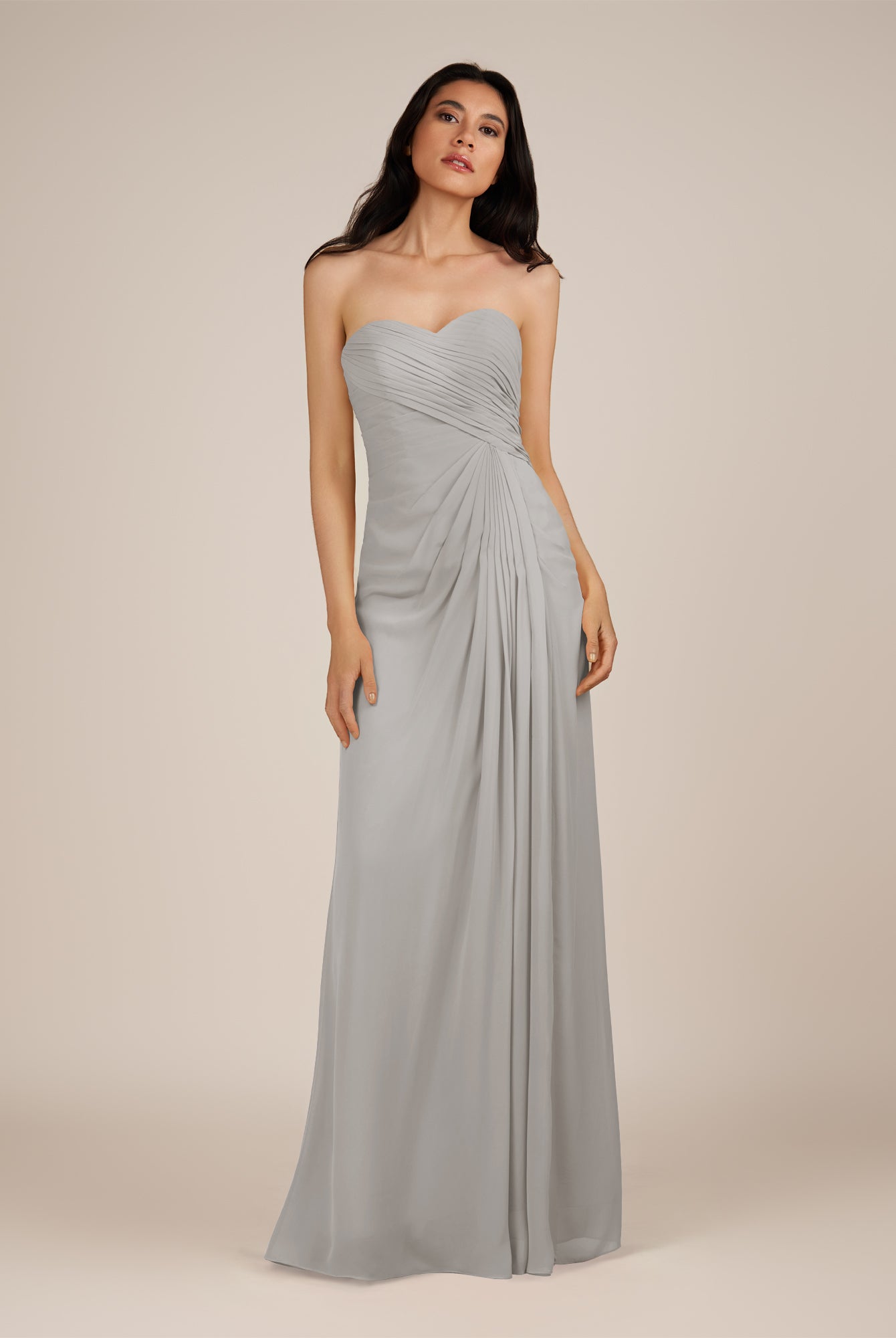 Wanlian | Silver - A Line Chiffon Sweetheart Long Bridesmaid Dress with Pleats