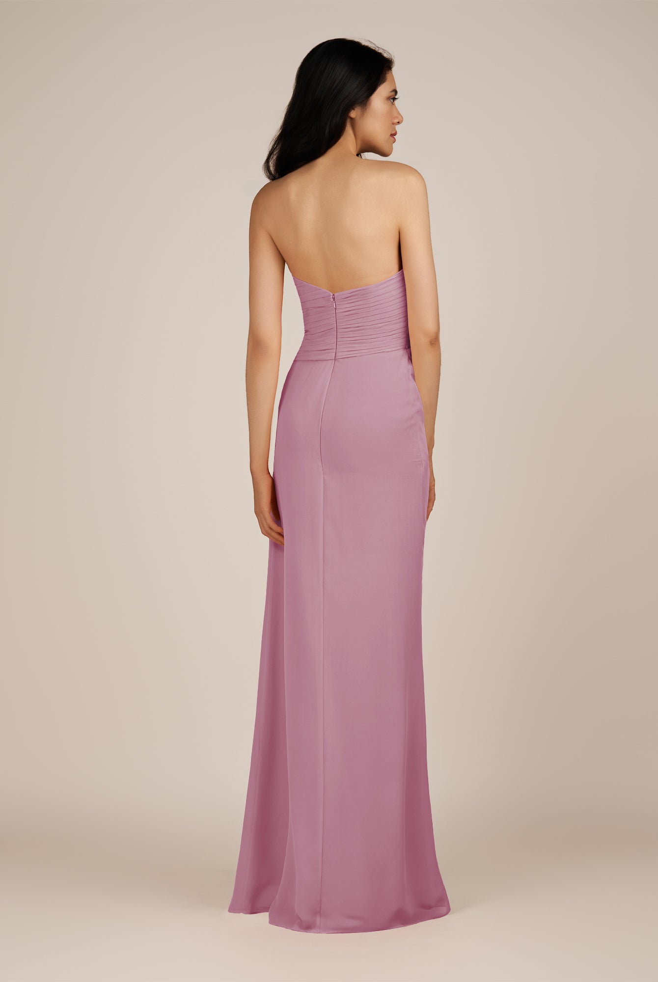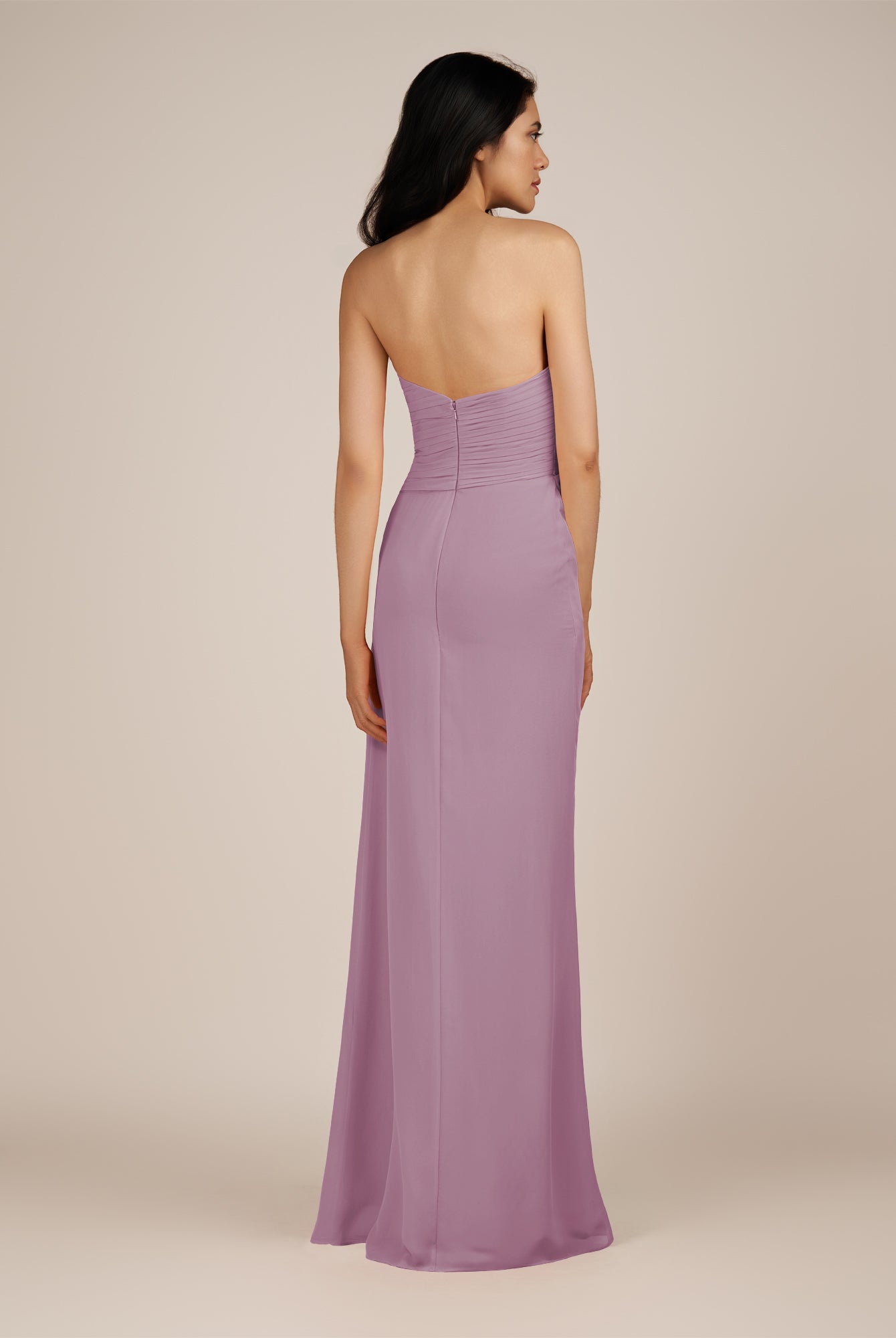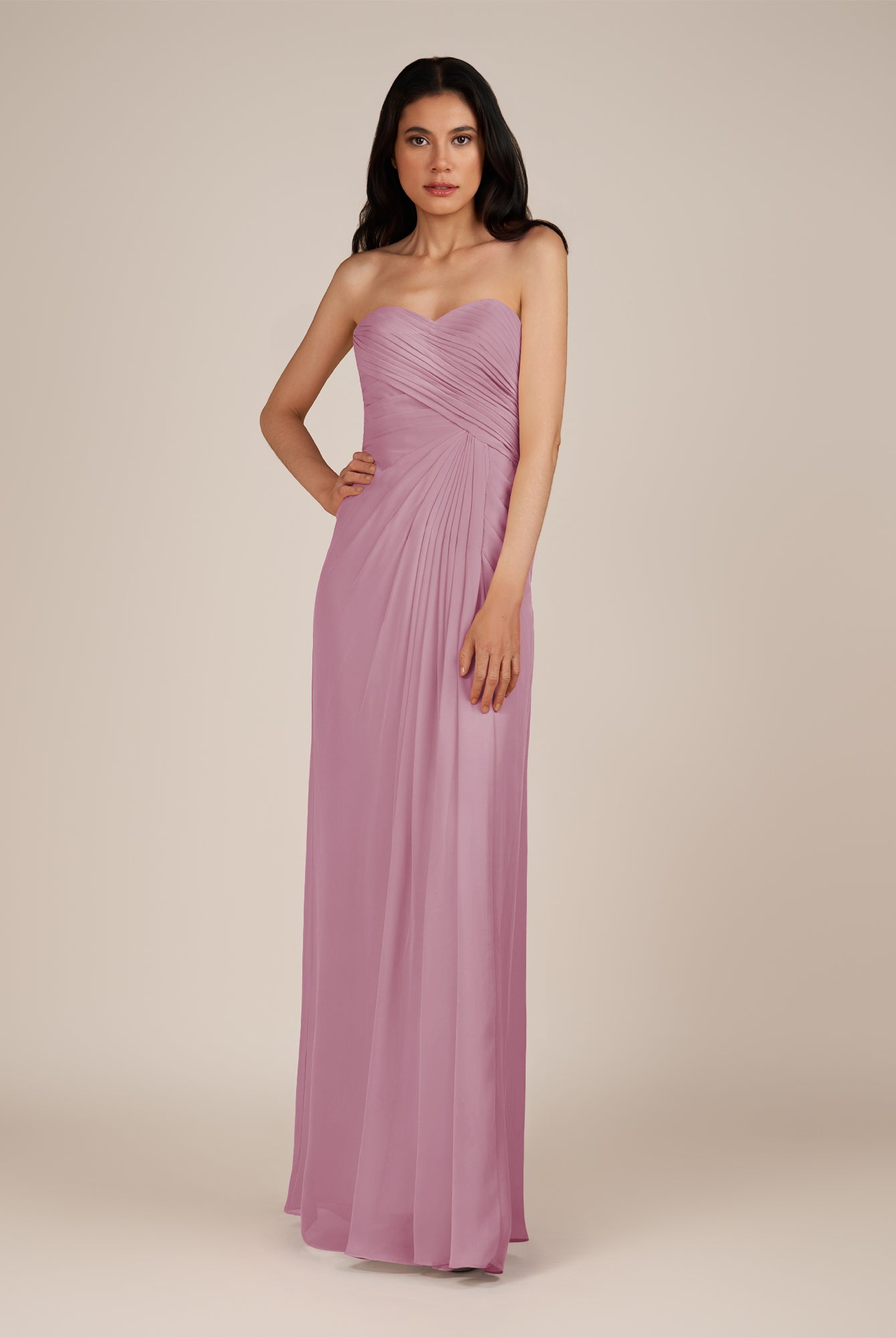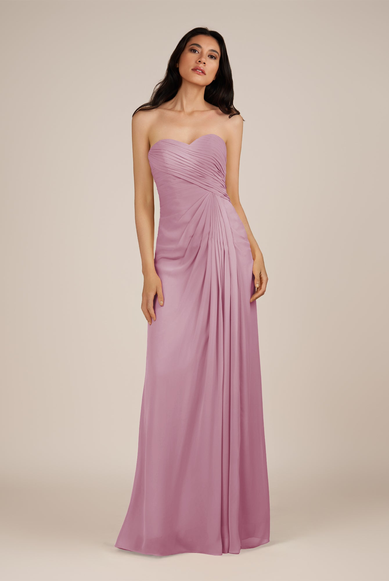 Wanlian | Vintage Mauve - A Line Chiffon Sweetheart Long Bridesmaid Dress with Pleats