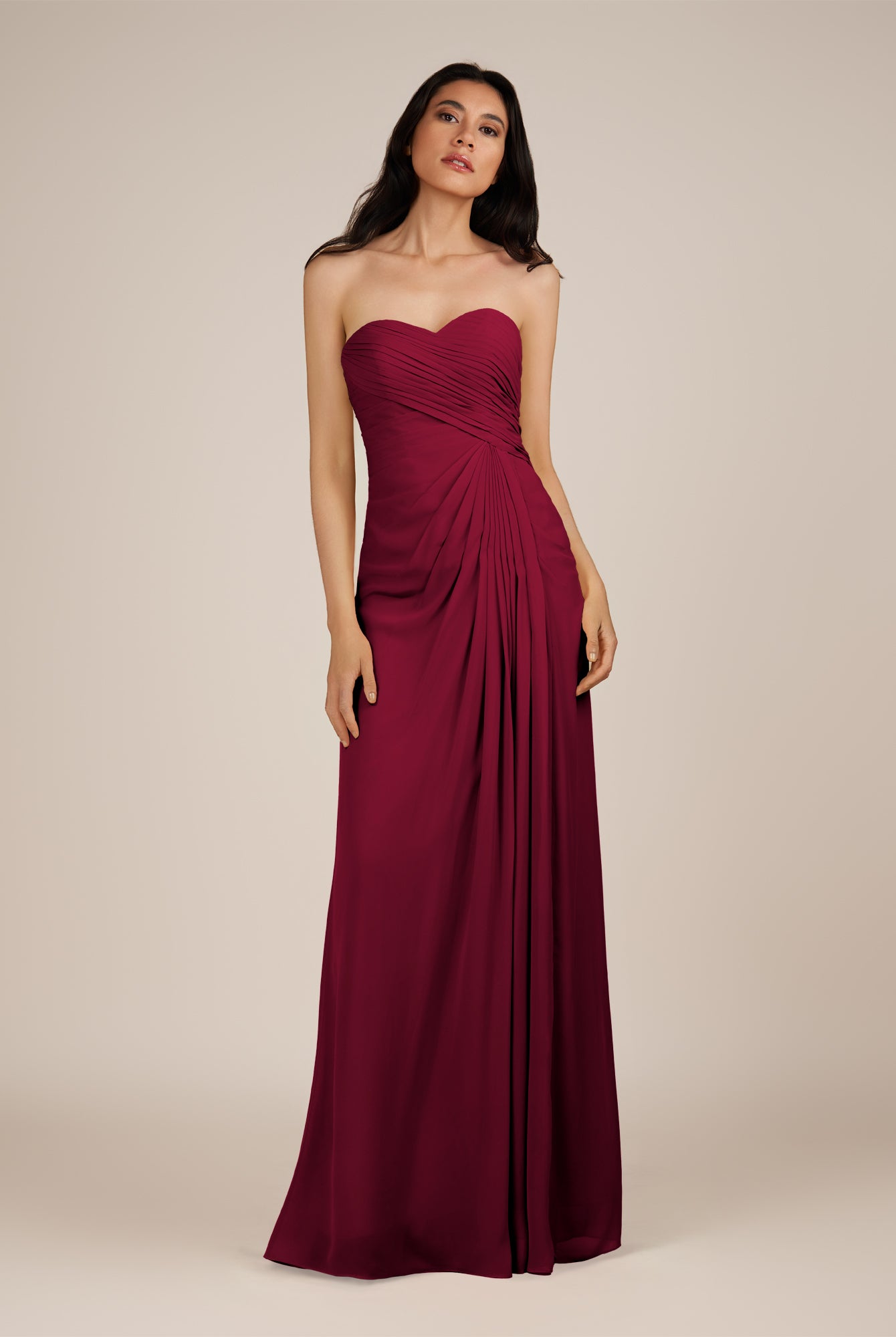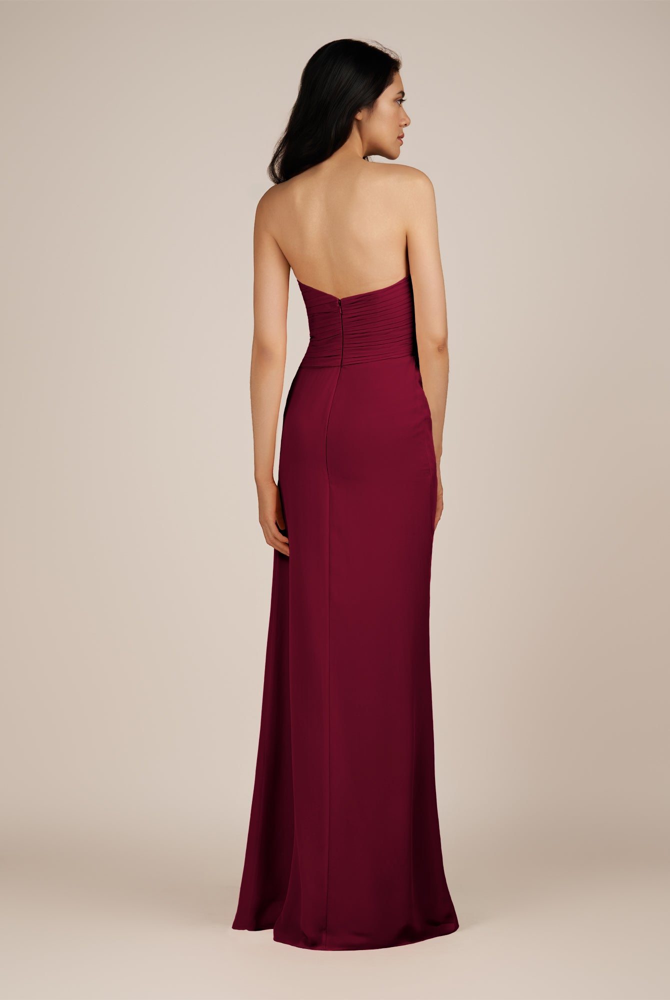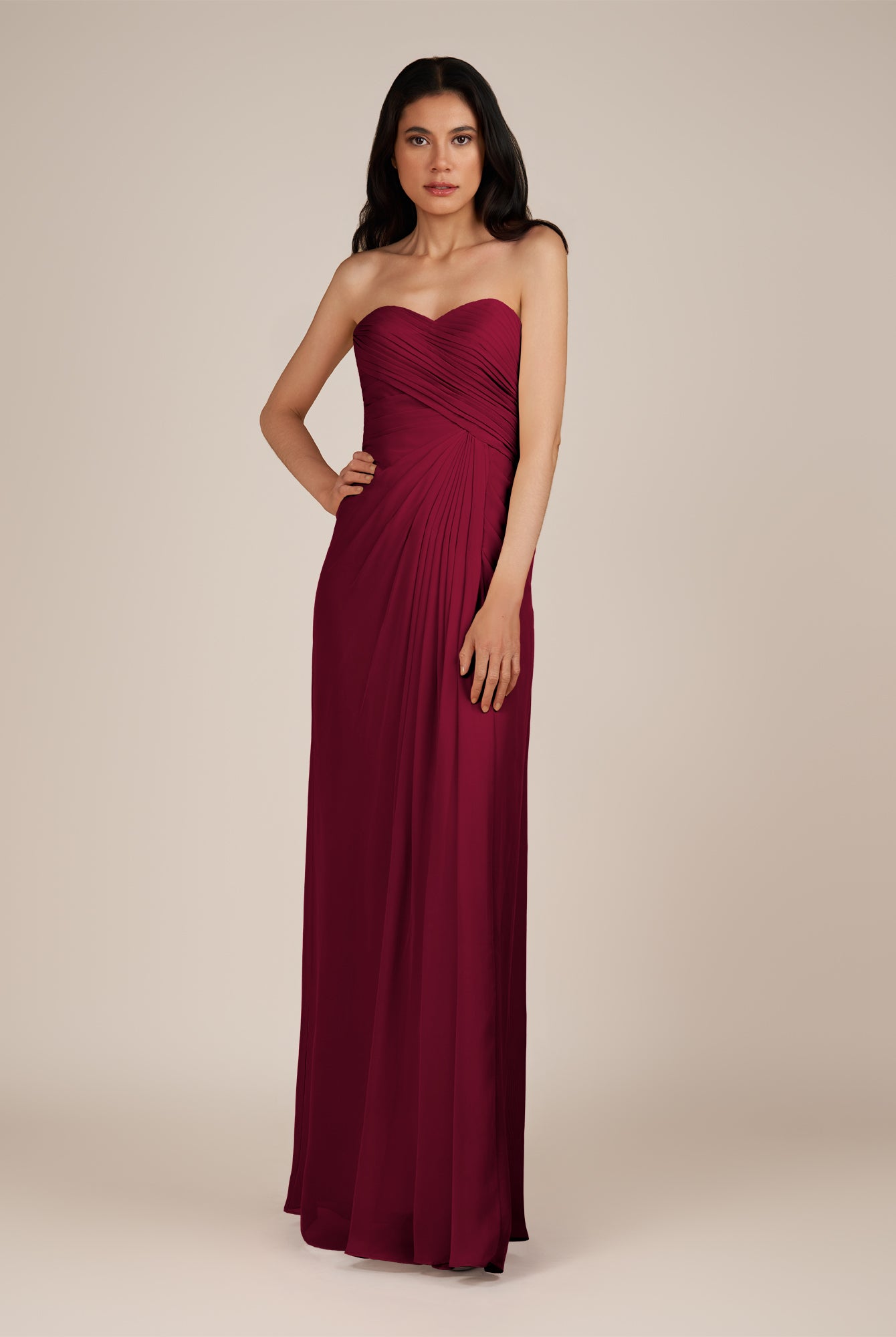 Wanlian | Merlot - A Line Chiffon Sweetheart Long Bridesmaid Dress with Pleats