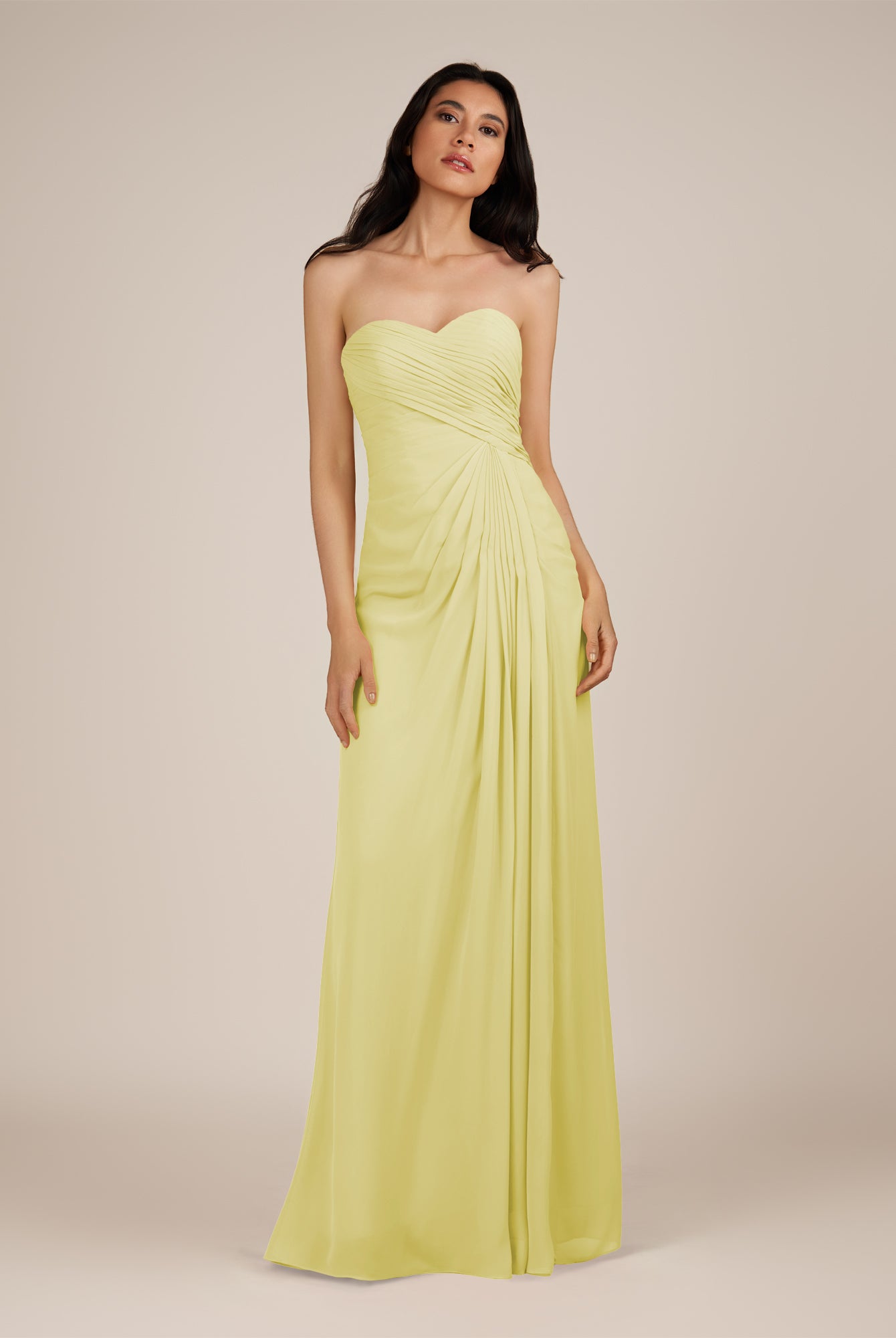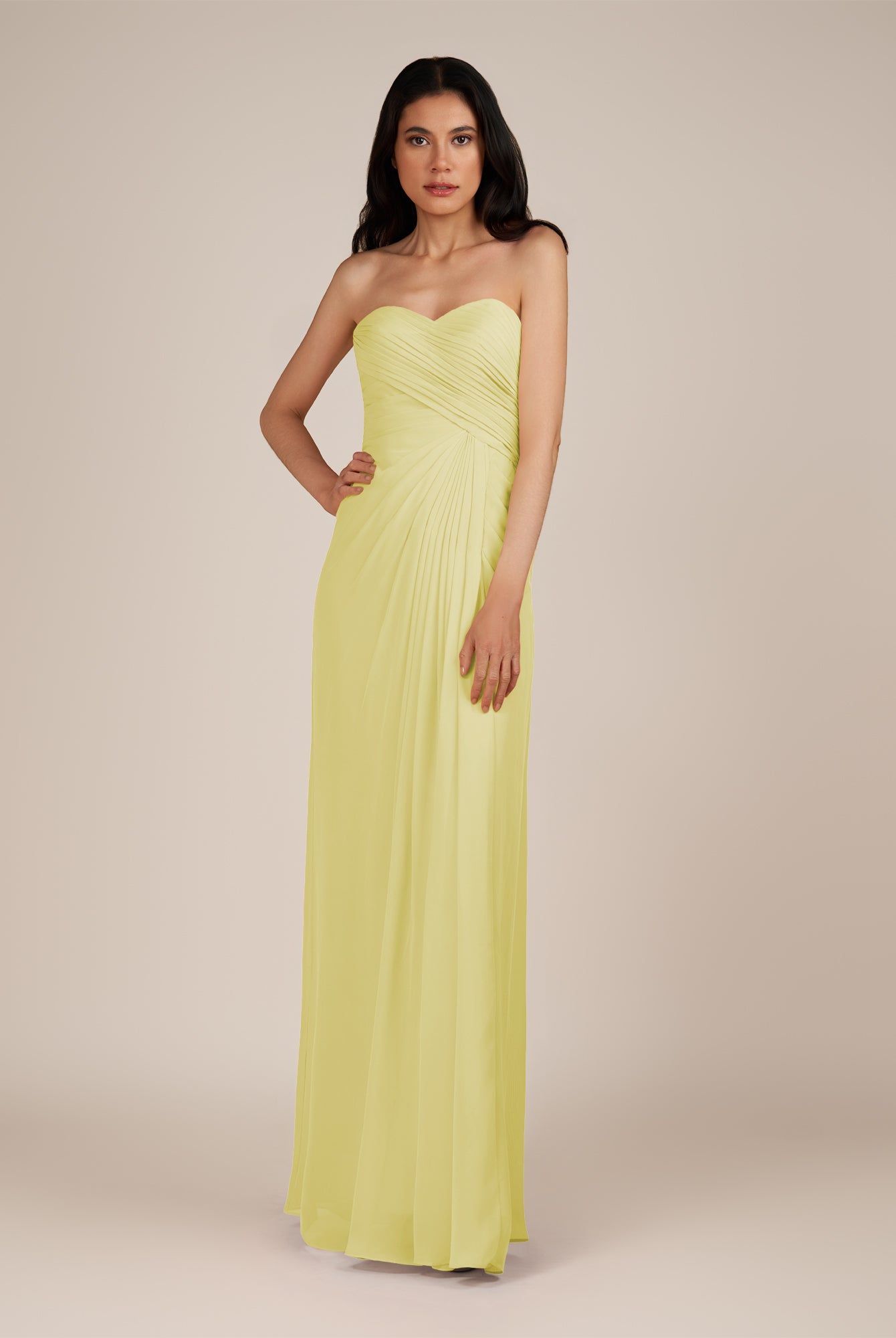 Wanlian | Buttercup - A Line Chiffon Sweetheart Long Bridesmaid Dress with Pleats