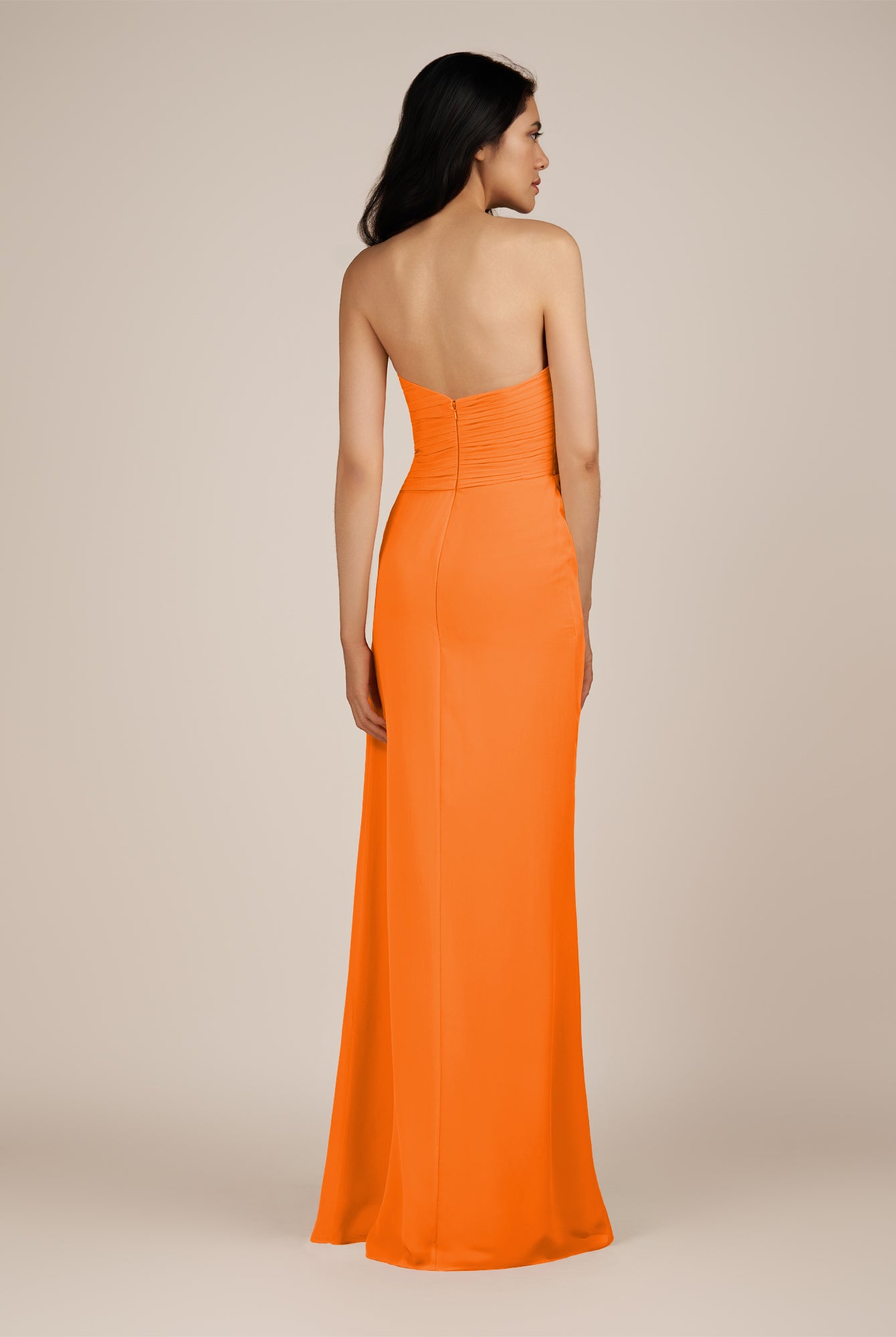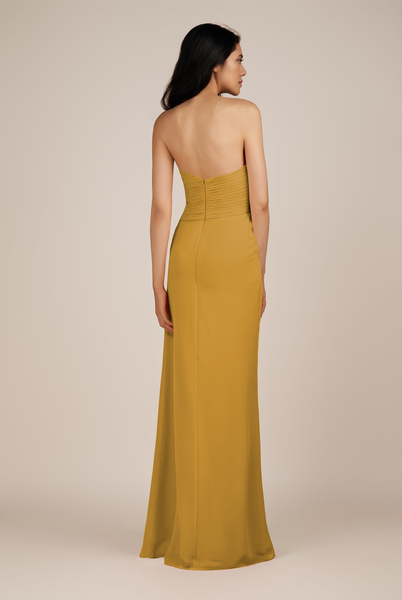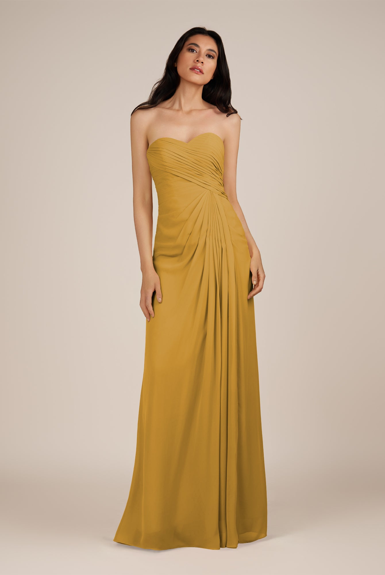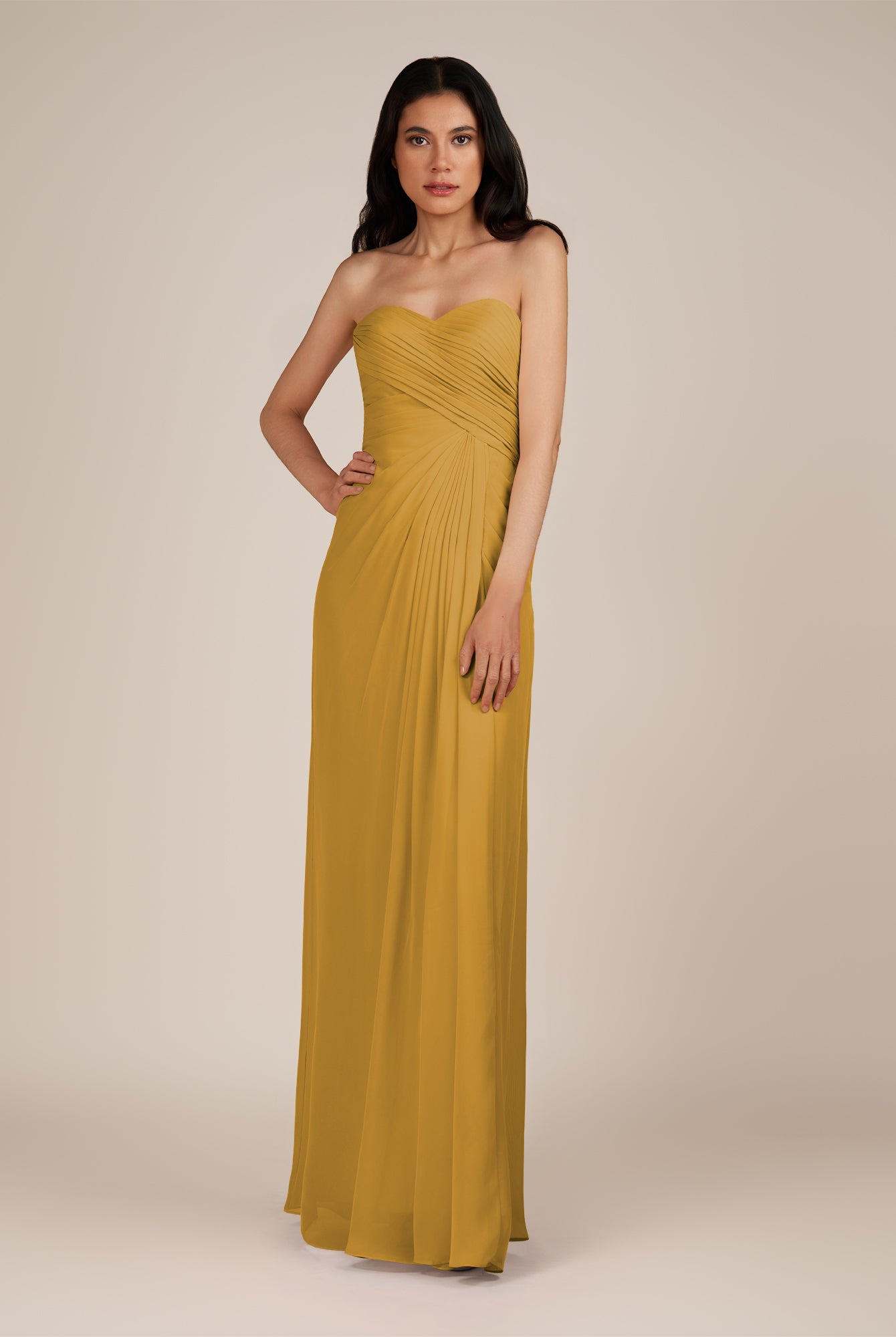 Wanlian | Marigold - A Line Chiffon Sweetheart Long Bridesmaid Dress with Pleats