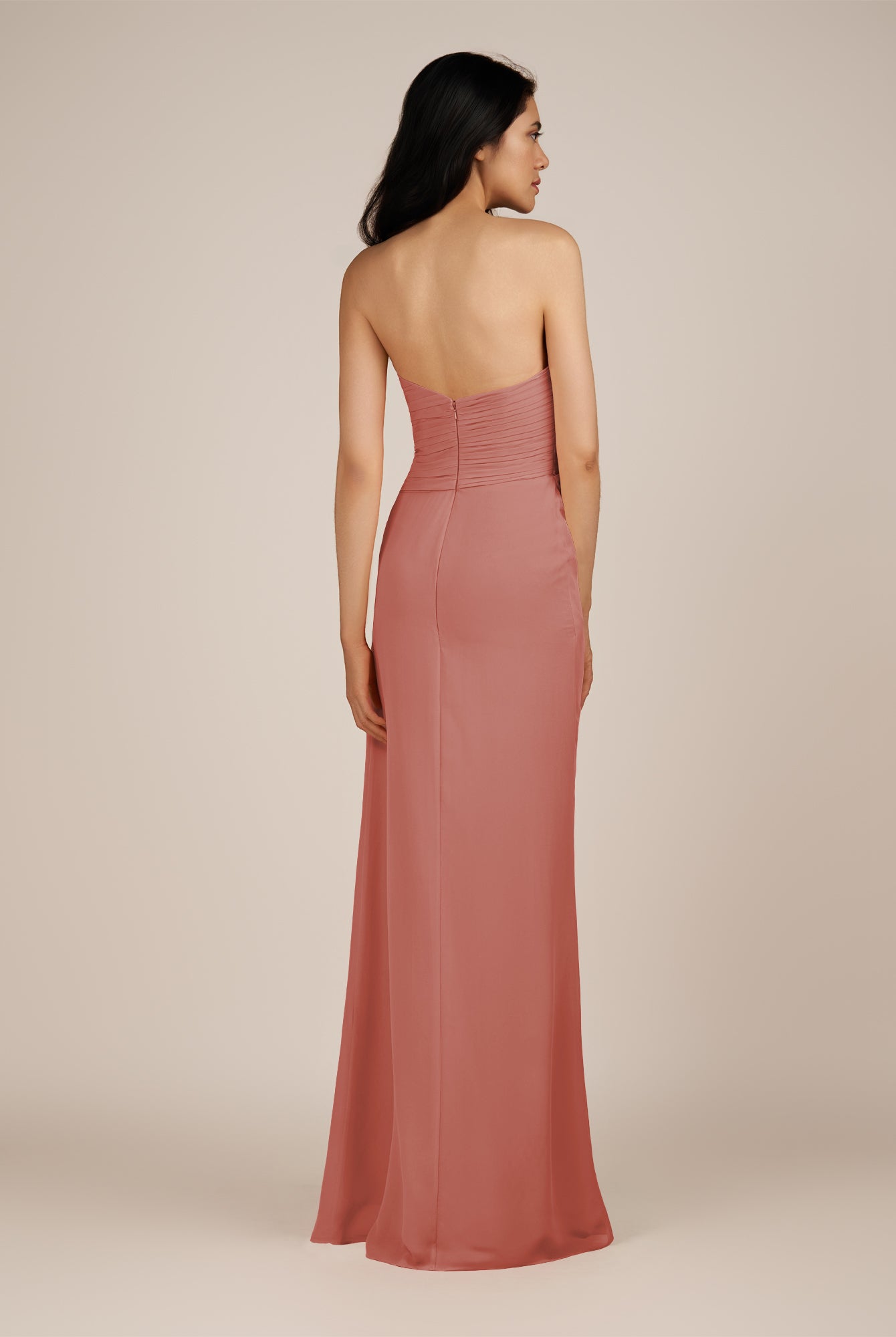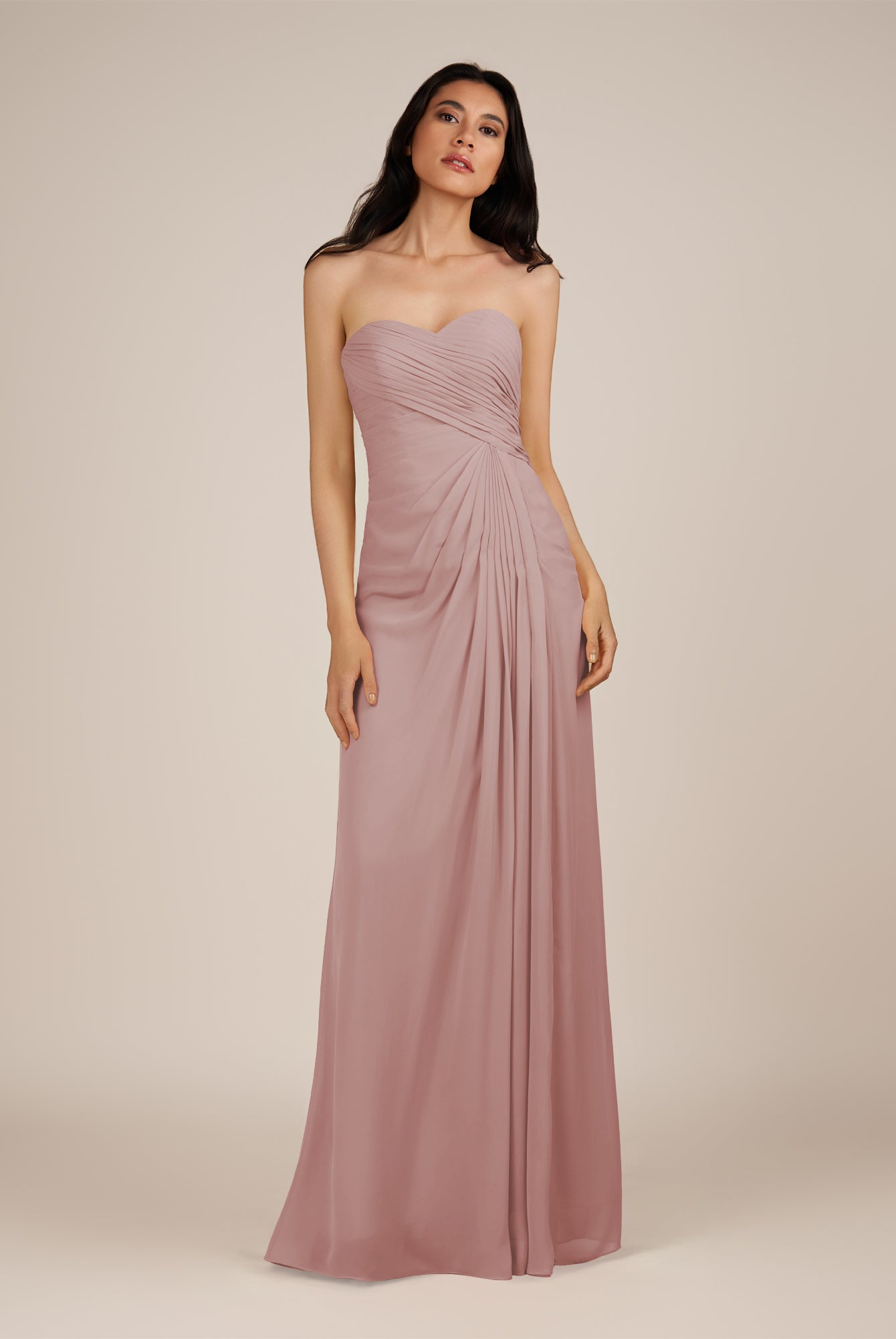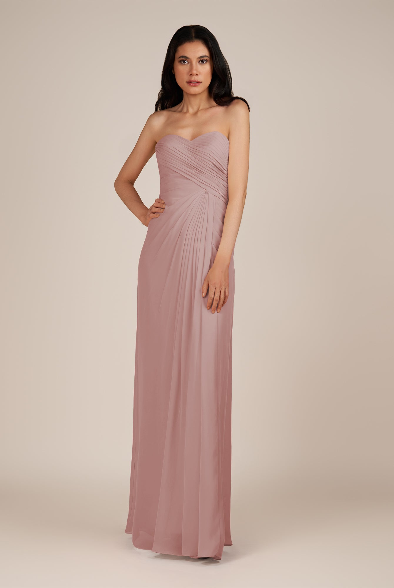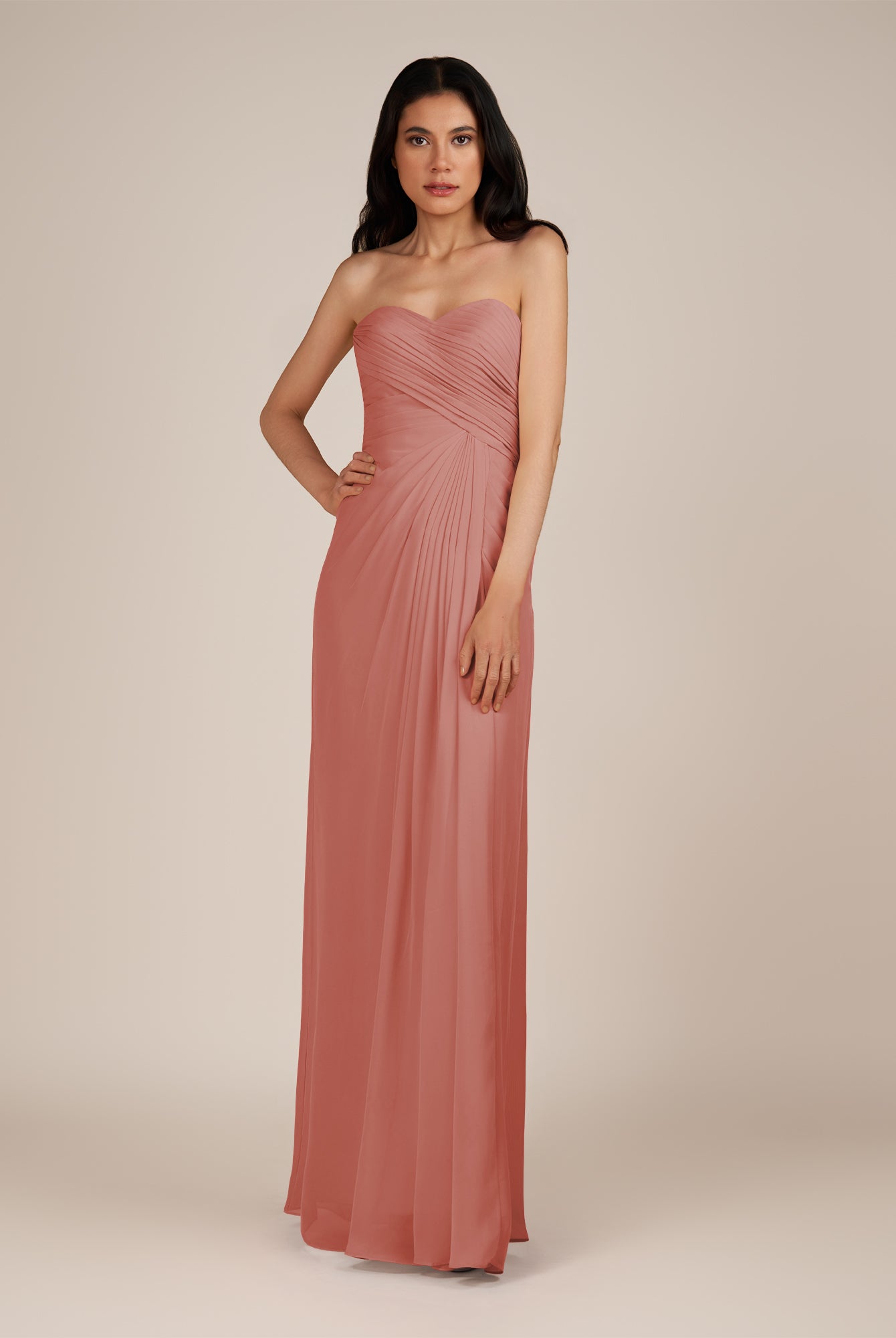Wanlian | Dusty Rose - A Line Chiffon Sweetheart Long Bridesmaid Dress with Pleats