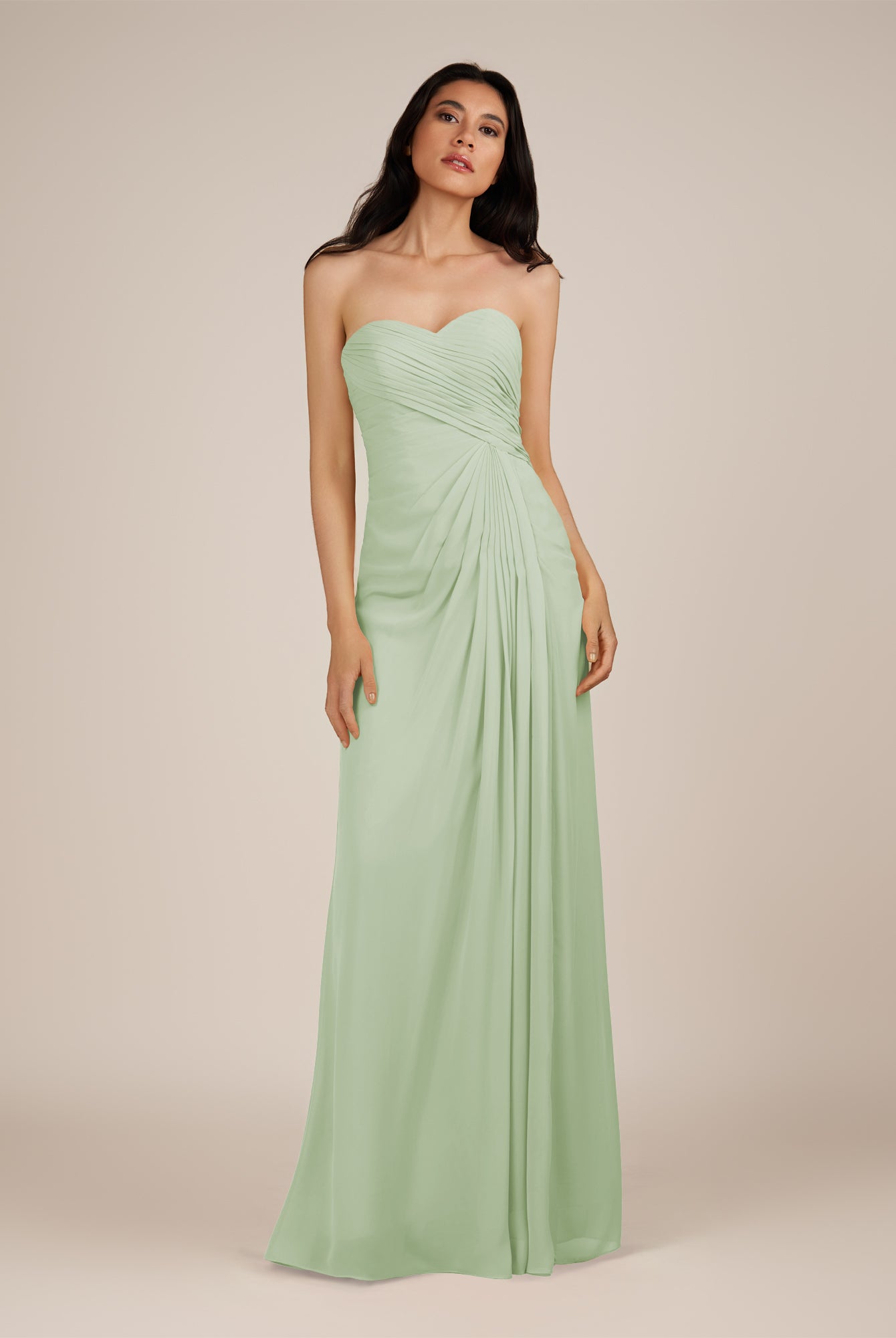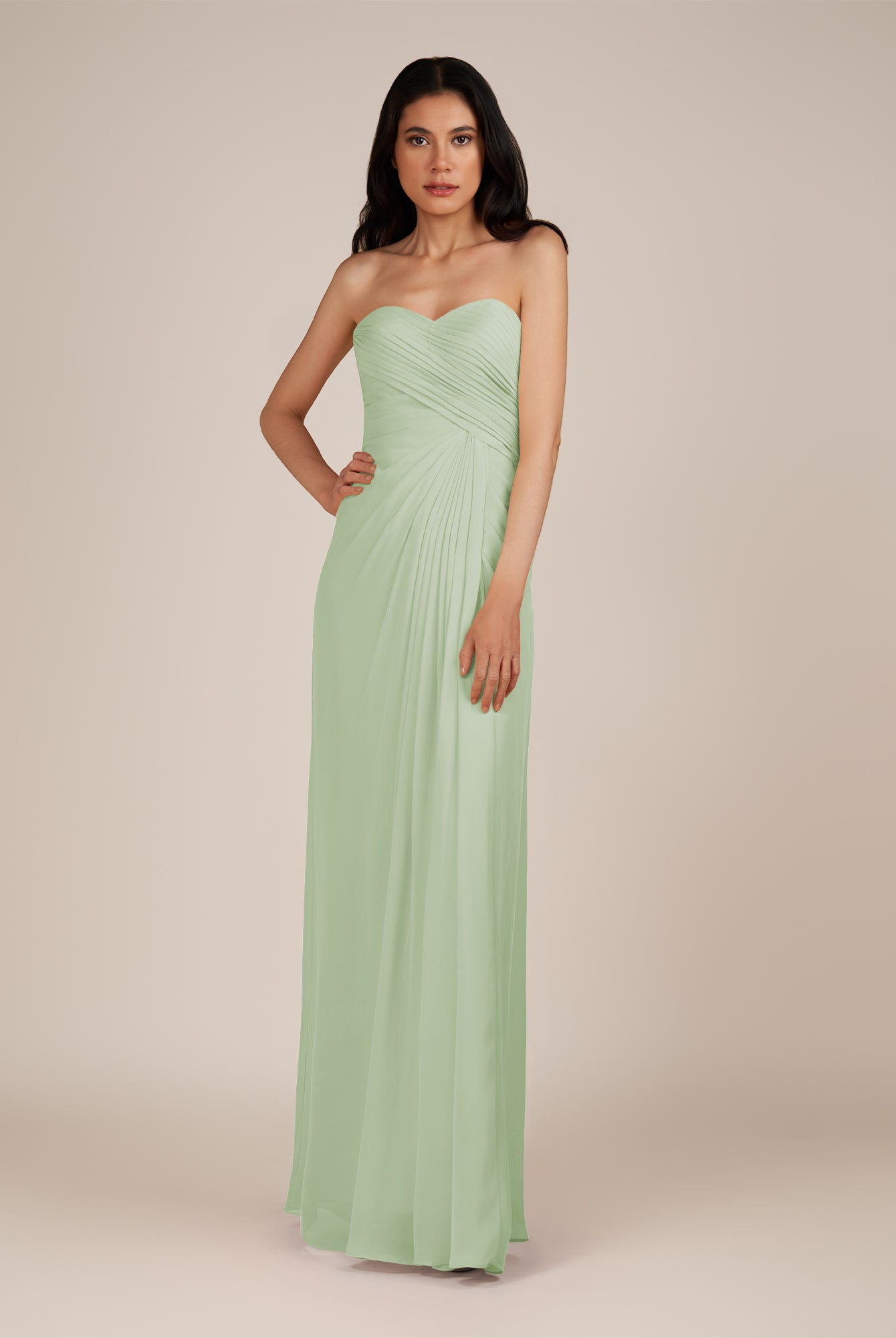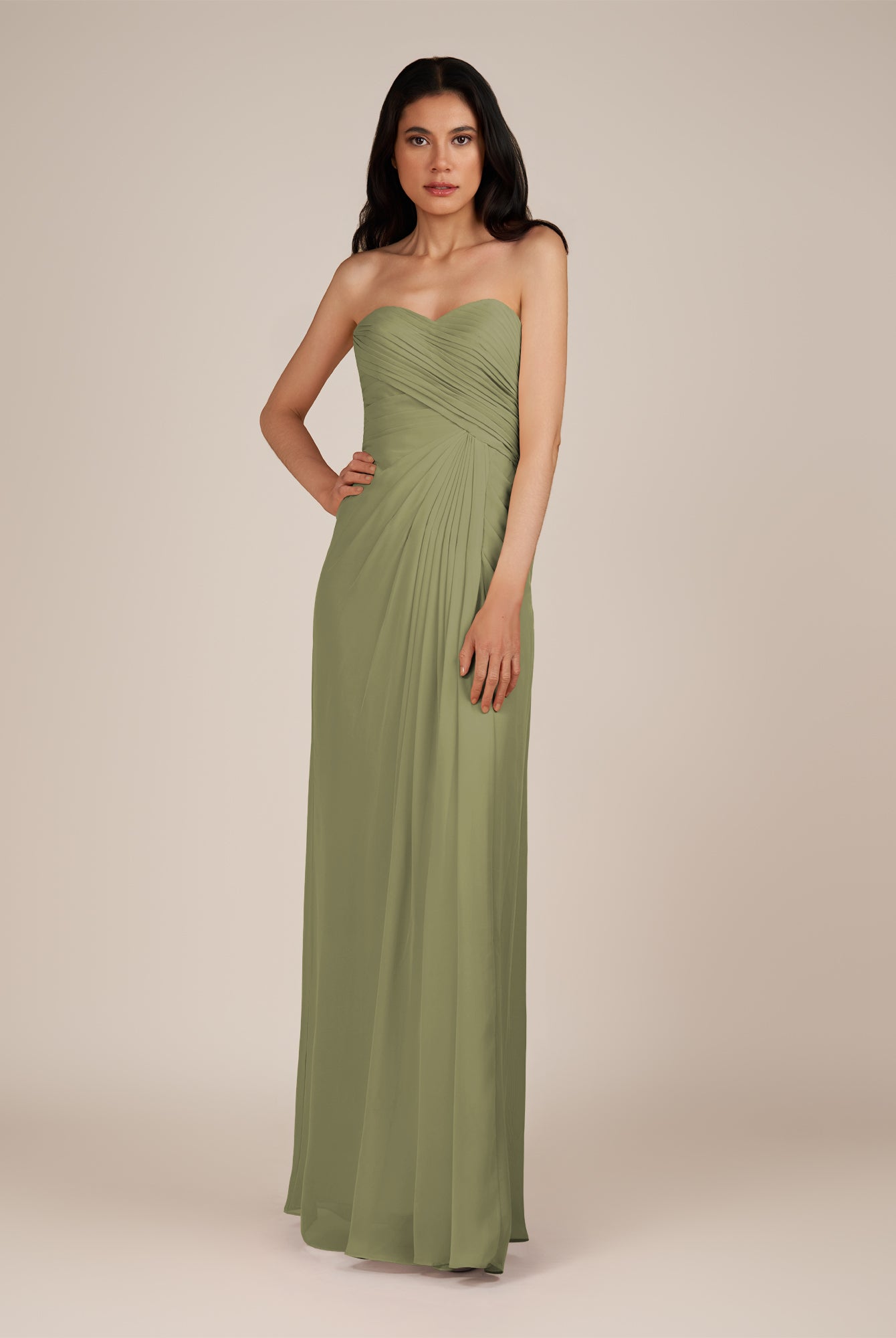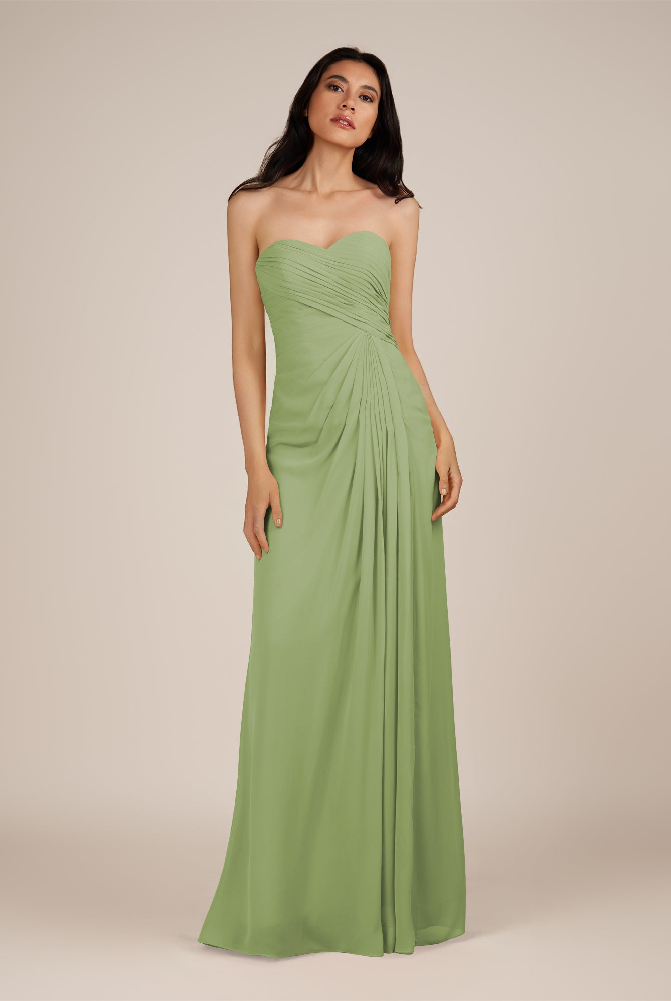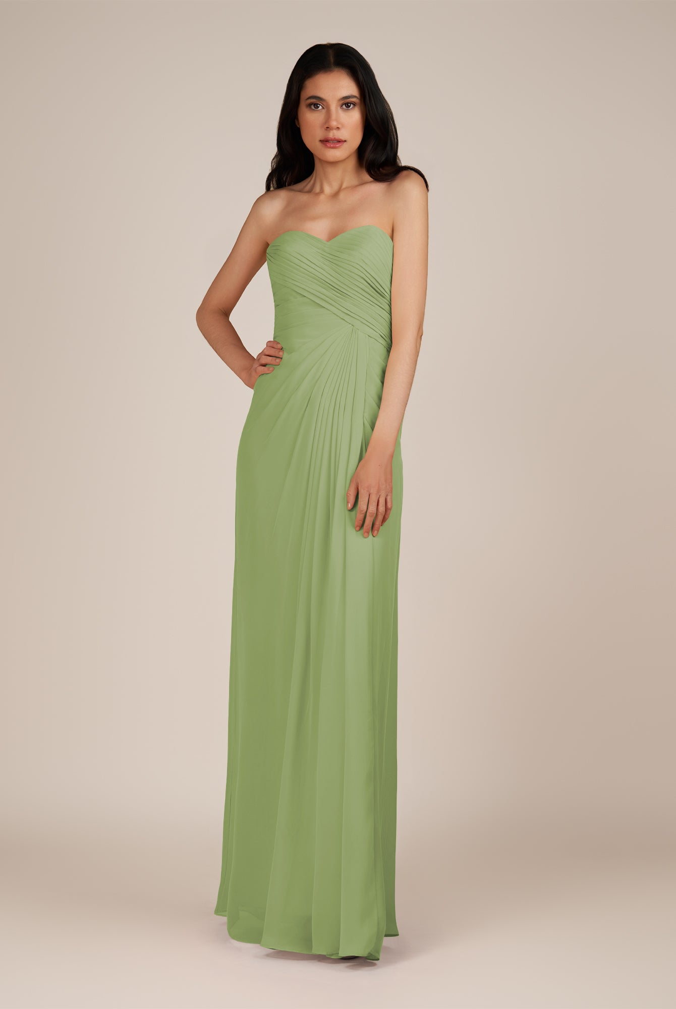 Wanlian | Matcha - A Line Chiffon Sweetheart Long Bridesmaid Dress with Pleats