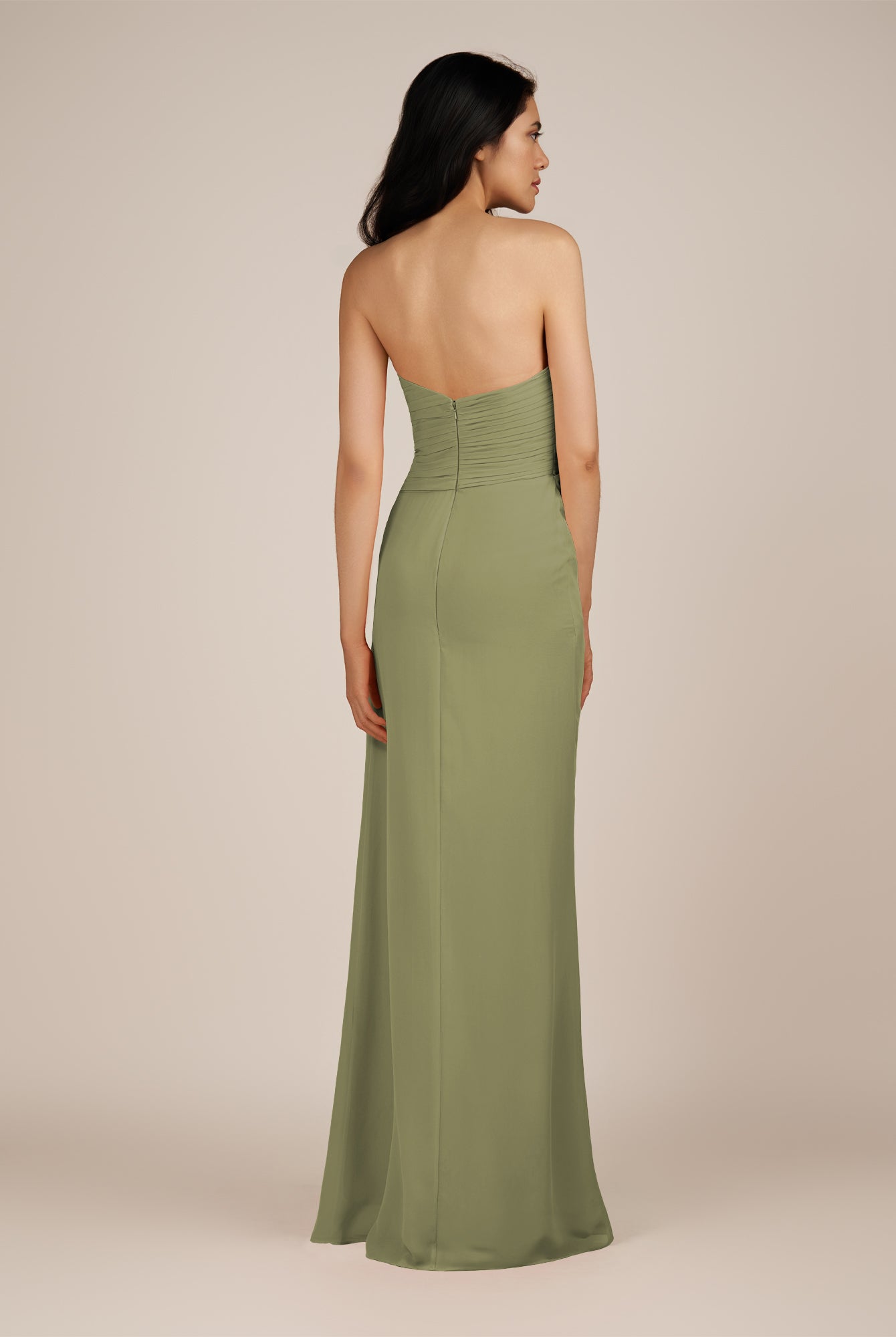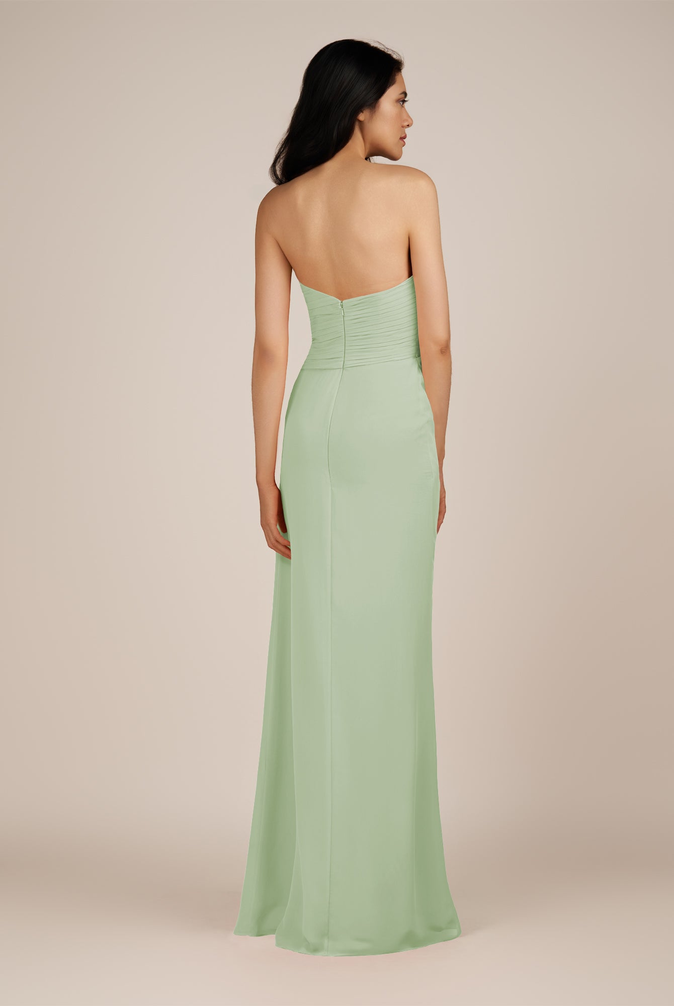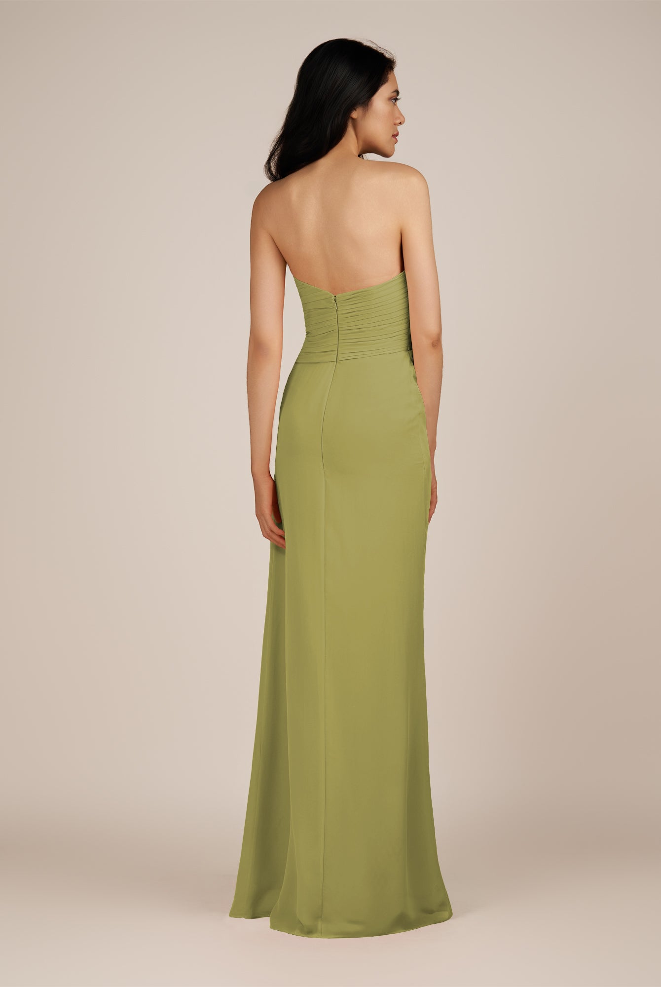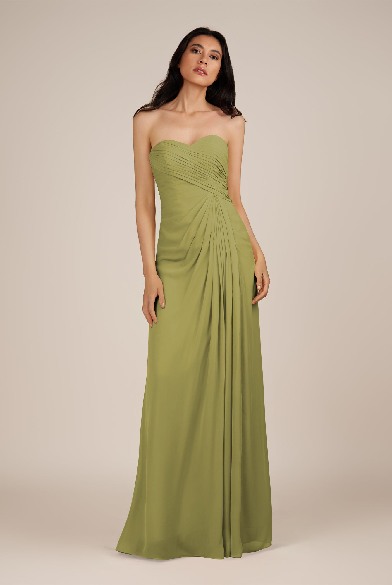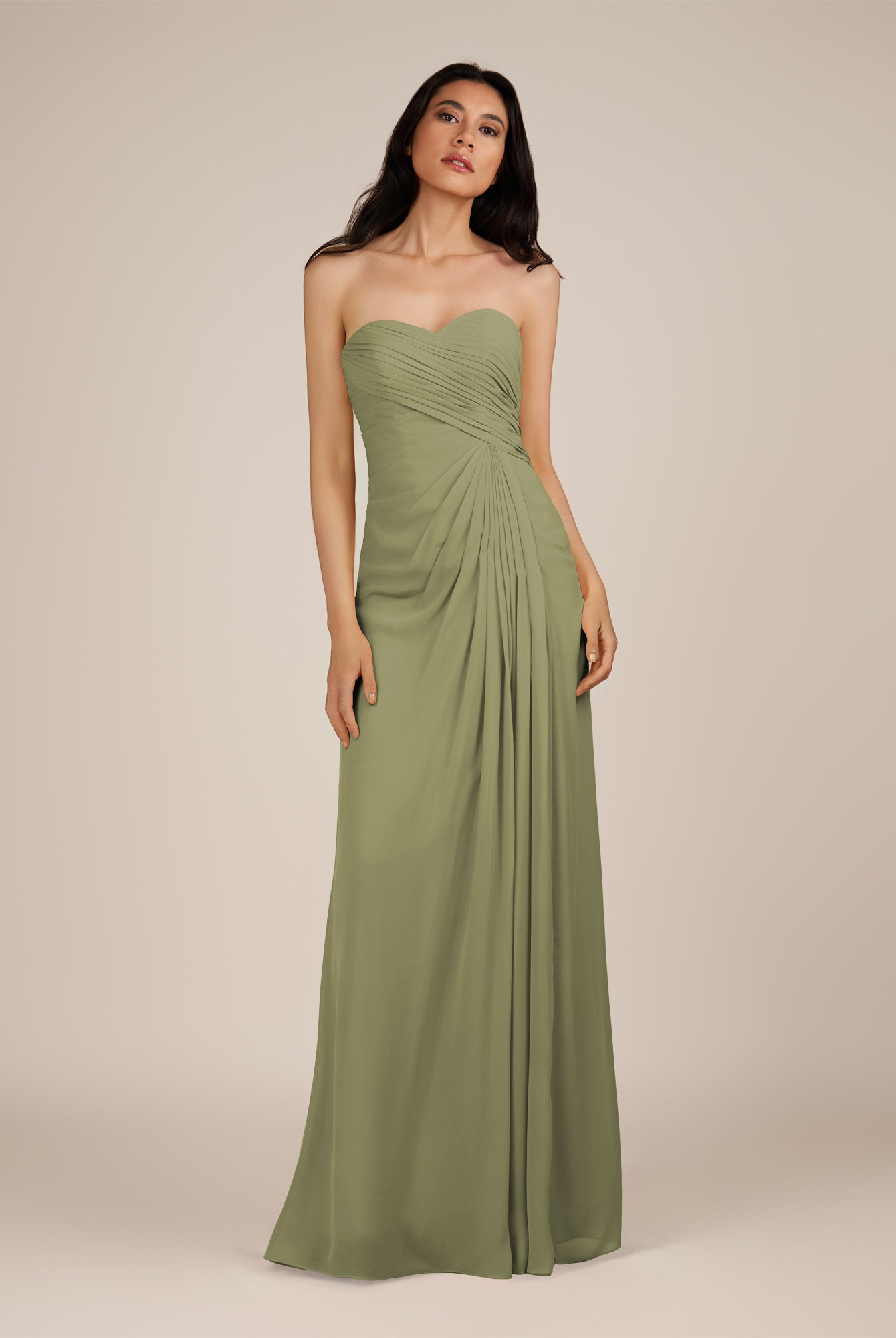 Wanlian | Matcha - A Line Chiffon Sweetheart Long Bridesmaid Dress with Pleats