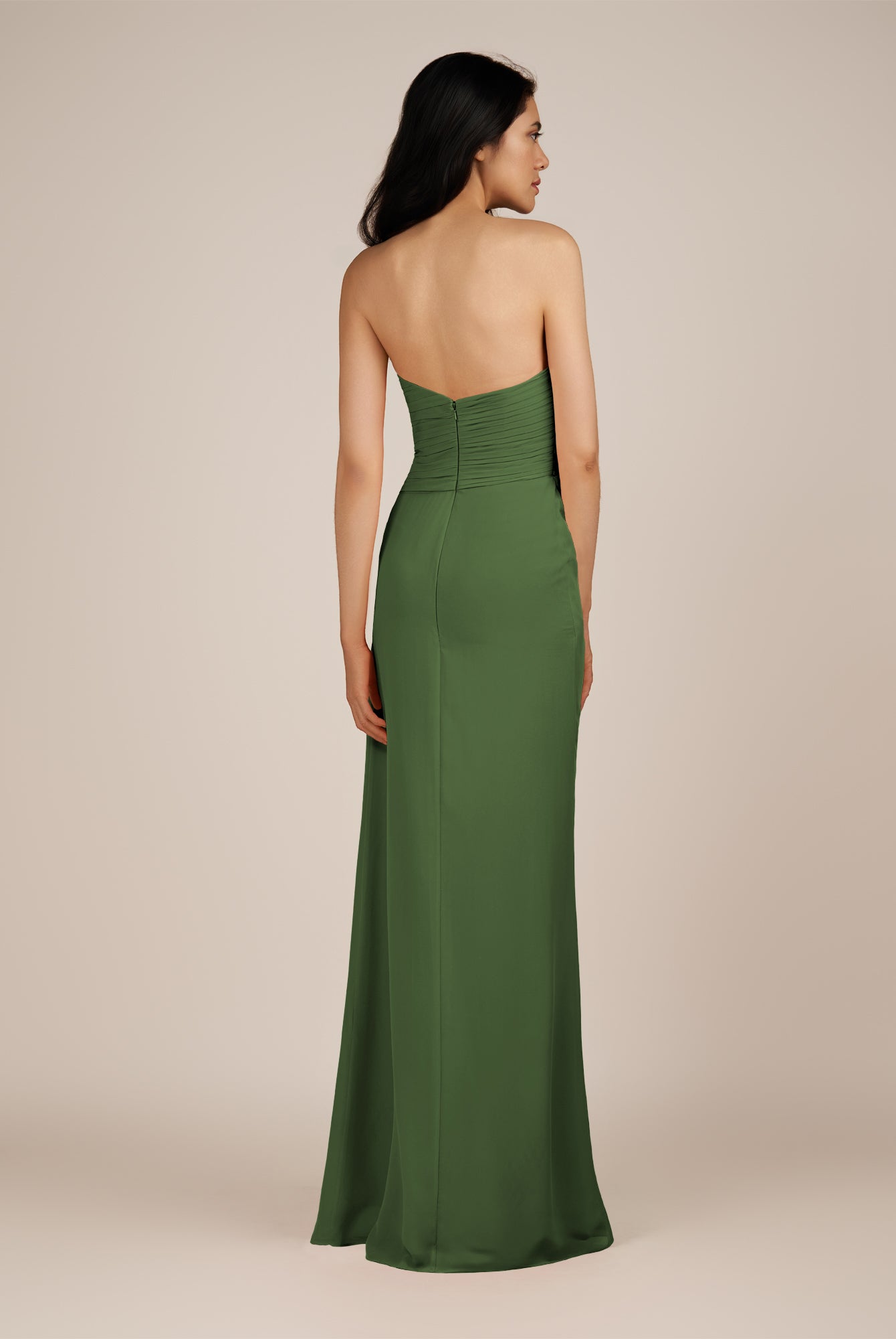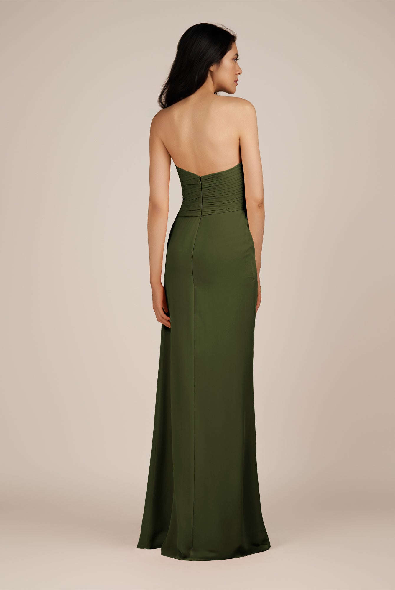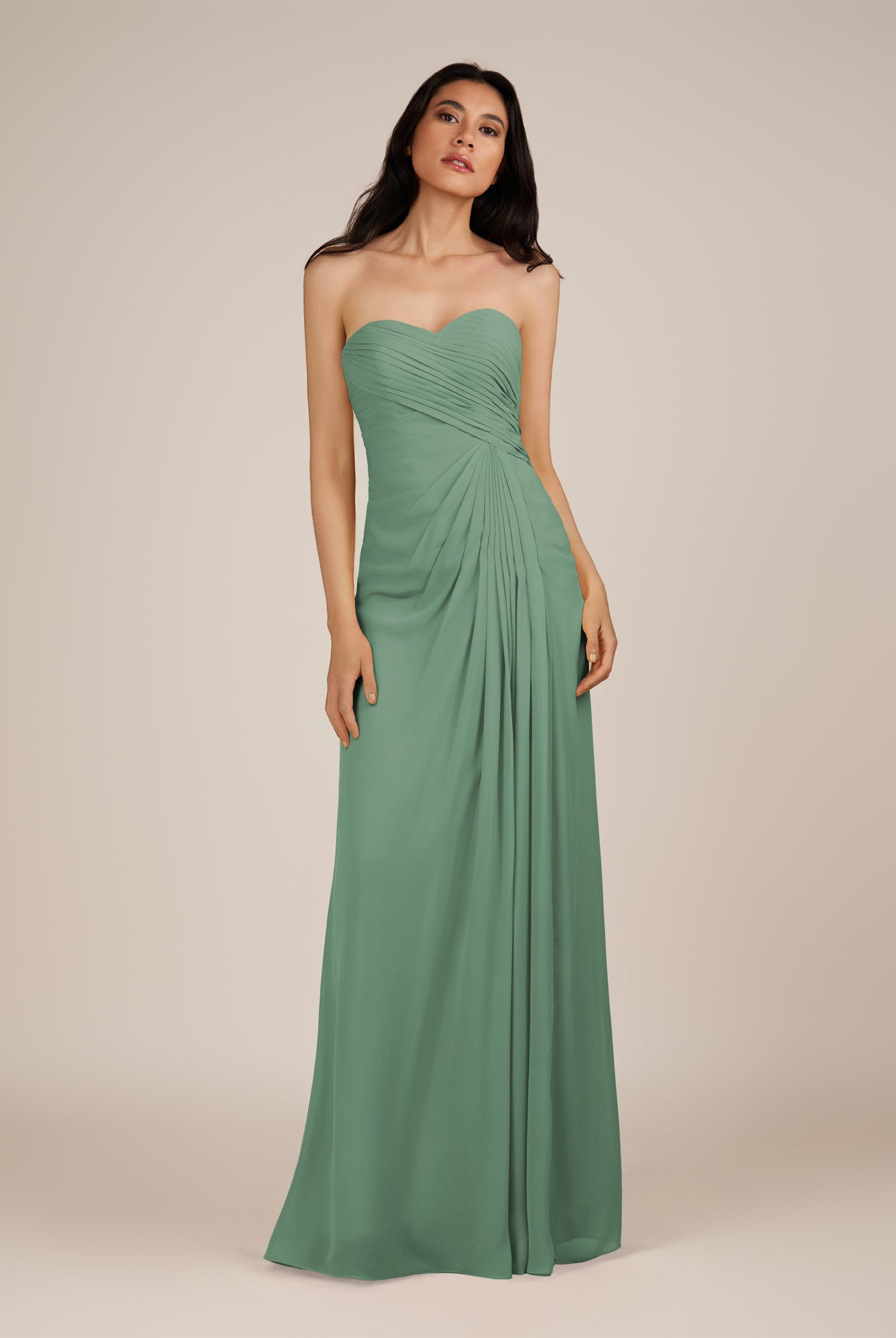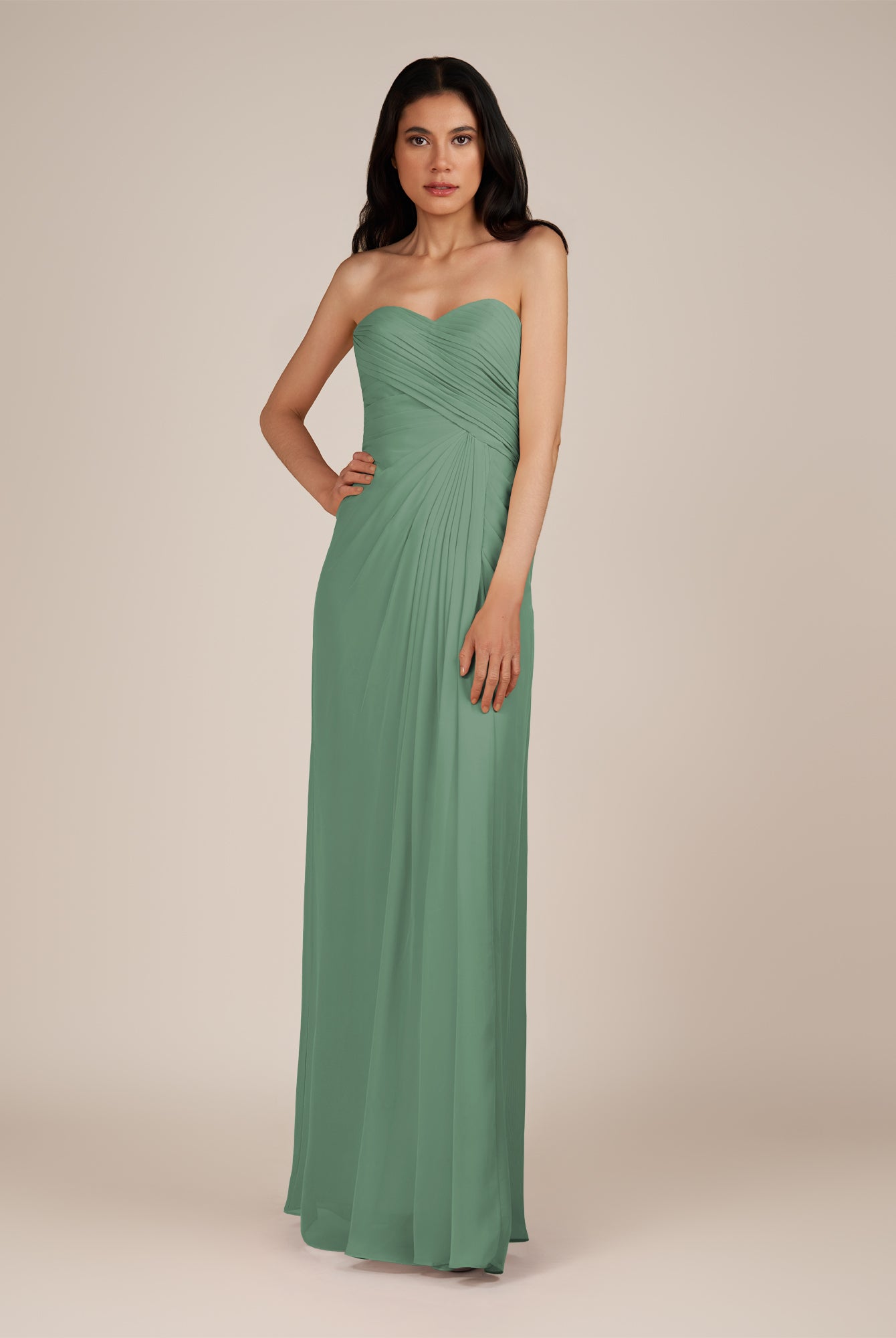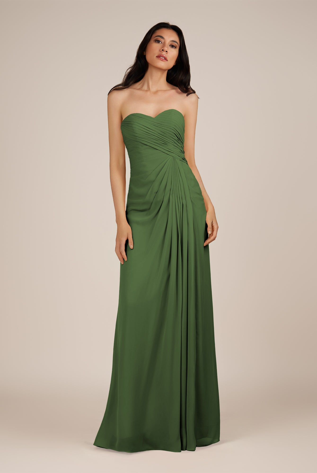 Wanlian | Moss - A Line Chiffon Sweetheart Long Bridesmaid Dress with Pleats