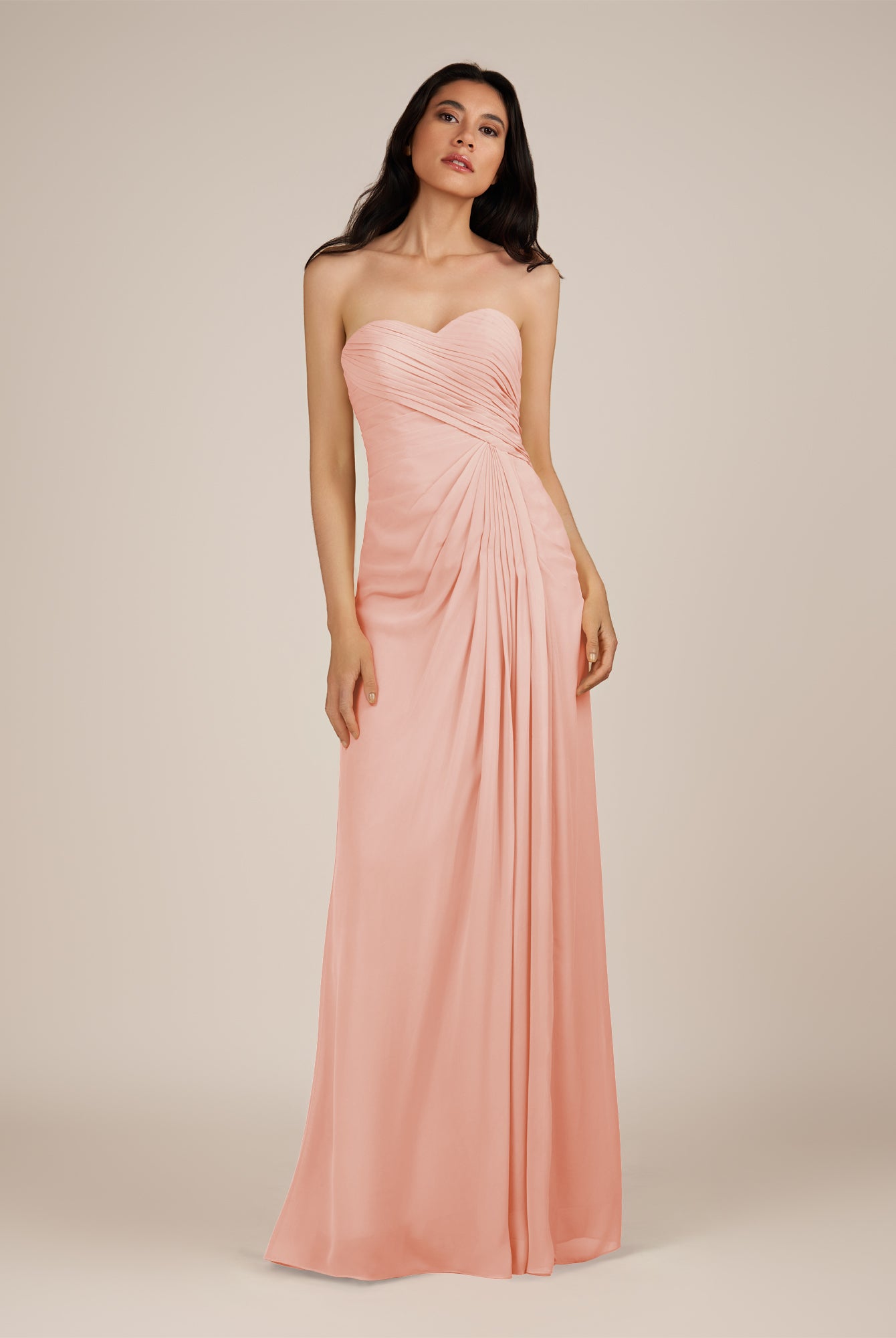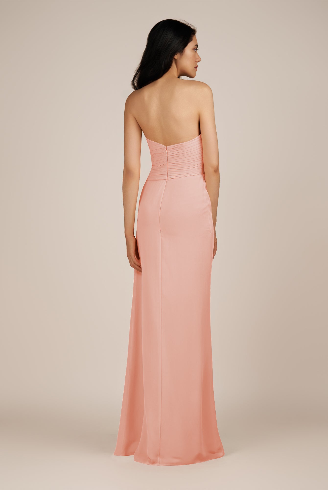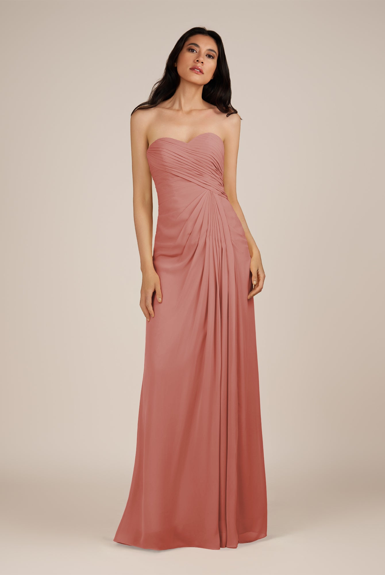Wanlian | Rose Petal - A Line Chiffon Sweetheart Long Bridesmaid Dress with Pleats